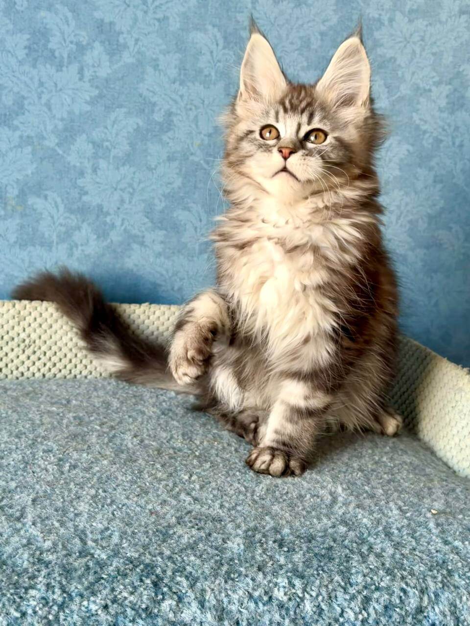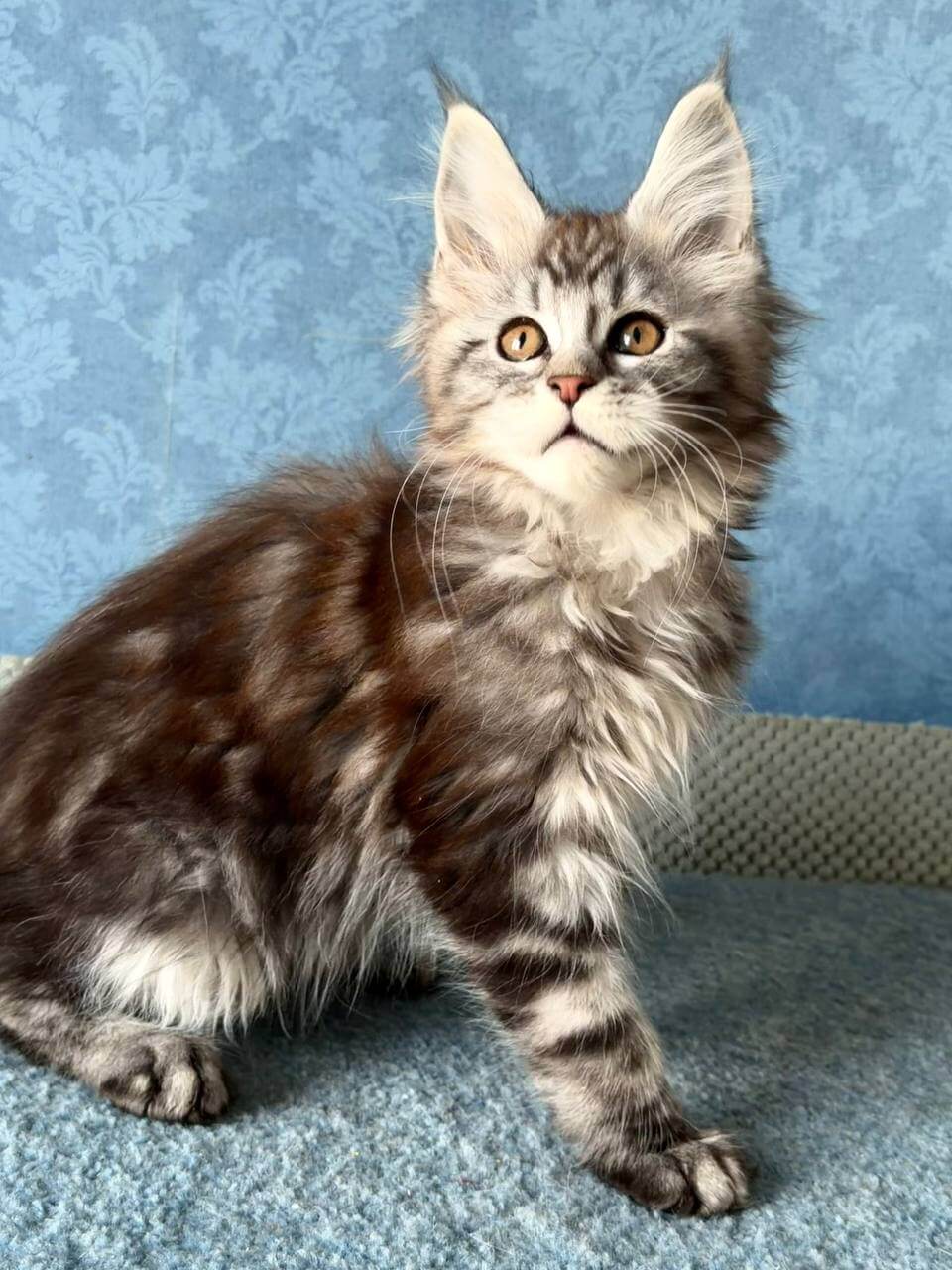 Meet Lisa, a melt-your-heart beauty dressed in a luxurious Black Silver Tabby Blotched coat, with golden-yellow eyes that shine like early morning sunlight. Lisa greets every gaze with gentle curiosity and a soft, promising purr—she’s the little star who just wants to curl up close and warm your world with loving cuddles.