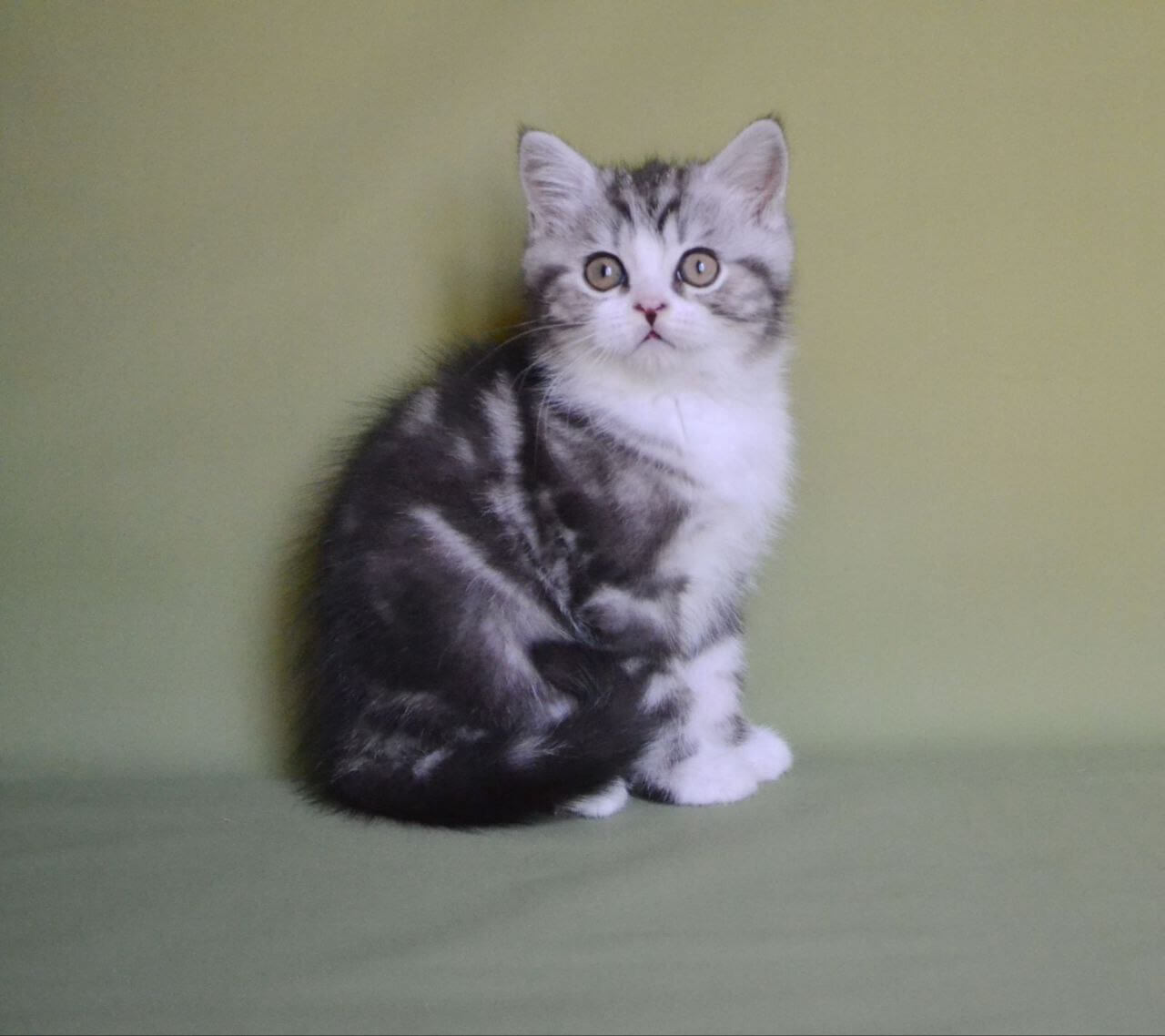 Meet Luchik, our gentle little marvel, ready to steal hearts and warm every home with his sunbeam spirit. With his plush black silver tabby coat brushed softly with white, and luminous yellow eyes full of curiosity, this charming boy is pure feline magic—a true treasure for those dreaming of something special.