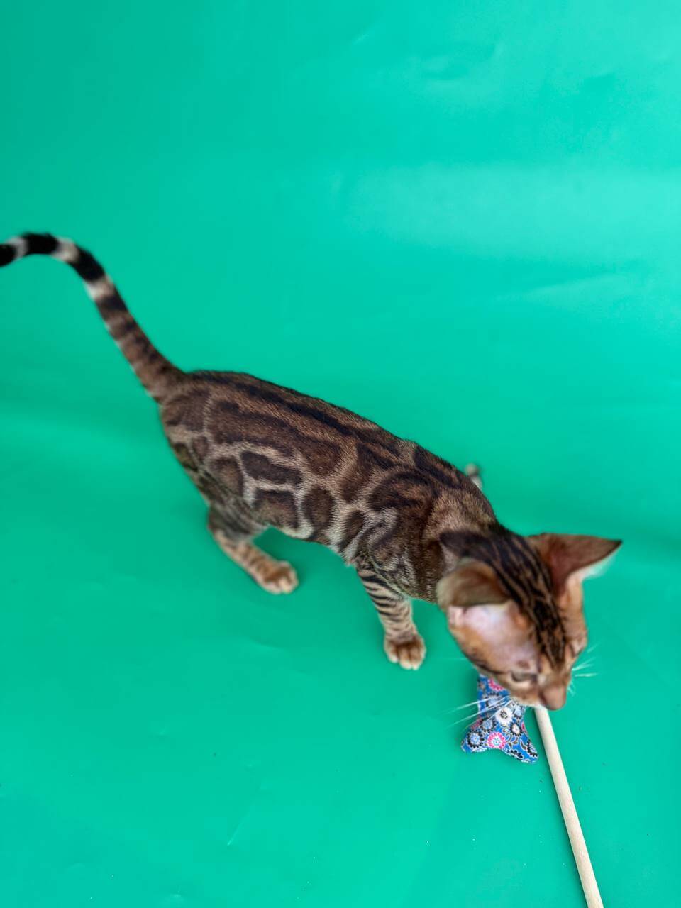 Meet Lucky, a stunning brown spotted tabby boy whose golden-yellow eyes promise endless love and gentle purrs. From the moment he touches your hand with his warm, velvety paws, your heart will melt—Lucky is a true cuddle companion, ready to brighten every corner of your home.