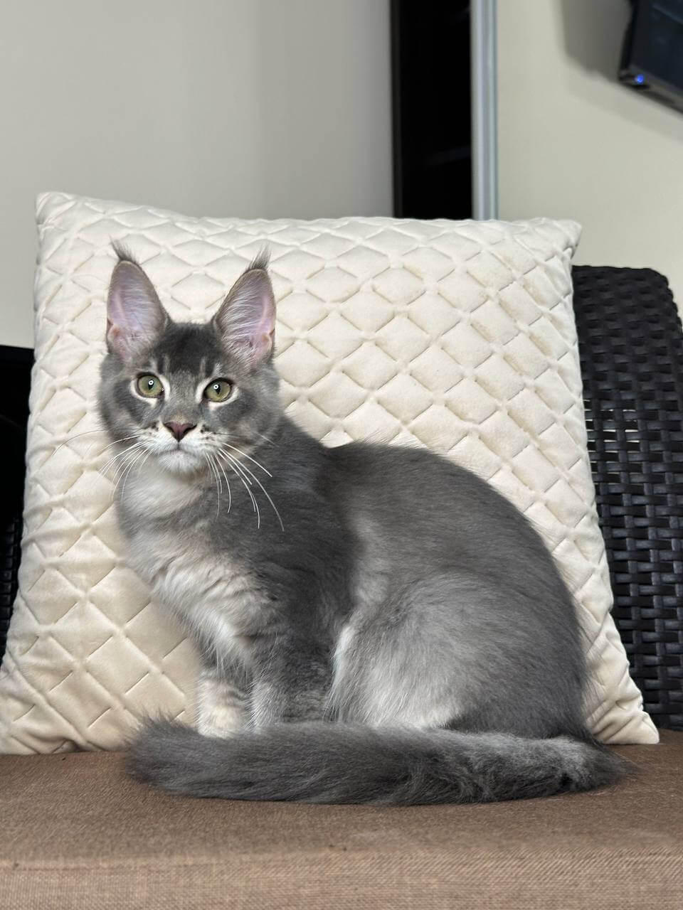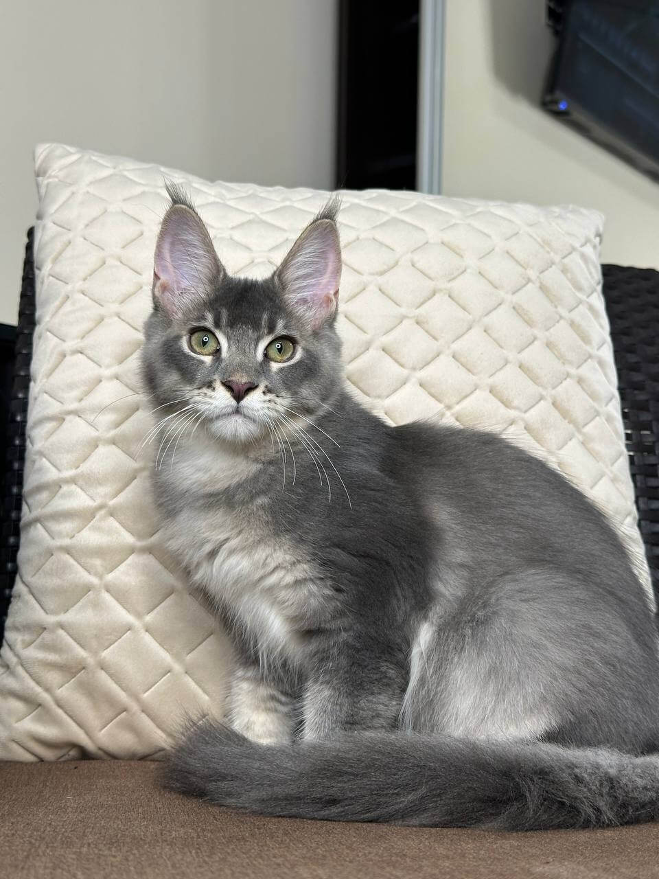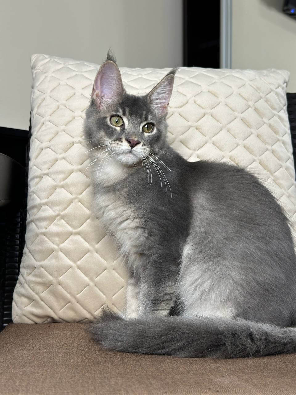 Meet Ludovik – a breathtaking blue tabby ticked Maine Coon boy whose soft, plush fur and golden-yellow eyes will melt your heart from the very first touch. This gentle giant is pure warmth: a purring cuddle companion who soothes with every nuzzle and adores gentle strokes behind his velvet ears. Ludovik’s playful curiosity and calm, regal confidence make him the perfect friend for both quiet nights in and lively family moments. His graceful stride and tufted paws are simply unforgettable.