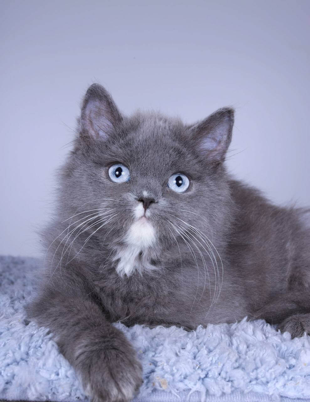 Luna is a stunning female British Longhair kitten with a luxurious blue coat and captivating blue eyes. Born on July 17, 2025, she’s ready to join your family from November 17, 2025, and comes from champion bloodlines with show-quality attributes. Luna is registered and can be neutered or spayed as per your preference, with breeding rights available upon request. She has a conditional pedigree—please contact us for pricing details.