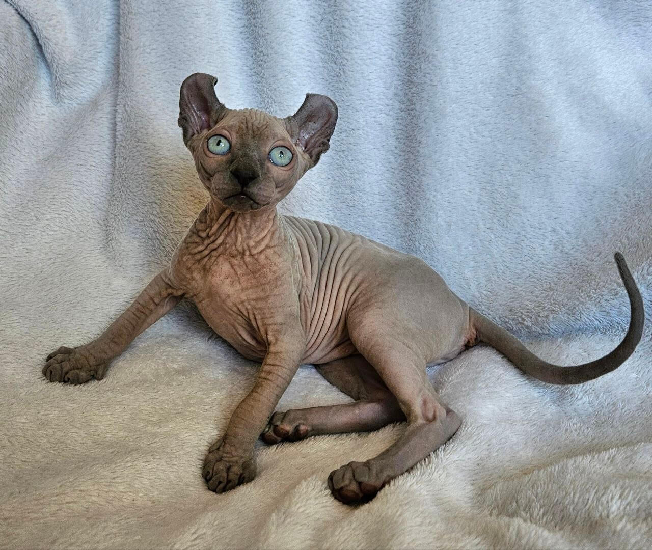When Luna, our remarkable Blue Mink Elf kitten, curls into your arms, you’ll immediately notice the luxurious softness of her unique coat—so fine it feels like velvet brushed by moonlight. Her emerald green eyes lock onto yours with deep, radiant warmth, and when she purrs, you sense her gentle physical presence settle sweetly into your lap.