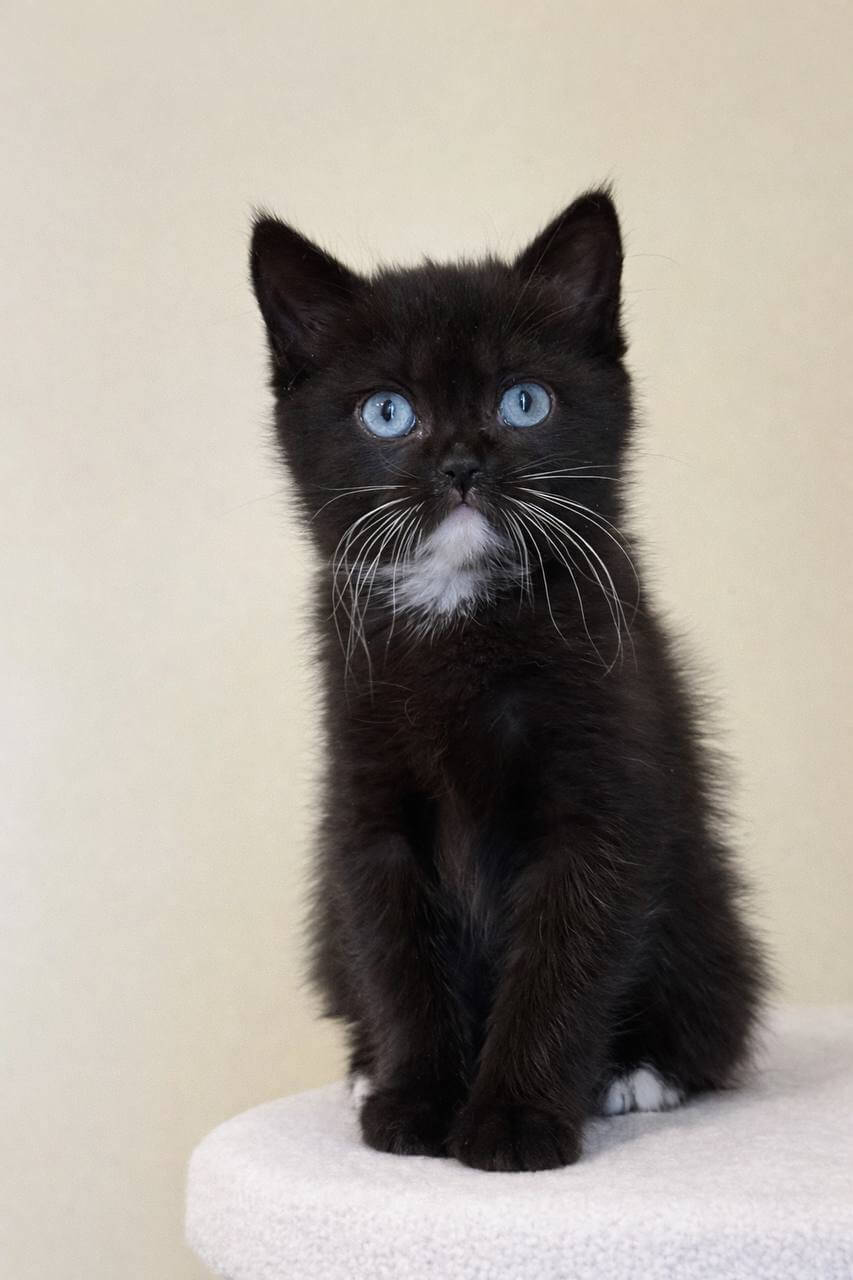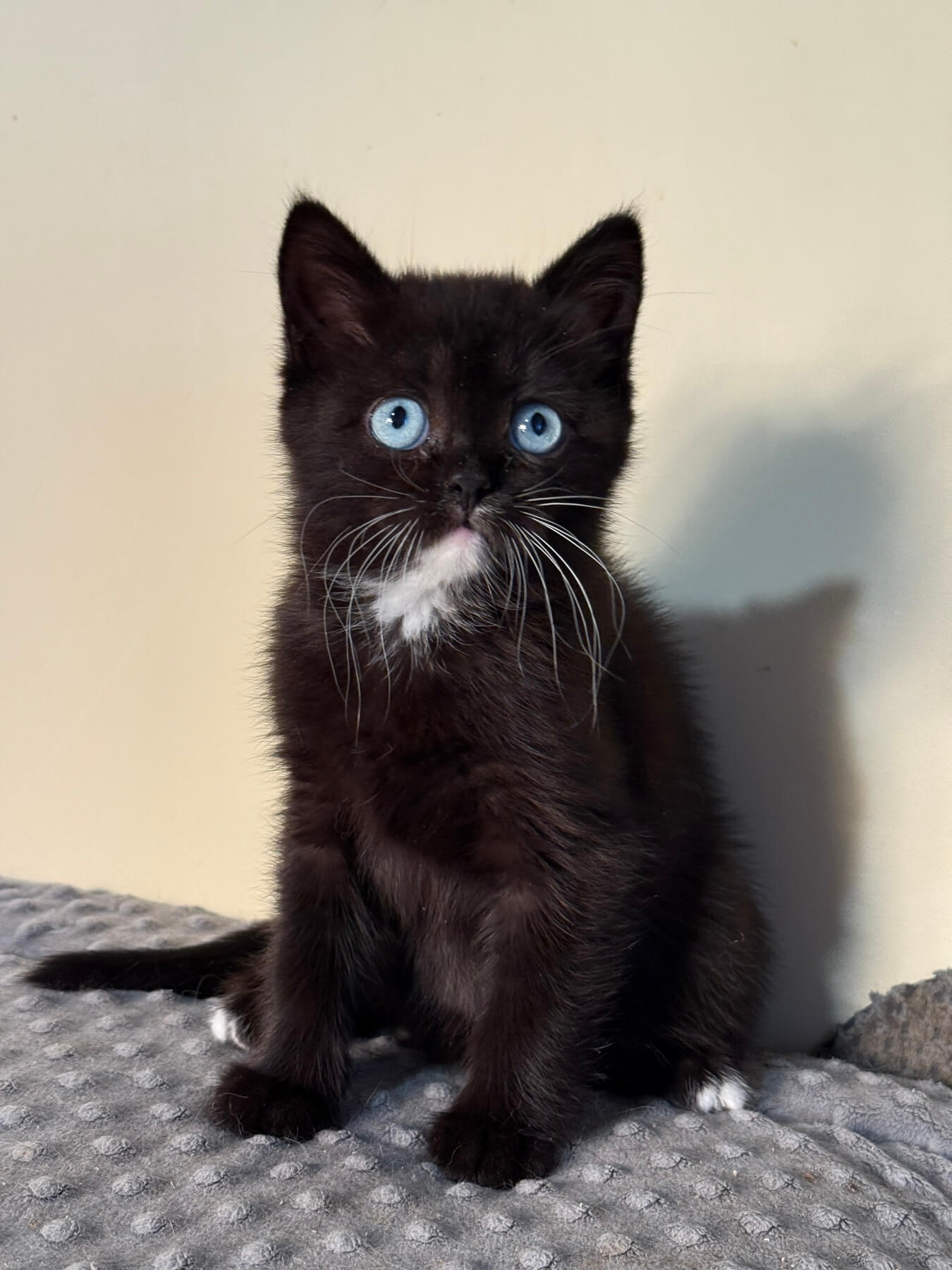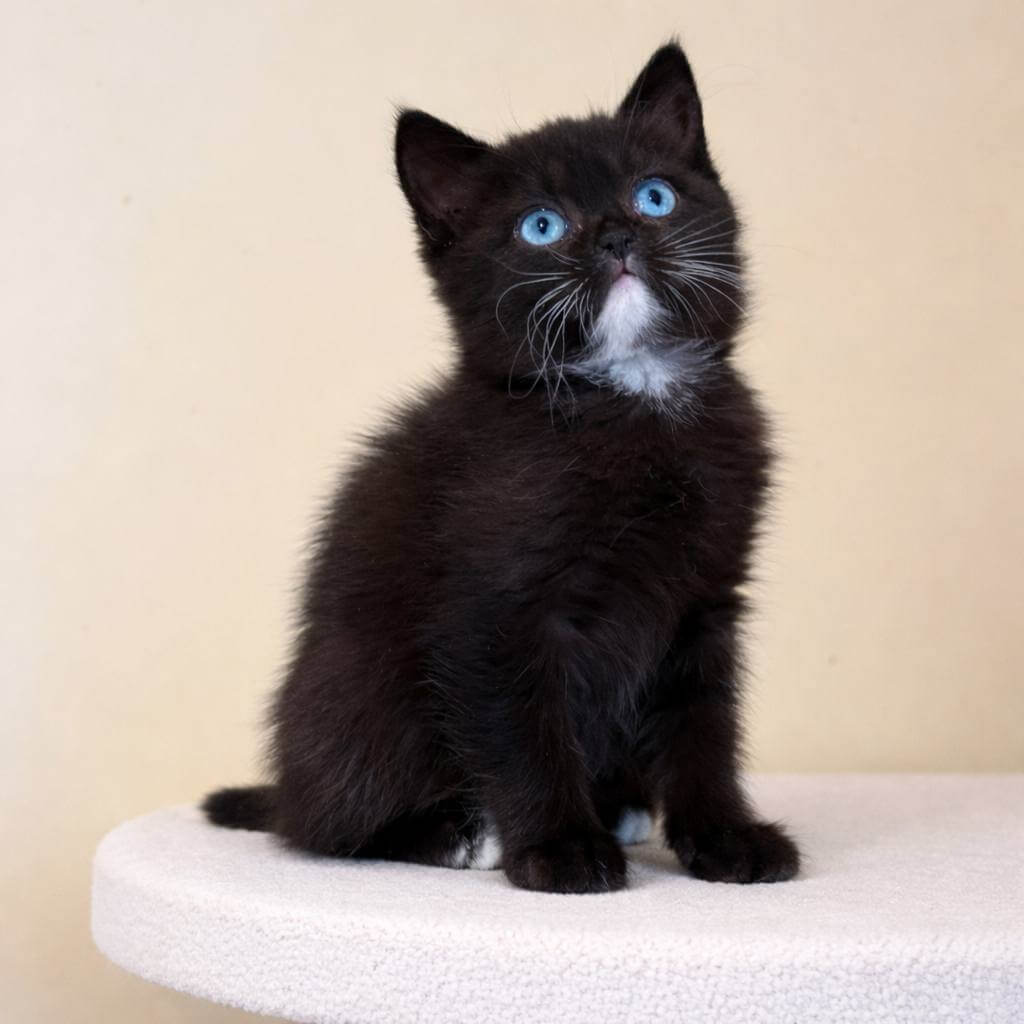 Meet Luna—a pure midnight dream with dazzling blue eyes that hold all the wonder of the night sky. One look at her plush, jet-black coat and luminous gaze, and you’ll feel the irresistible urge to reach out and scoop her close.
