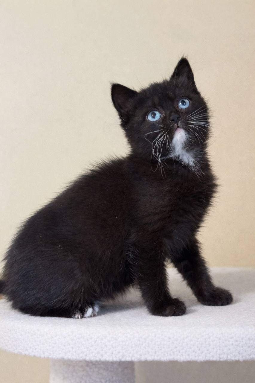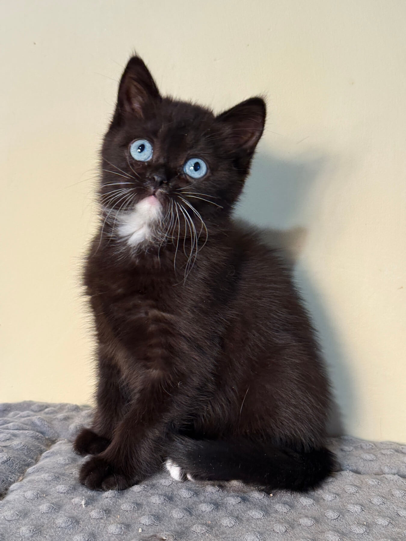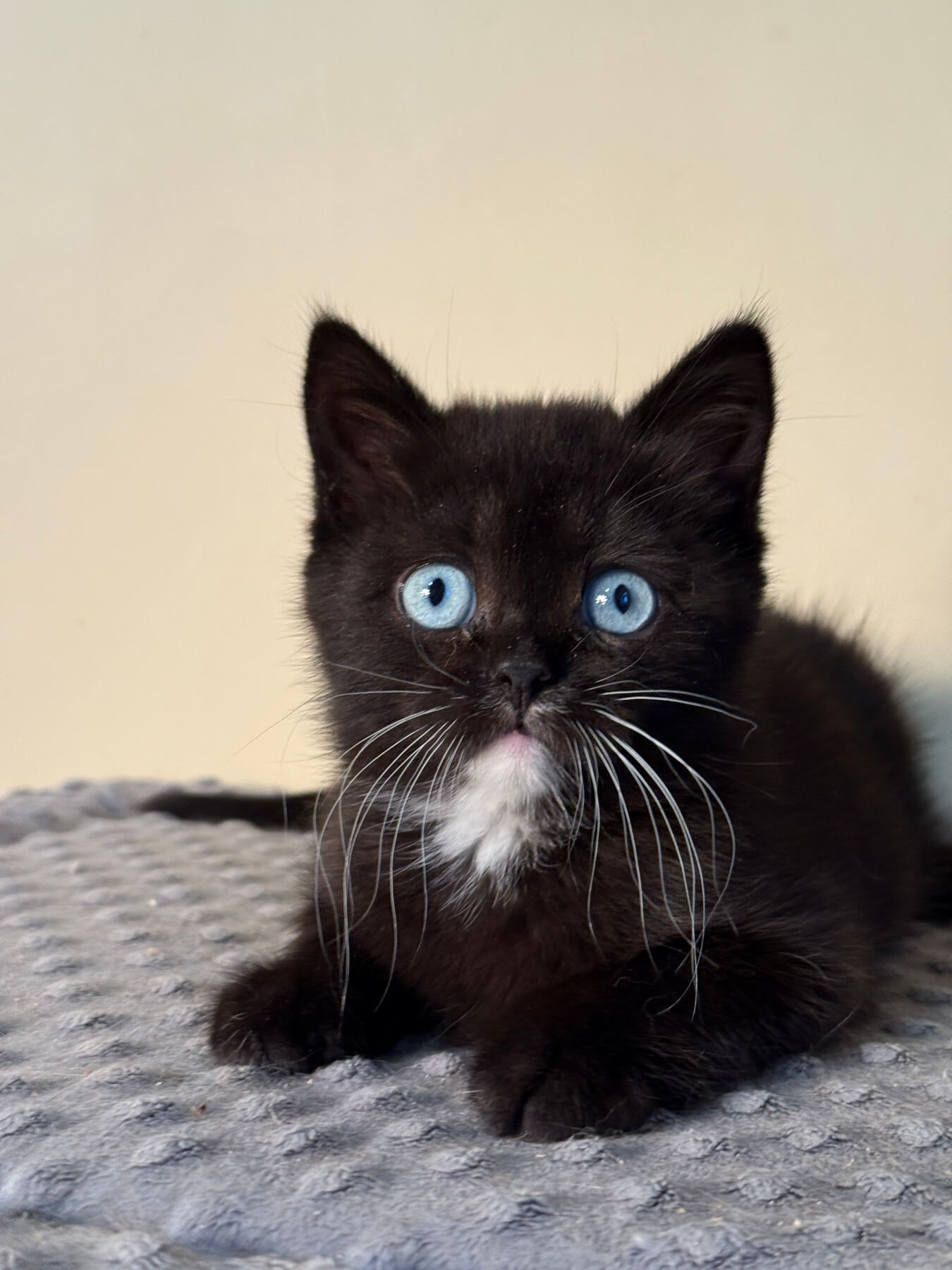 Meet Luna—a pure midnight dream with dazzling blue eyes that hold all the wonder of the night sky. One look at her plush, jet-black coat and luminous gaze, and you’ll feel the irresistible urge to reach out and scoop her close.