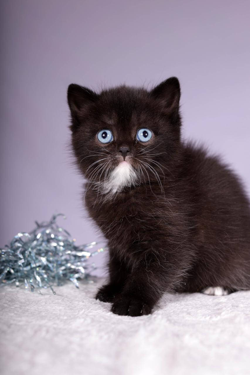 Meet Luna—a pure midnight dream with dazzling blue eyes that hold all the wonder of the night sky. One look at her plush, jet-black coat and luminous gaze, and you’ll feel the irresistible urge to reach out and scoop her close.