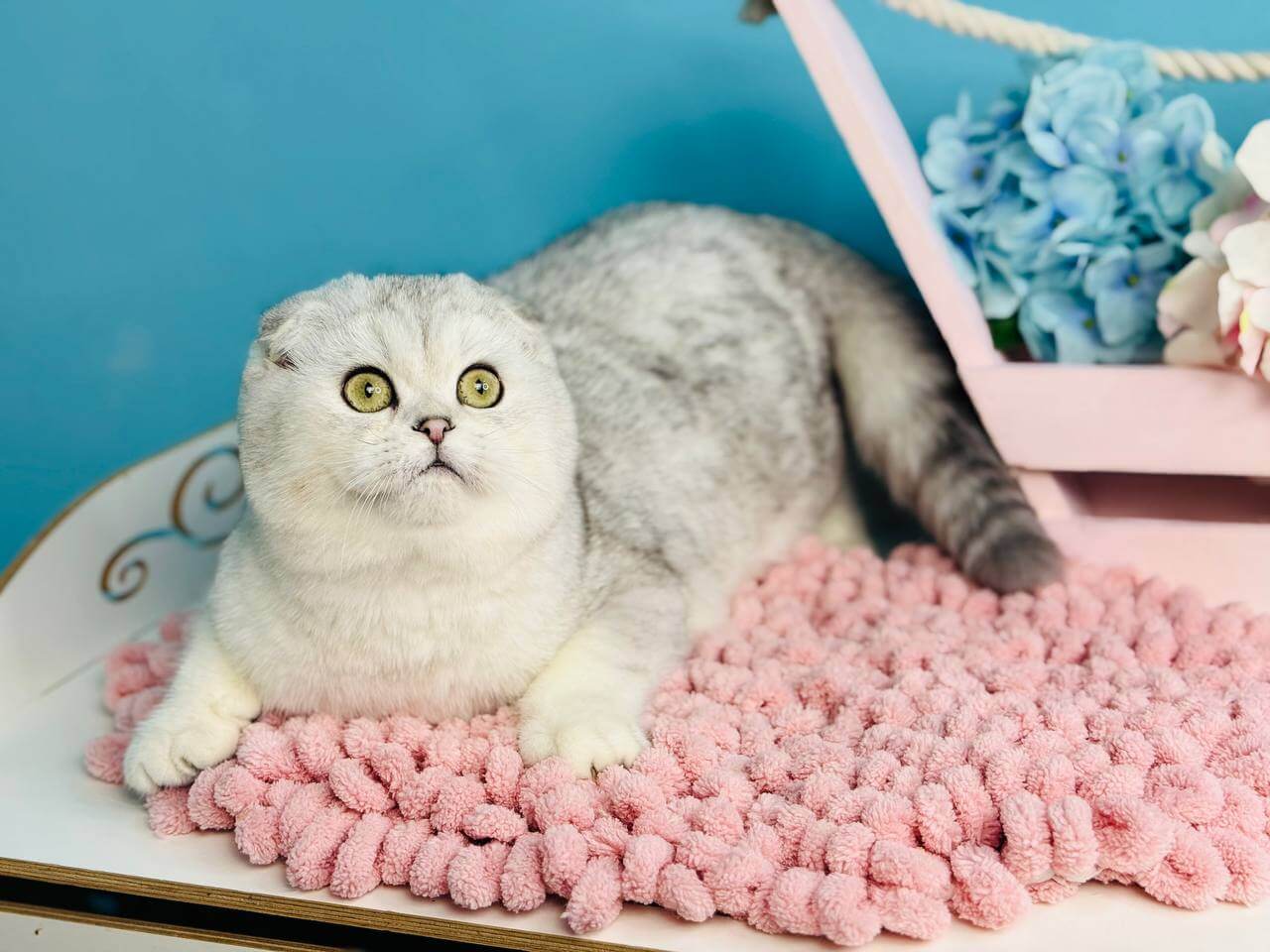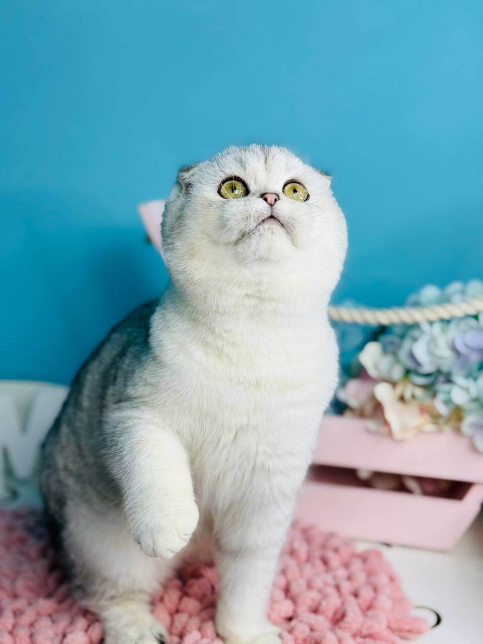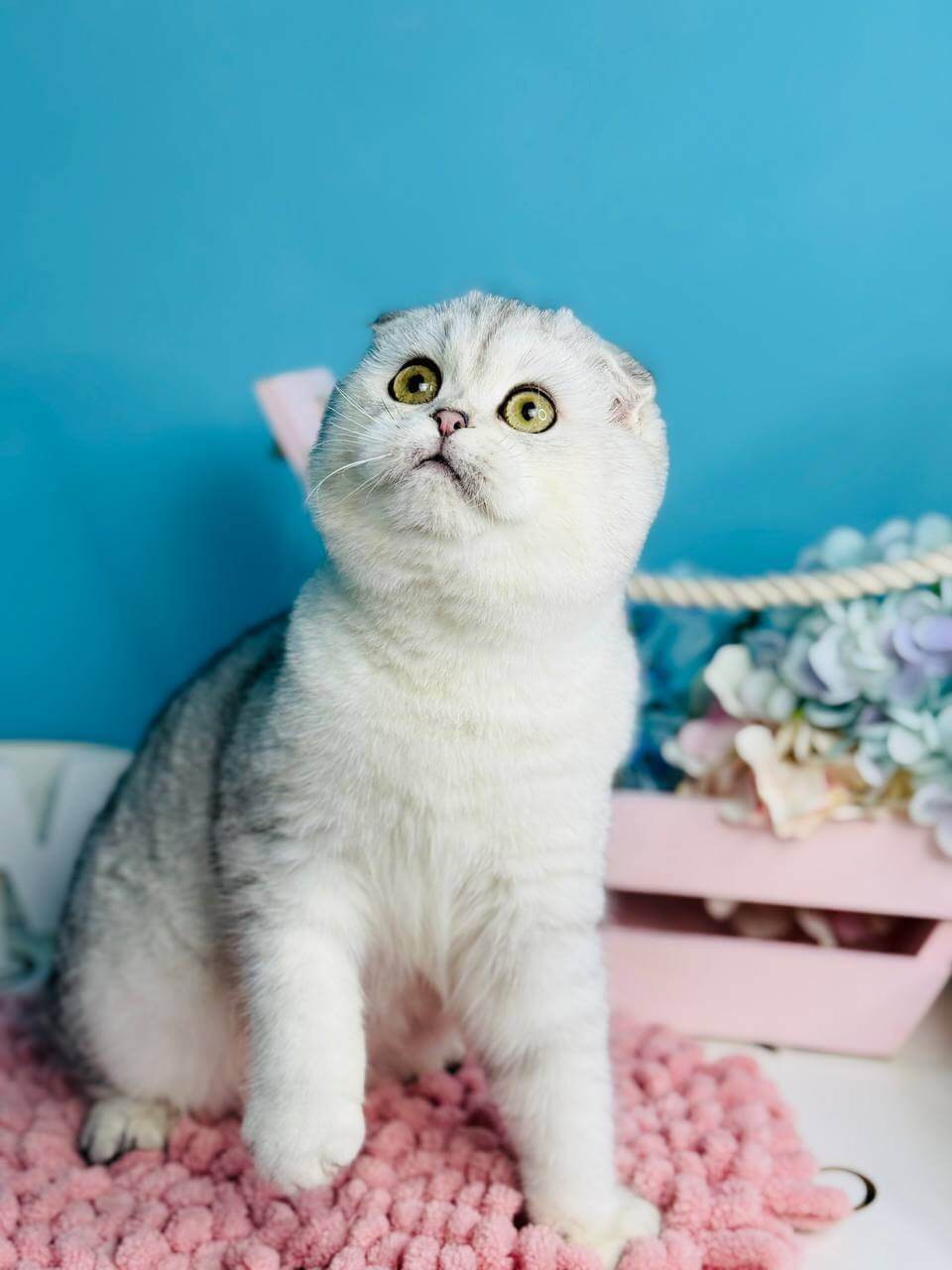 Our Scottish Fold comes with 7 days a week support for all your kitten needs. A $500 non-refundable deposit is required to hold this little guy exclusively for you. For peace of mind, if any health issues arise upon acquisition as confirmed by a licensed vet, we will accept his return and provide a store credit.