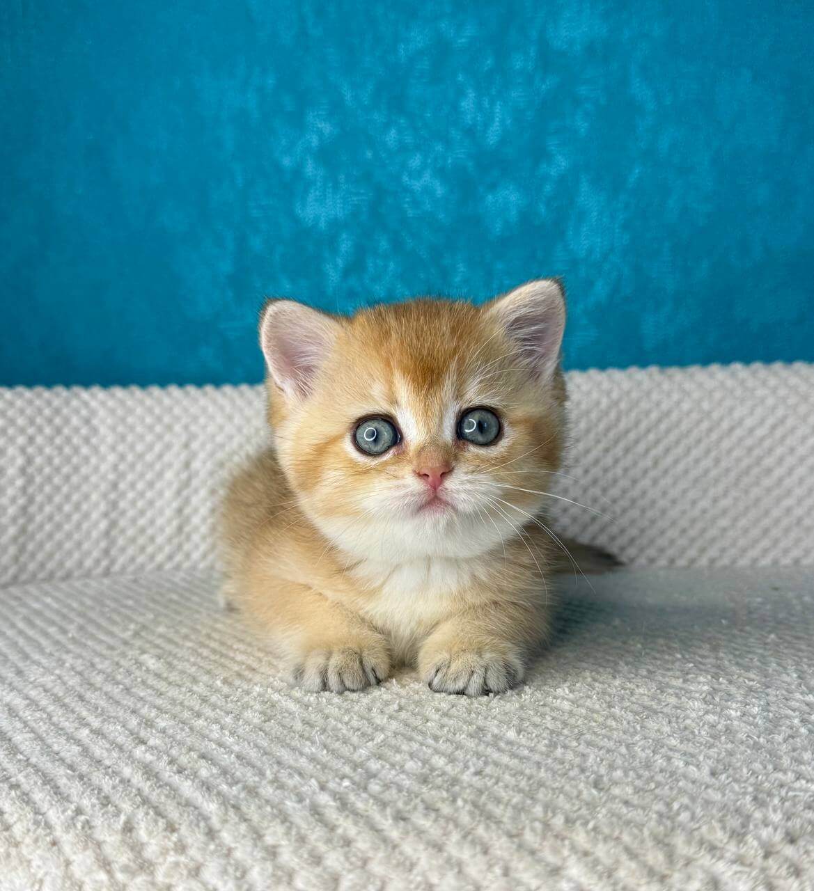 Meet Milka – a golden treasure waiting to melt your heart. One gentle gaze into her sparkling green eyes and you’ll feel that instant, irresistible connection only a British Shorthair kitten can bring.