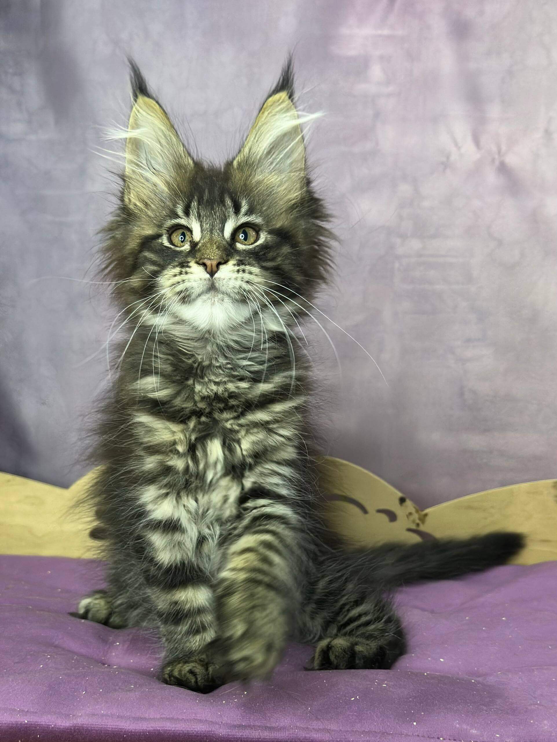 When you enter the room, Miranda lifts her silken tail high, greeting you with a chirrup that’s pure Maine Coon magic. She shadows your steps, investigating with grace and boldness, then windmills across soft rugs in pursuit of a feathery toy. At night, you’ll find her stretched at your feet, purring slow and low, a loyal companion with a knack for choosing your favorite spot.