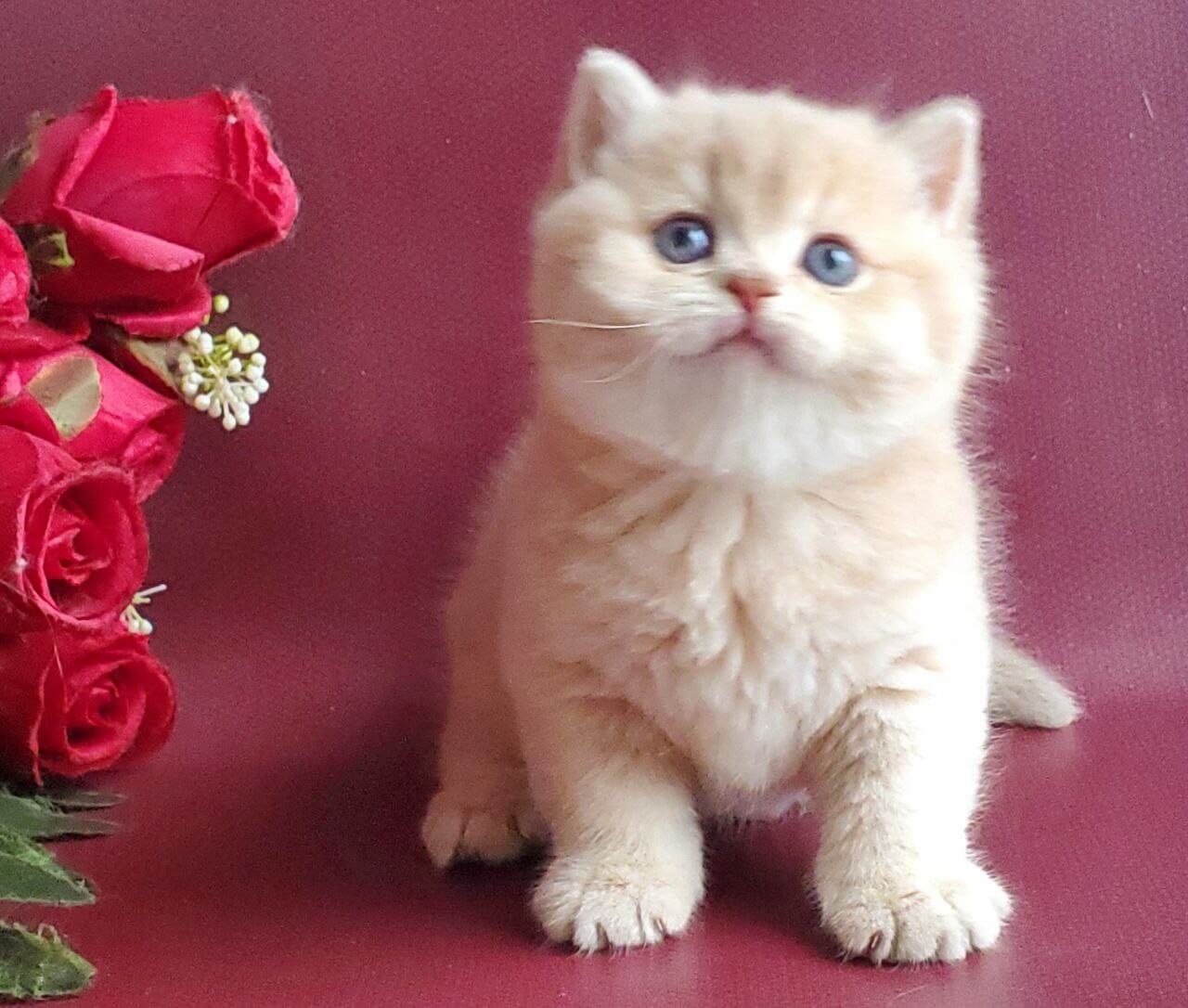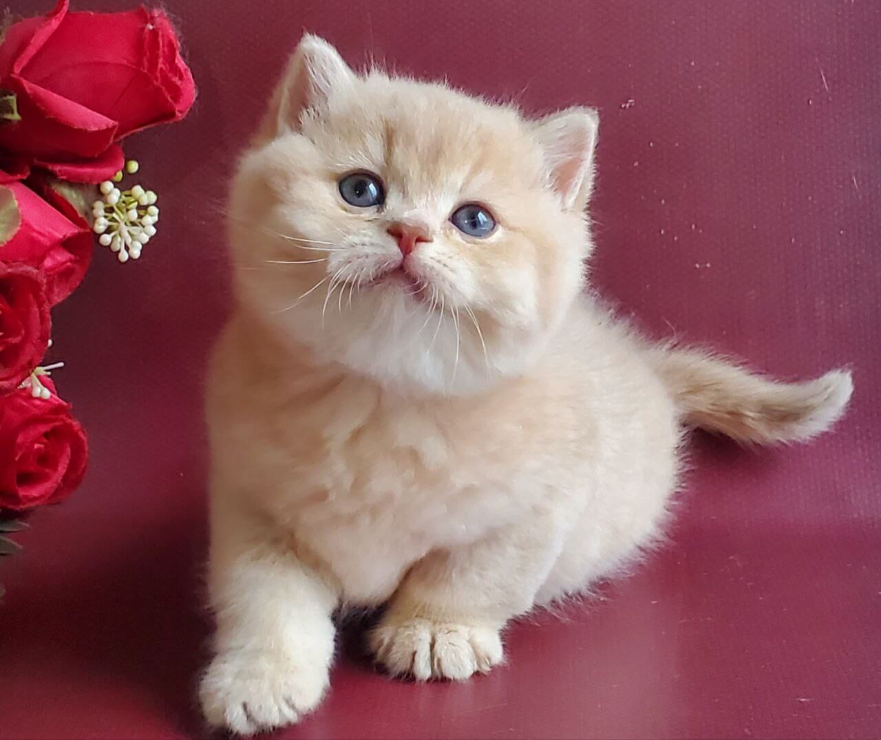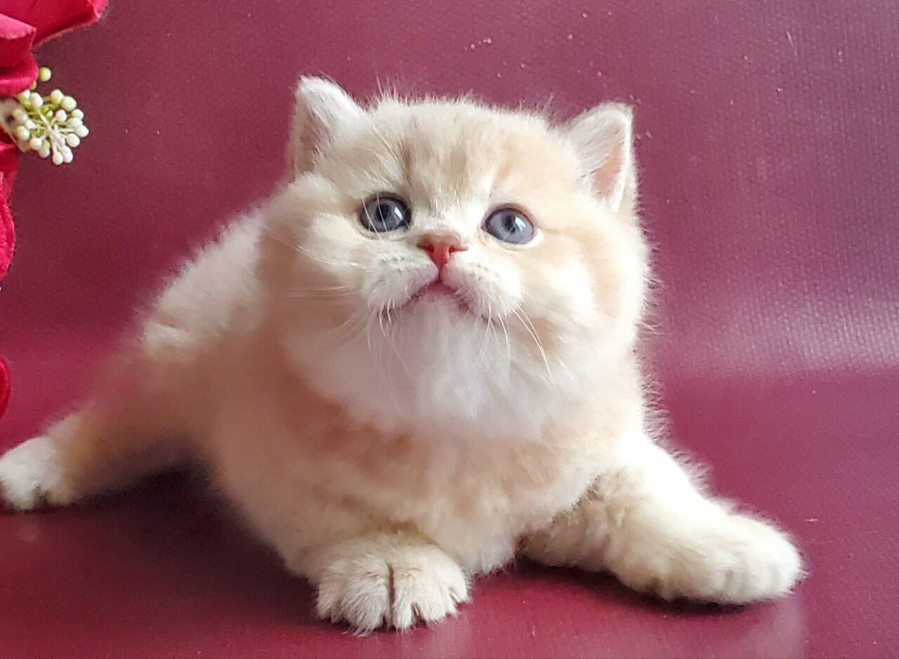 Meet Misha — a gentle treasure wrapped in plush lilac golden fur, with emerald-green eyes that reflect every ounce of love you give. This handsome little British Shorthair boy has the softest coat you’ll ever touch, and he’s just as sweet-natured as he is beautiful. Whether he’s curled up purring in your arms or chasing wooden toy mice, Misha’s calm, affectionate spirit makes every moment at home feel warmer.