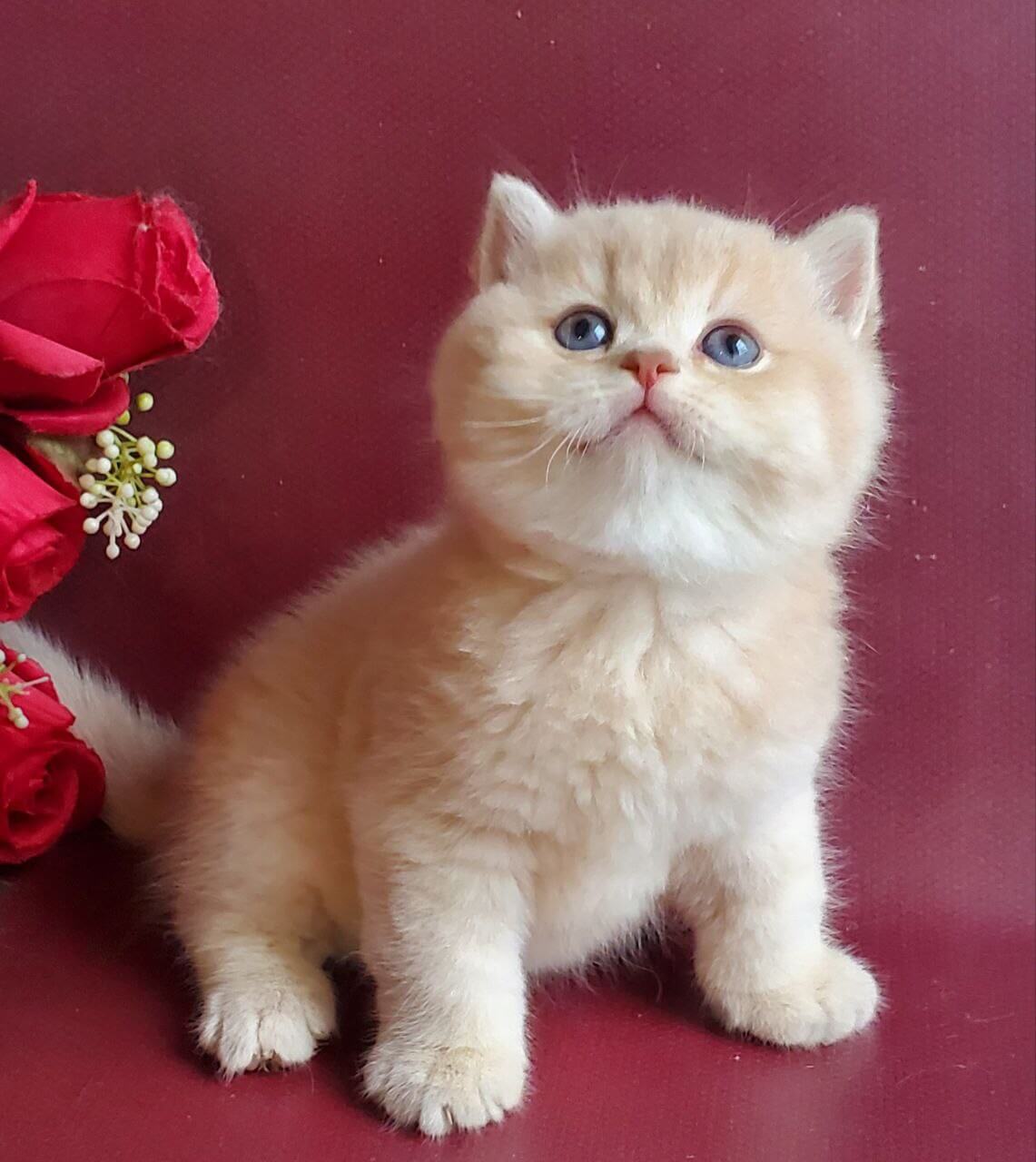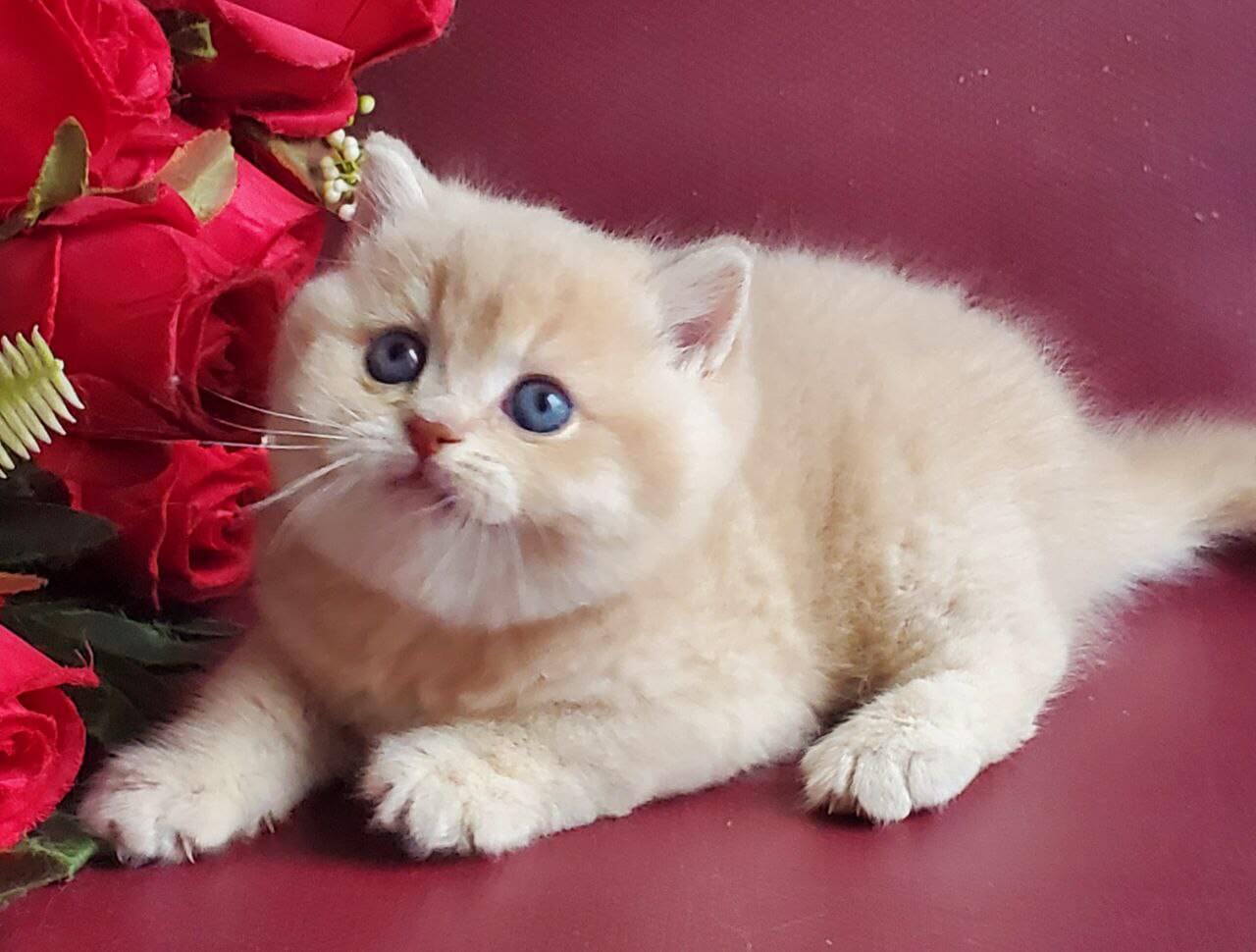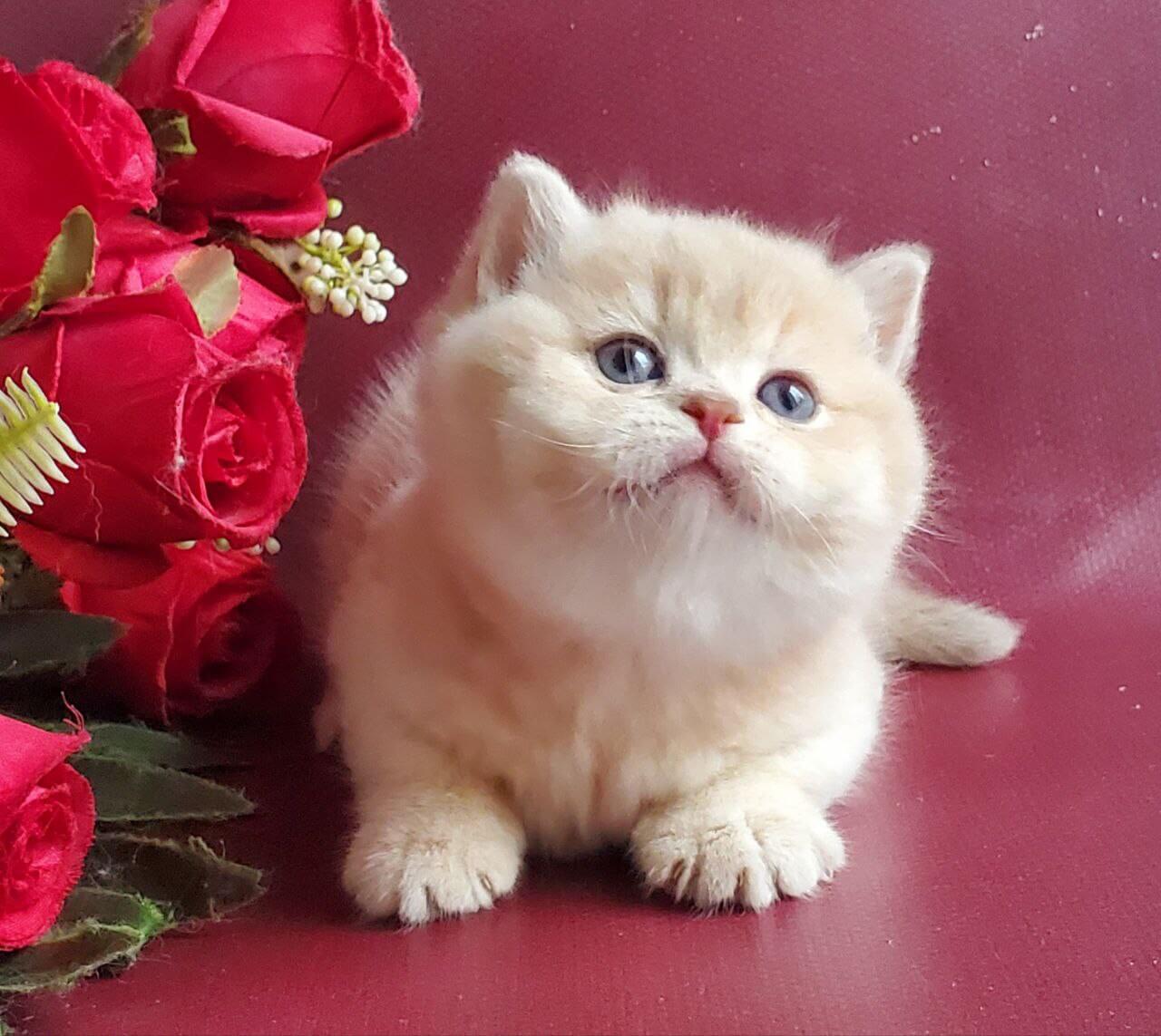 Meet Misha — a gentle treasure wrapped in plush lilac golden fur, with emerald-green eyes that reflect every ounce of love you give. This handsome little British Shorthair boy has the softest coat you’ll ever touch, and he’s just as sweet-natured as he is beautiful. Whether he’s curled up purring in your arms or chasing wooden toy mice, Misha’s calm, affectionate spirit makes every moment at home feel warmer.