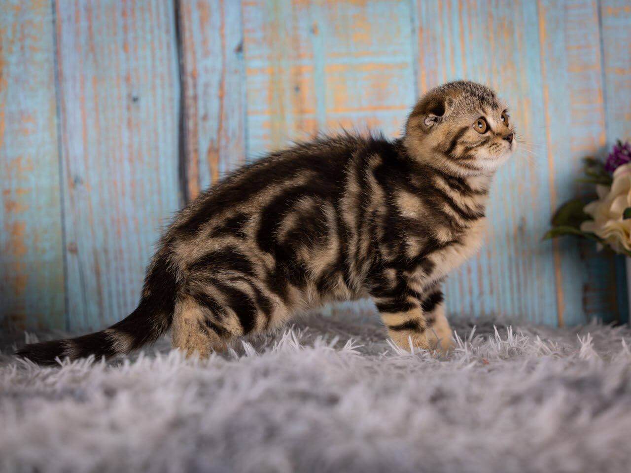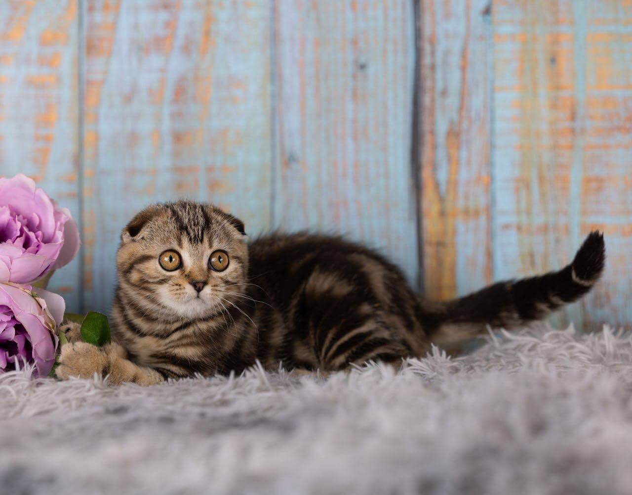 Meet Naomi, our exquisite female Scottish Fold kitten, a true beauty with her black tabby blotched coat and striking yellow eyes. Born on June 27, 2025, she’s ready to join her new family from October 27, 2025. With champion bloodlines and show quality standards, Naomi is registered and available as a pet, with spaying options included. Located in Europe, she’s available for reservation in the USA through our website, with pickup in Wood Dale, Illinois, or delivery options from Chicago to other states. We offer 7-days-a-week support for all your kitten care needs. Reserve this little wonder with a $500 deposit and make her your treasured companion. For any queries, feel free to contact us. Follow our Instagram to see more of Naomi and her adorable friends in action!