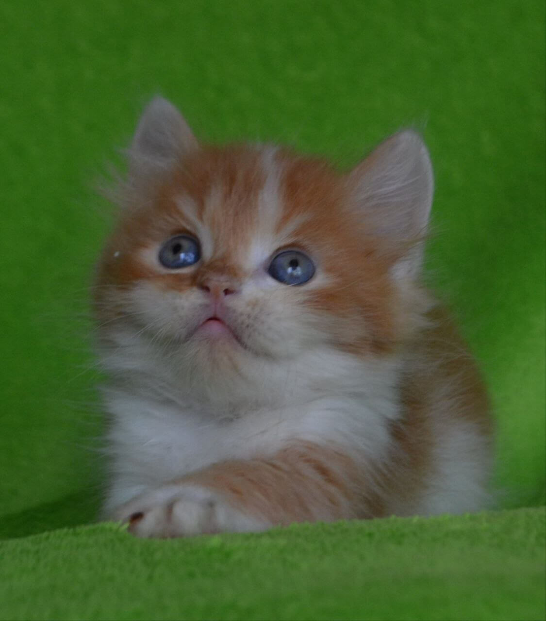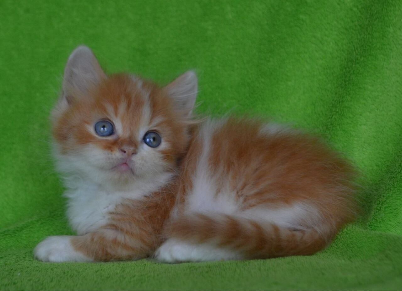 When you meet Narciss, our Red With White Munchkin kitten, it’s his lush, pillowy coat and brilliant yellow gaze that capture your heart first. His silky red fur is streaked with snowy white, cool to the touch and plush beneath your fingertips. When Narciss blinks slowly at you, the warmth of his presence lingers long after he nestles into your lap.
