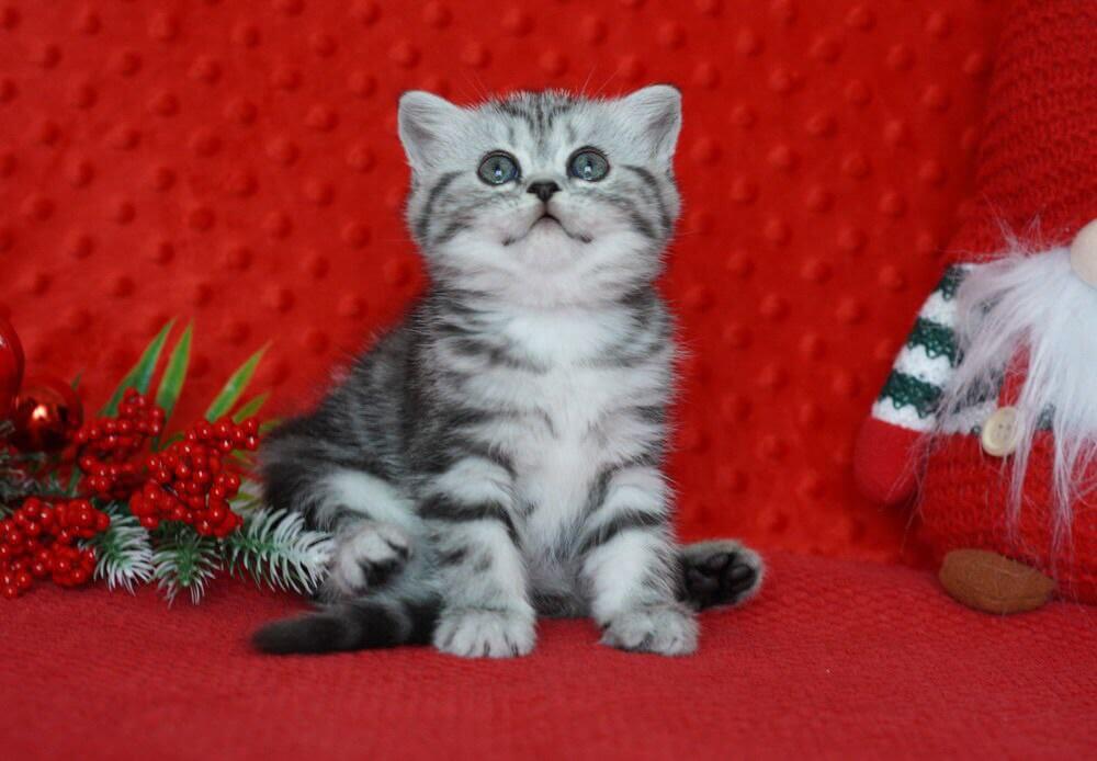 From the very first touch, Natty will capture your heart. Her plush black silver tabby coat shimmers in the light, while her golden yellow eyes gaze up with wonder and affection. Natty isn’t just a show-quality kitten—she’s a gentle spirit, purring softly as she curls up in your arms or pads quietly after you around the room, ever-ready to offer warmth and the soothing comfort of true companionship.