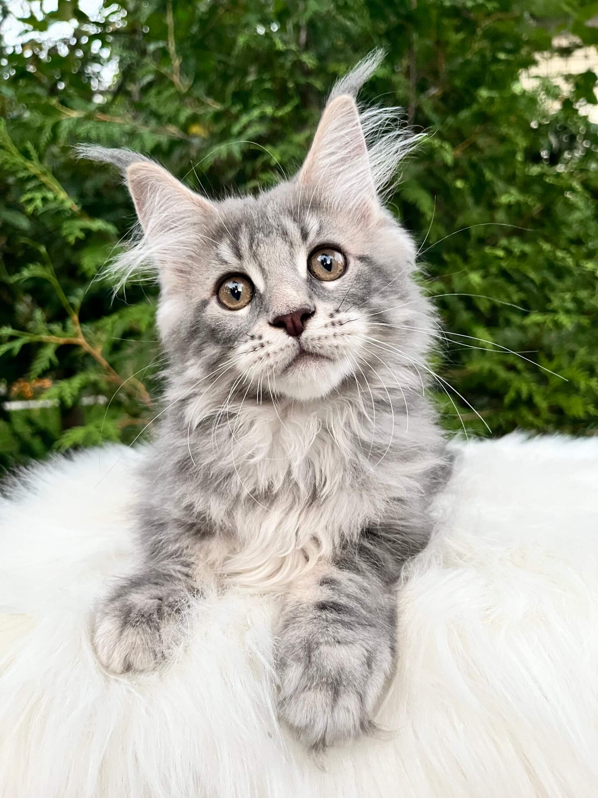 Born June 16, 2025, Nelson walks proudly in the pawprints of champion bloodlines, and arrives fully socialized, registered, and litter-trained (wood pallets or clumping litter—your choice). Every kitten is vet-checked, show-quality, and supported by our 7-days-a-week loving care guarantee, so you feel confident every step of the journey.