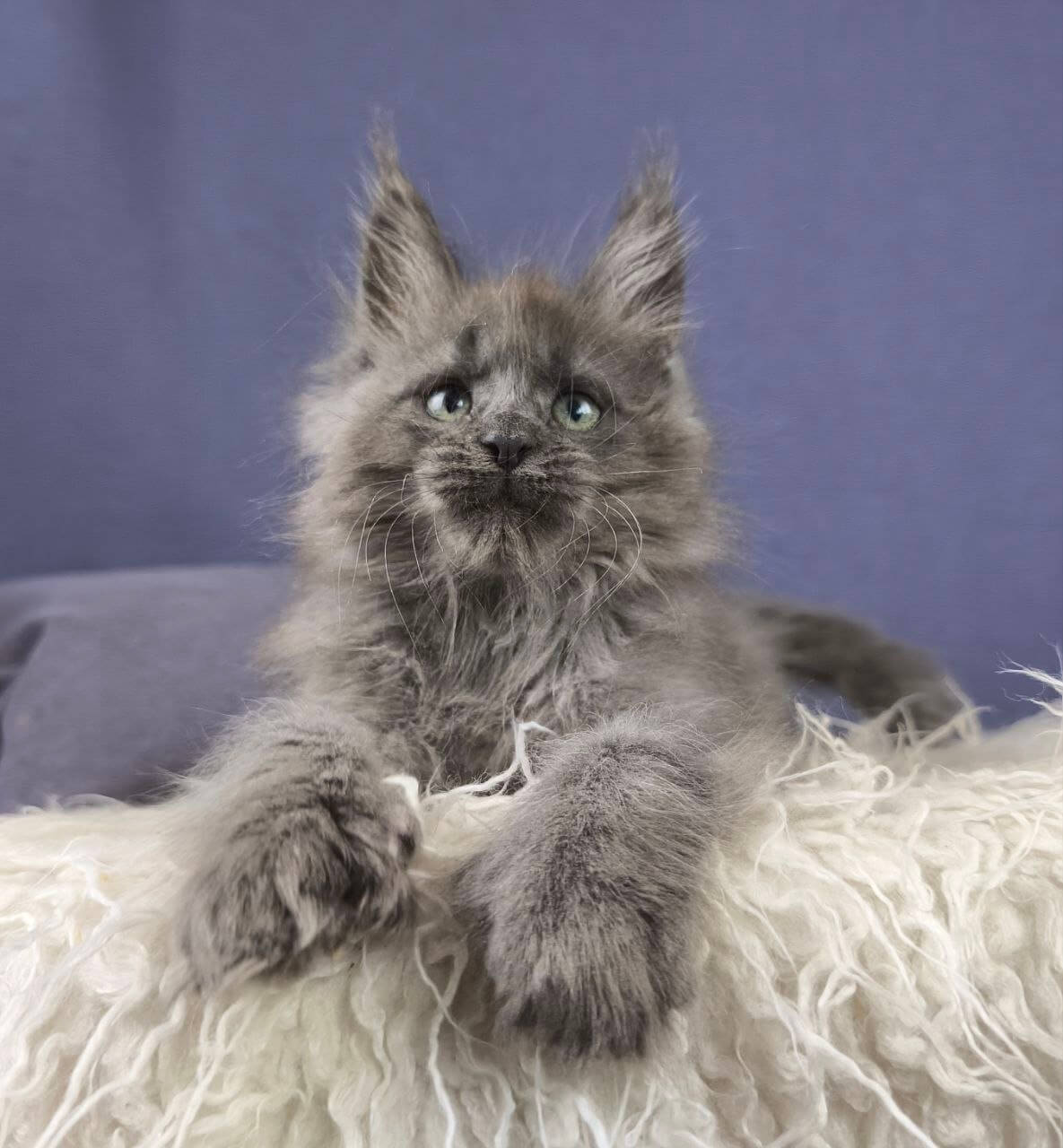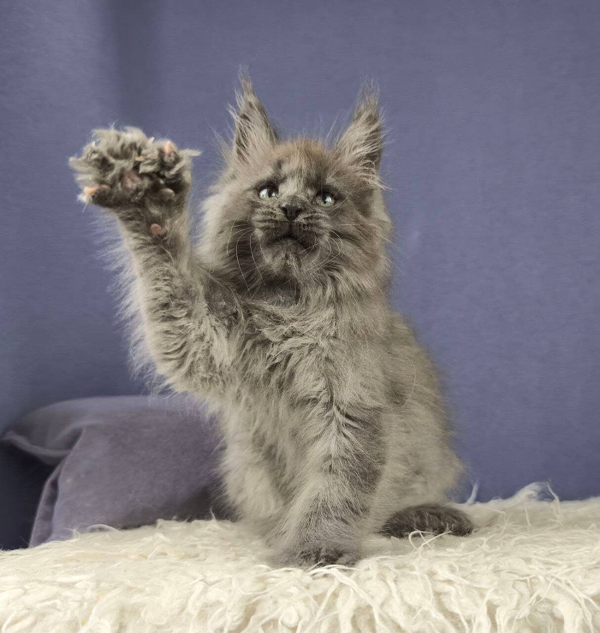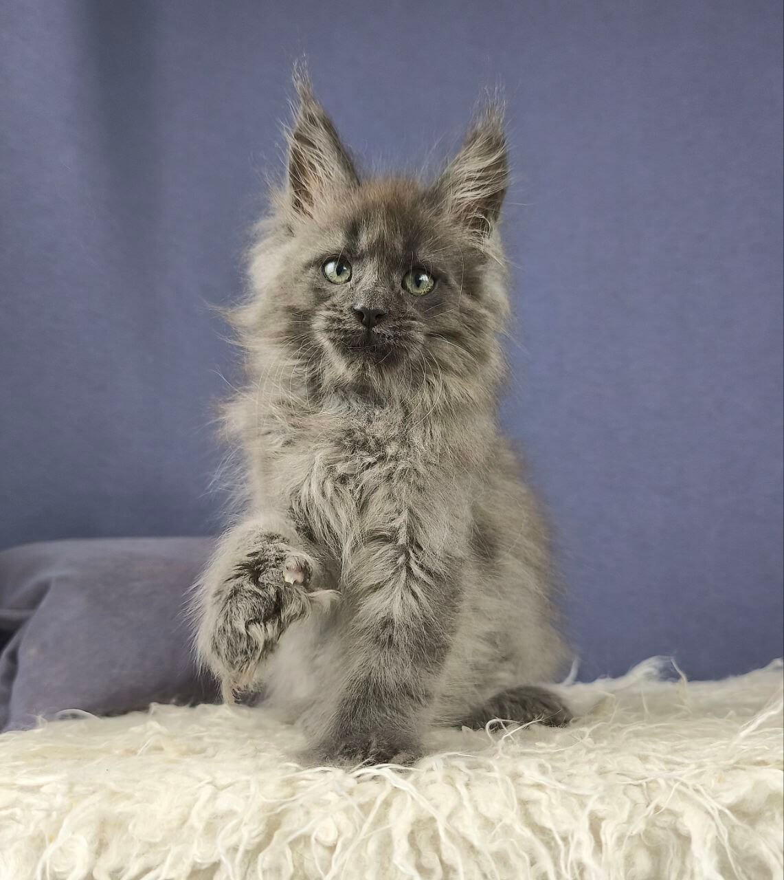 Meet Nesquik, your future gentle giant—a blue silver, poly-toed Maine Coon boy whose soft yellow eyes promise endless warmth and wonder from the very first cuddle. Born to champion bloodlines and show-quality grace, Nesquik is more than just a kitten—he’s a heart-stealer, already charming everyone around him with his playful paws and soothing purrs.