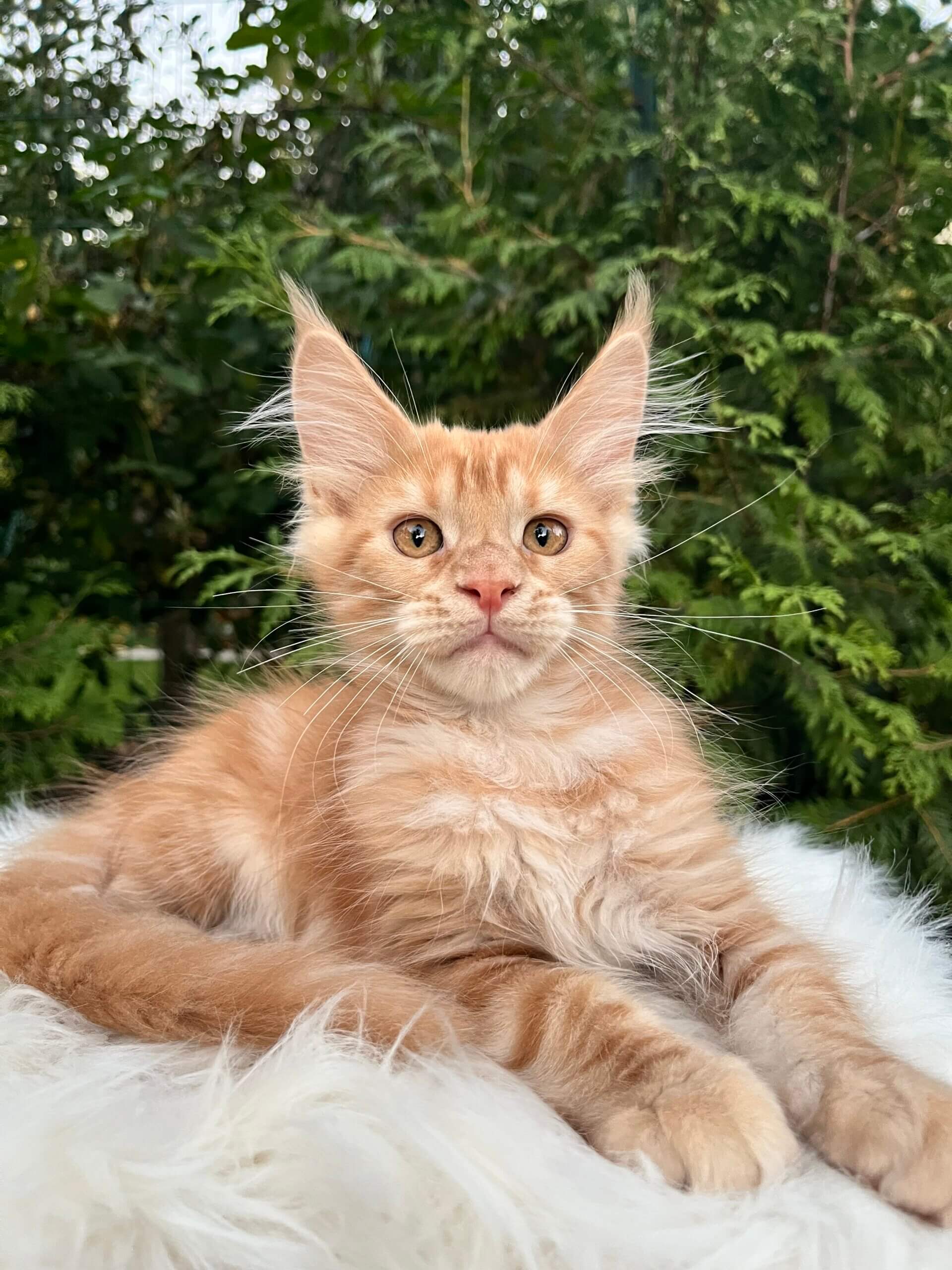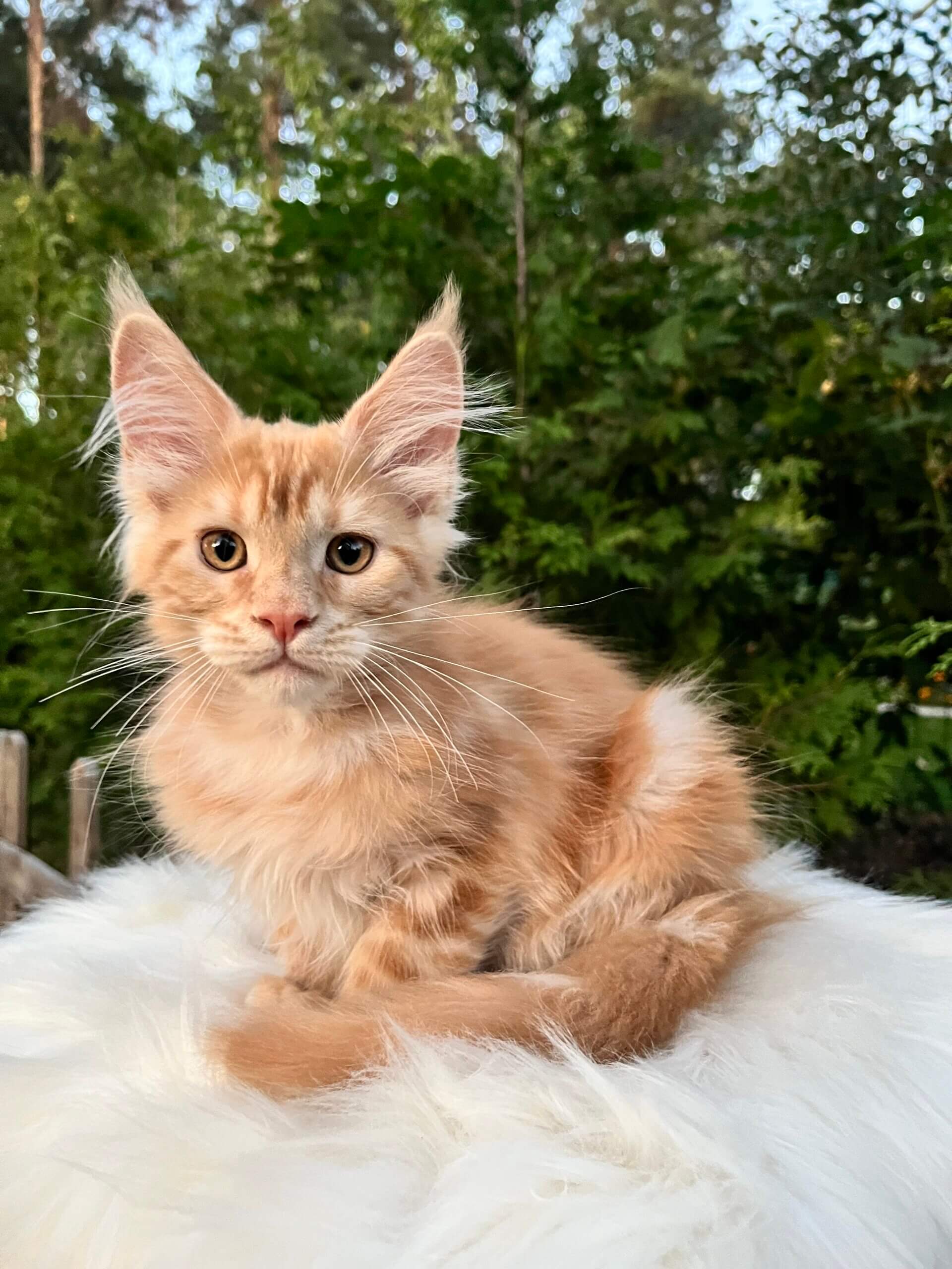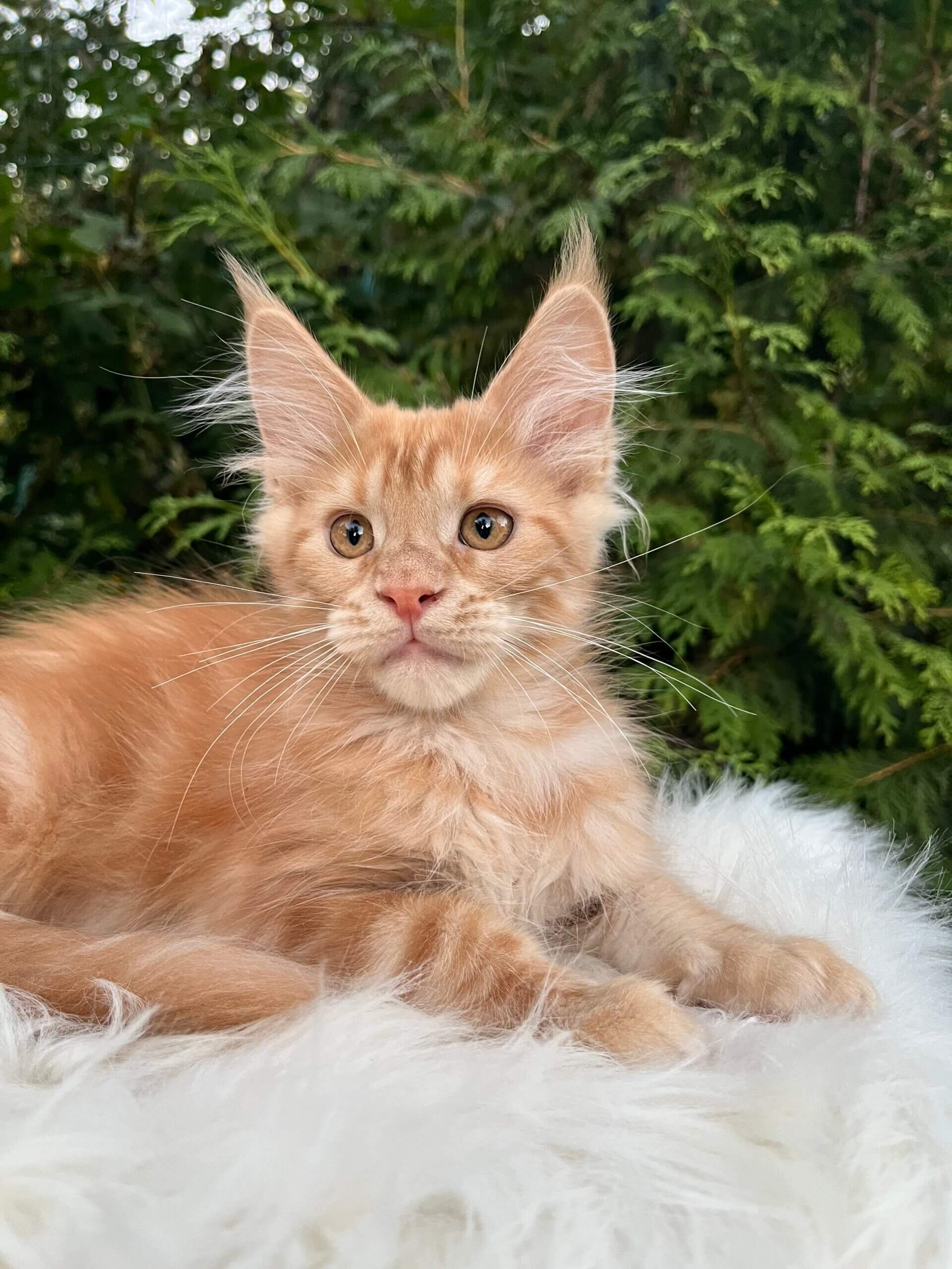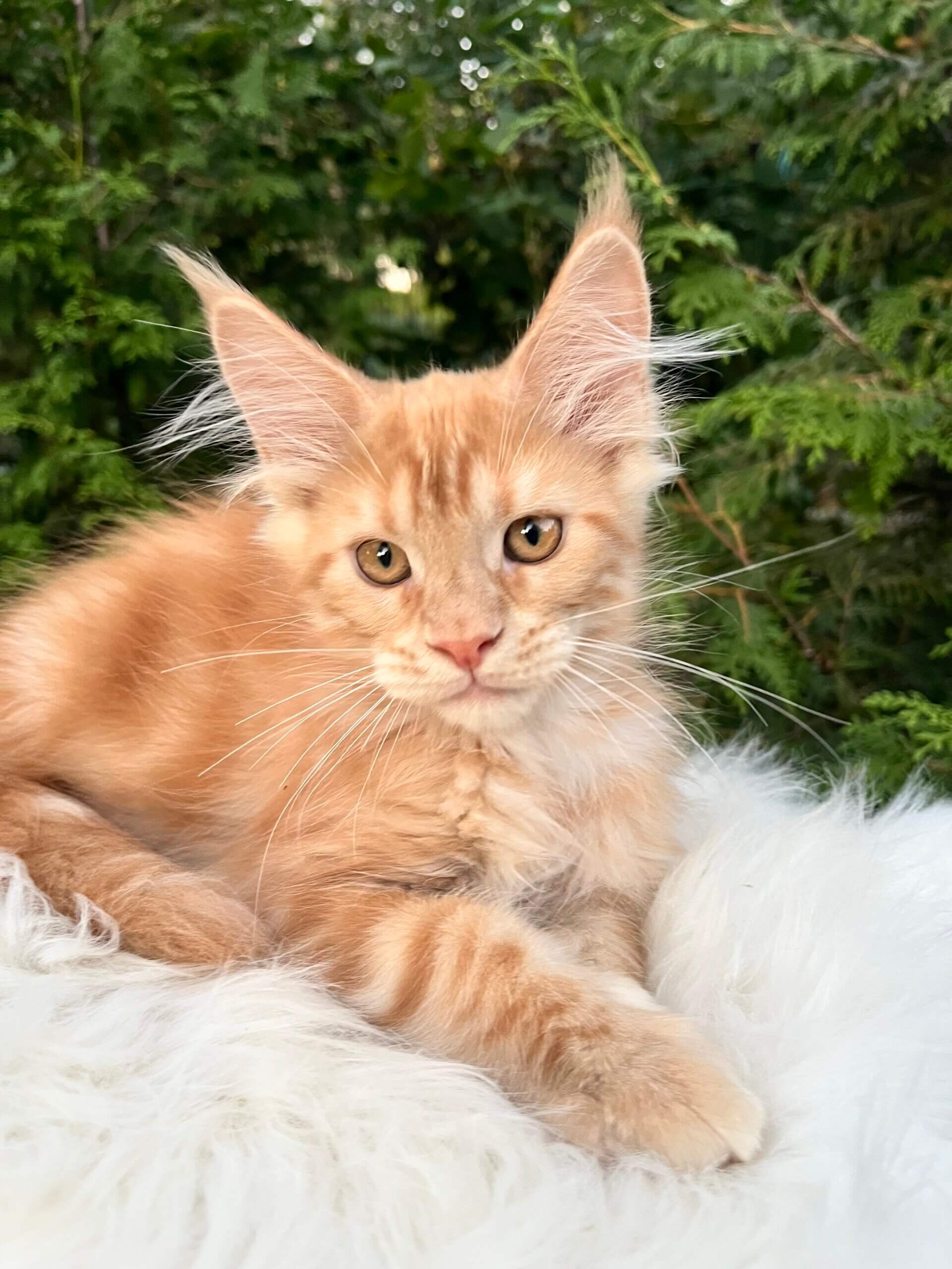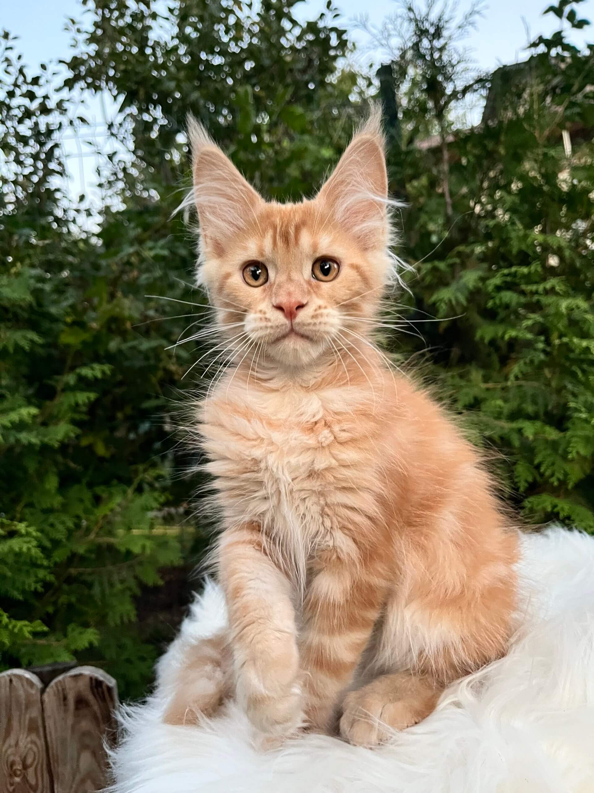 One look into Neymar’s golden-yellow eyes, and you’ll feel the warmth of a hundred little purrs. This show-quality Maine Coon boy, with his stunning red tabby swirls and plush, touchable coat, is waiting to curl up in your life and heart. His playful nature and soft, rumbling purrs bring joy to every room—Neymar is equally at home perched on your lap or chasing sunbeams with curiosity and grace.