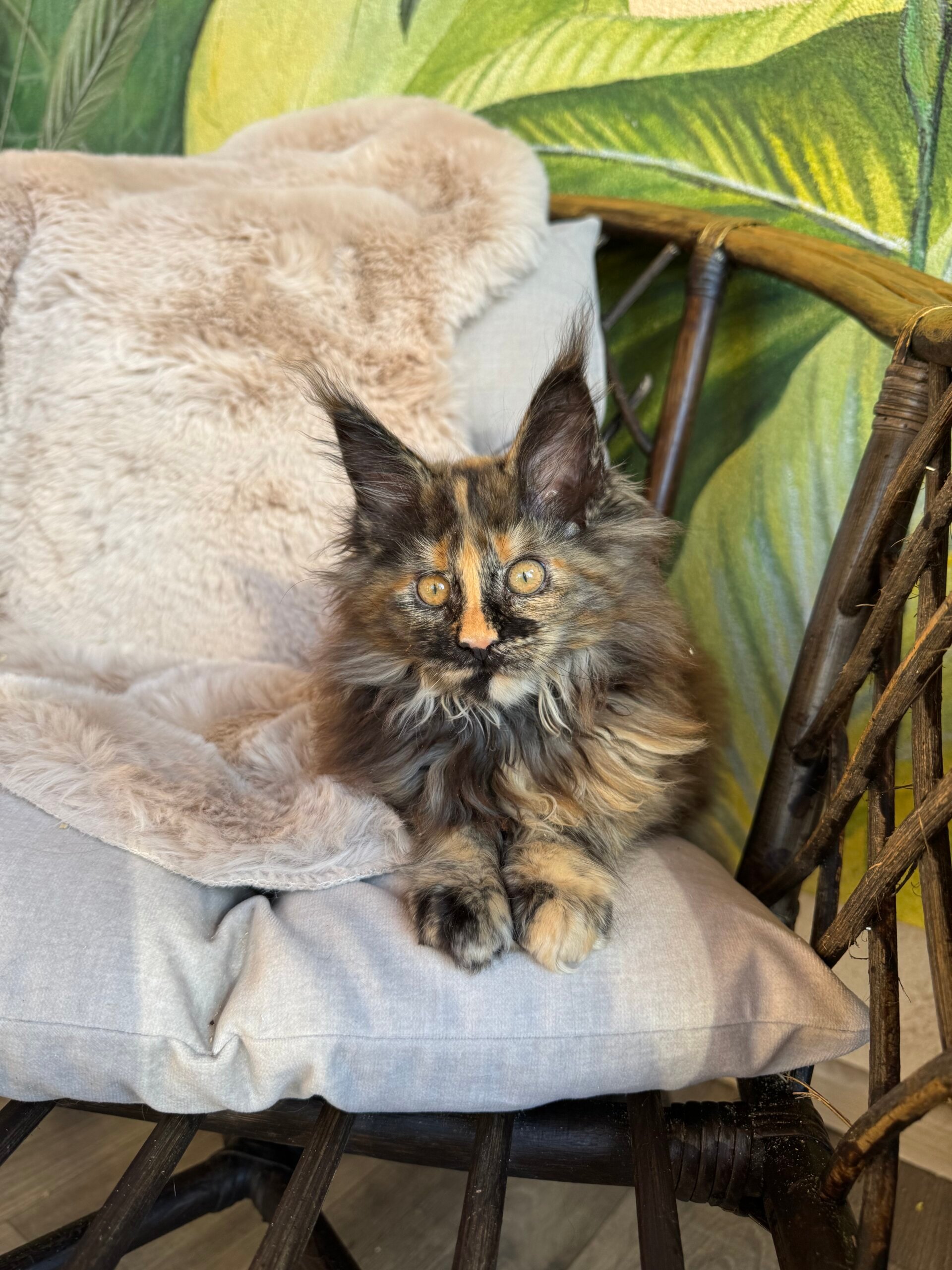 Meet Nicky — your future heart-stealer with a purr softer than velvet and eyes like warm golden lanterns. From the very first moment, she’ll curl her gentle black tortie paws around your soul, filling your home with light, laughter, and irresistible kitten cuddles.