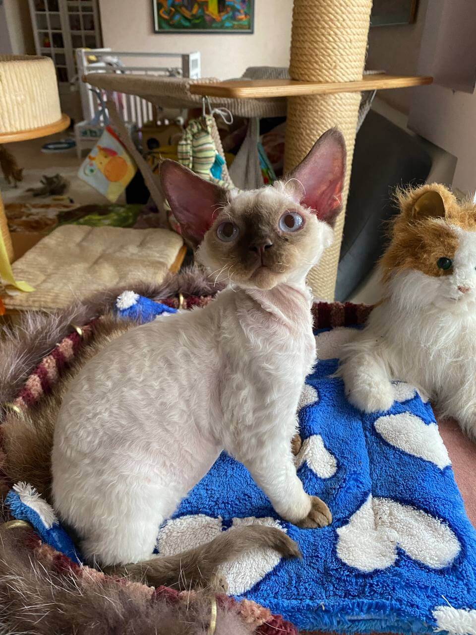 With his plush chocolate point coat and striking blue gaze, Nikatin is the very picture of elegance and gentle charm. He delights in soft cuddles, snuggling close, and following you with quiet curiosity. Warm-natured and playful, he loves the gentle touch of caring hands and will twine around your fingers with the sweetest affection.