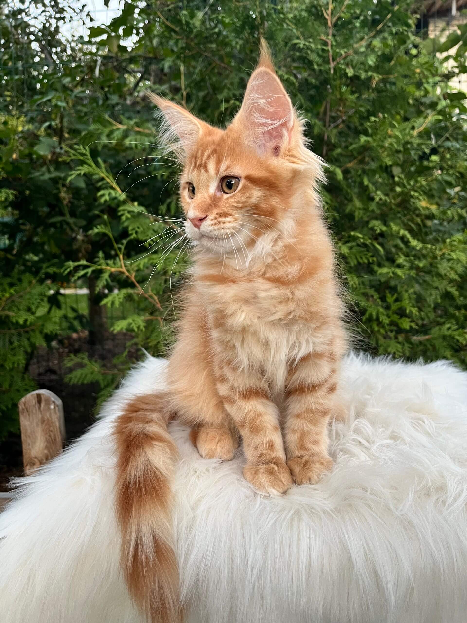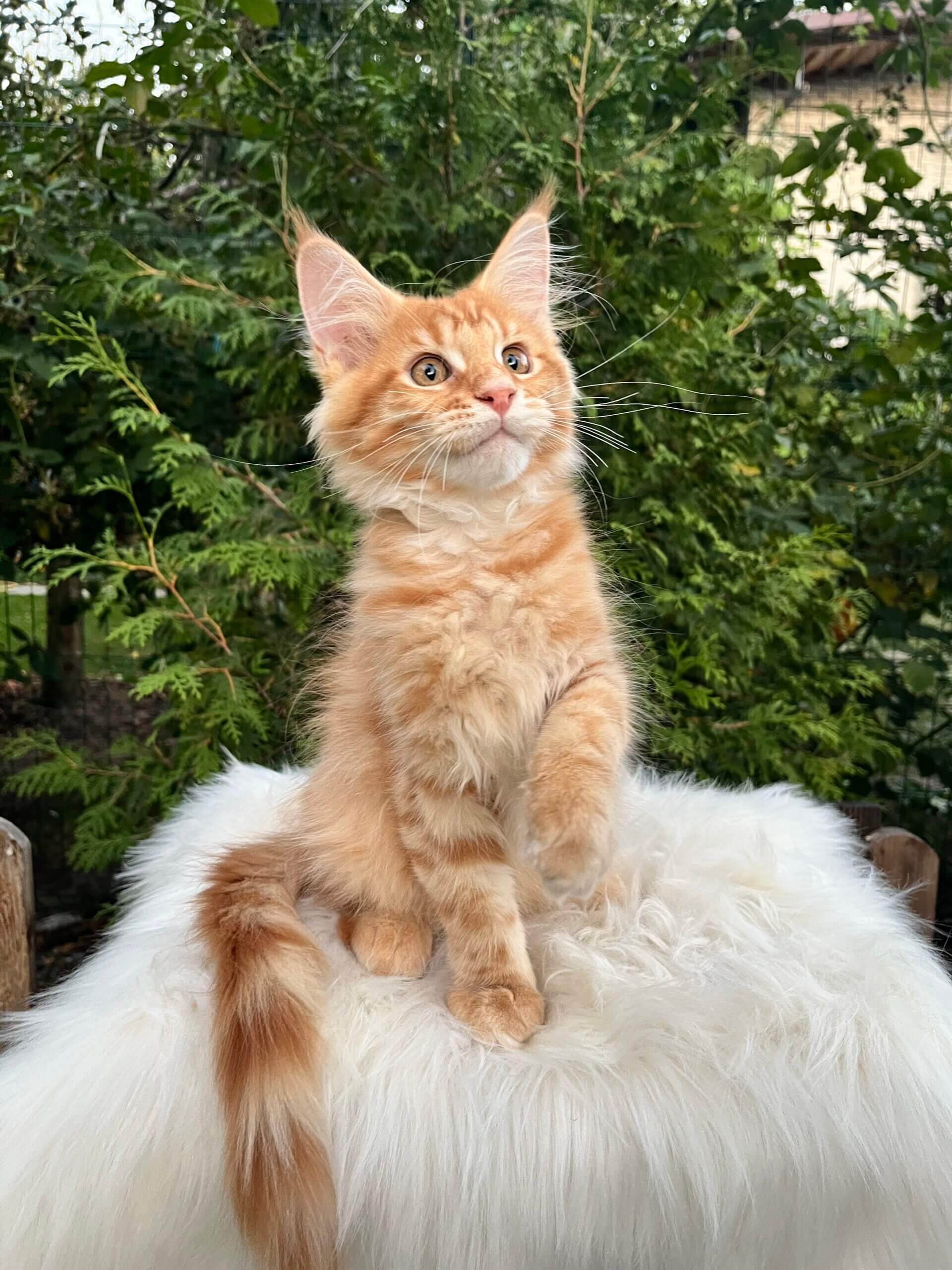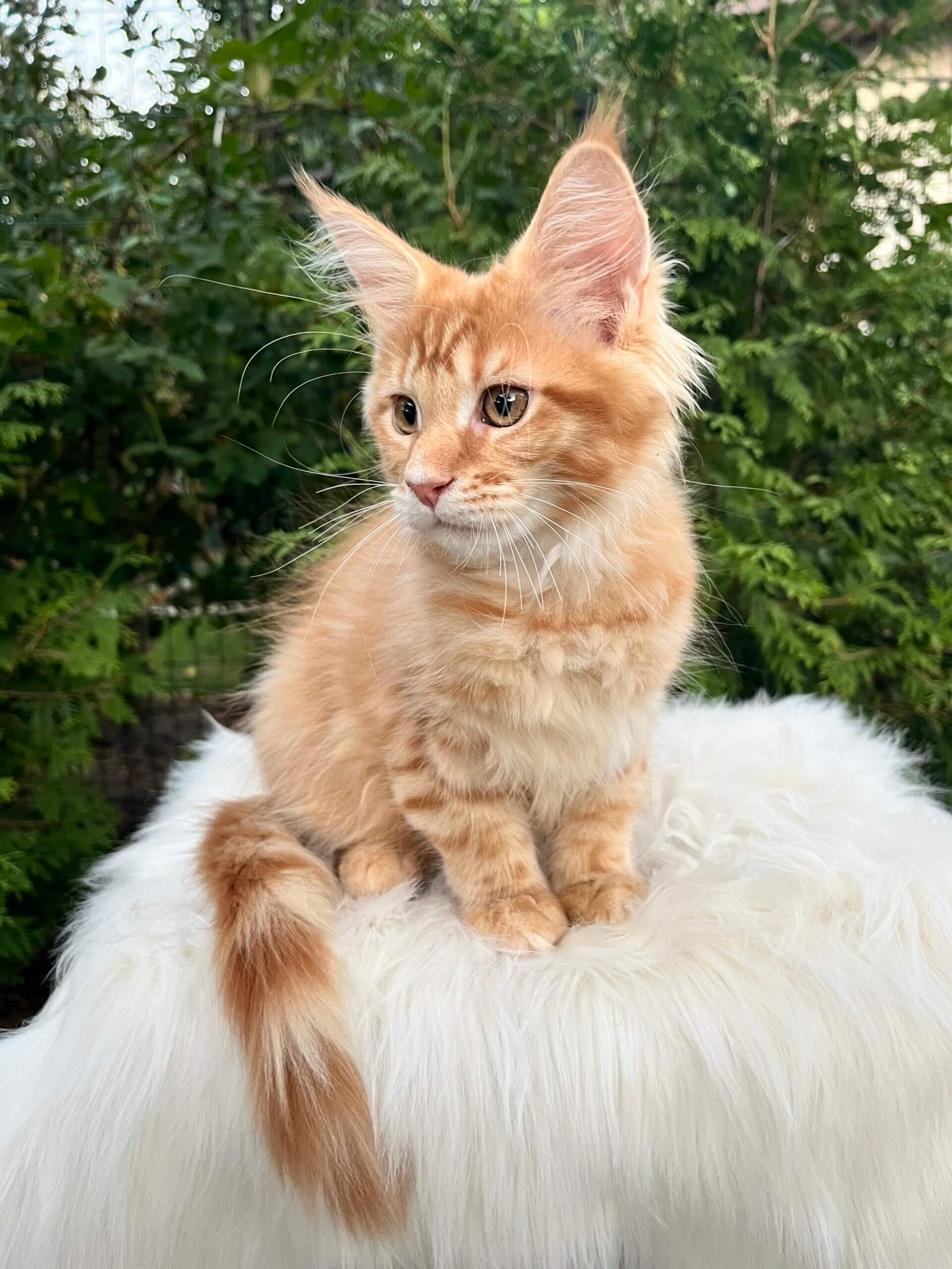 Meet Nixon—a glowing ray of ginger sunshine, waiting to purr his way into your heart. This red tabby Maine Coon boy gazes up at you with soulful yellow eyes, his soft, plush coat shimmering with warmth you’ll want to run your fingers through every morning.