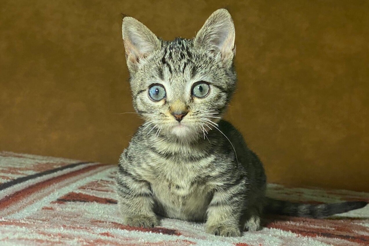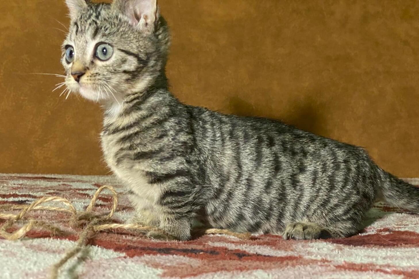 A tiny bundle of wonder with legs as sweet as her gentle purr, Nizana will capture your heart the moment you meet her. This rare black tabby Munchkin girl, graced with hypnotic green-blue eyes, is pure affection in motion—ready to curl up in your arms or greet you with a soft, headbutting hello. Her playful curiosity and dainty, silky paws make every moment feel special, while her champion bloodlines promise not just beauty but remarkable temperament and health.
