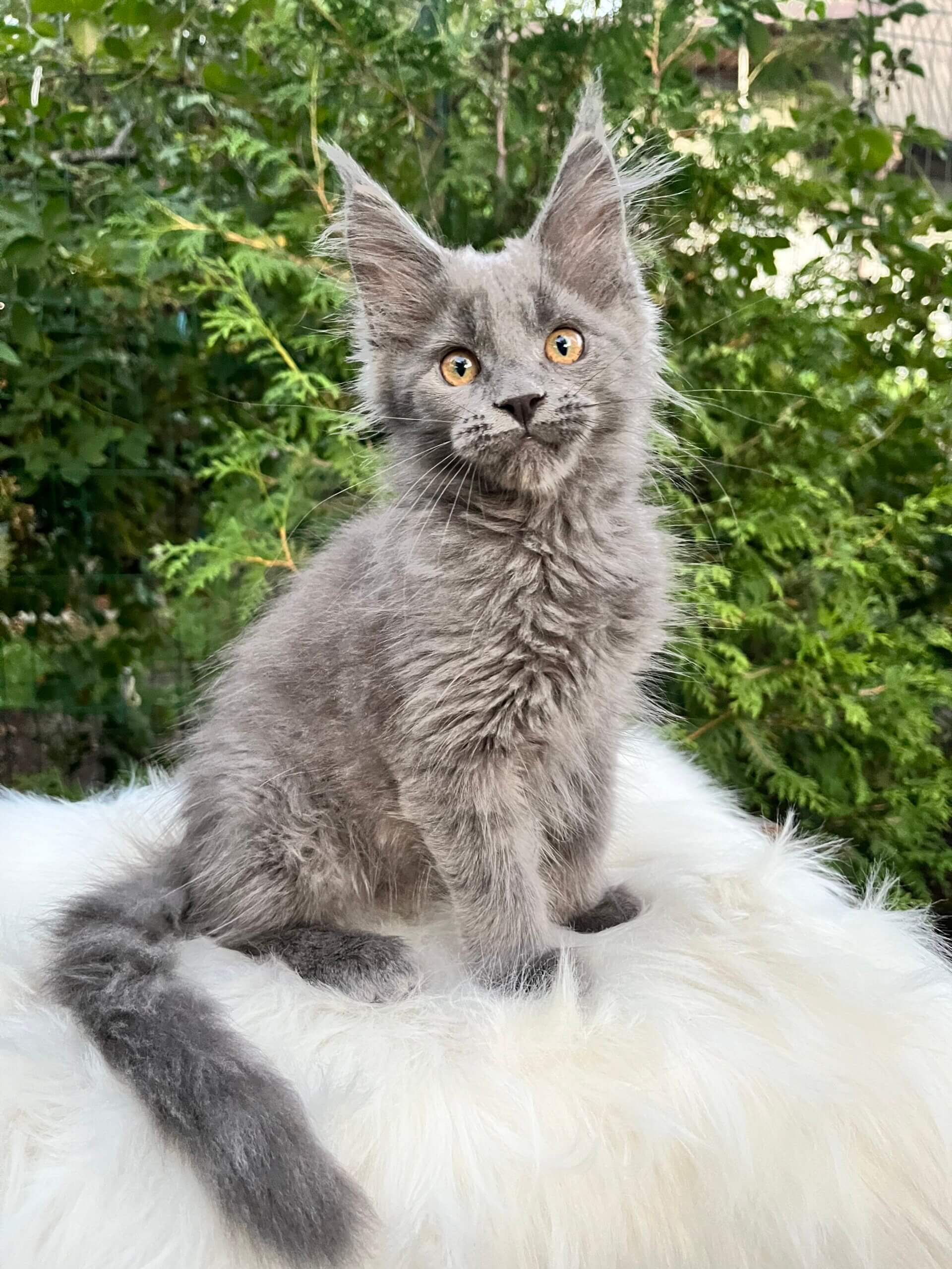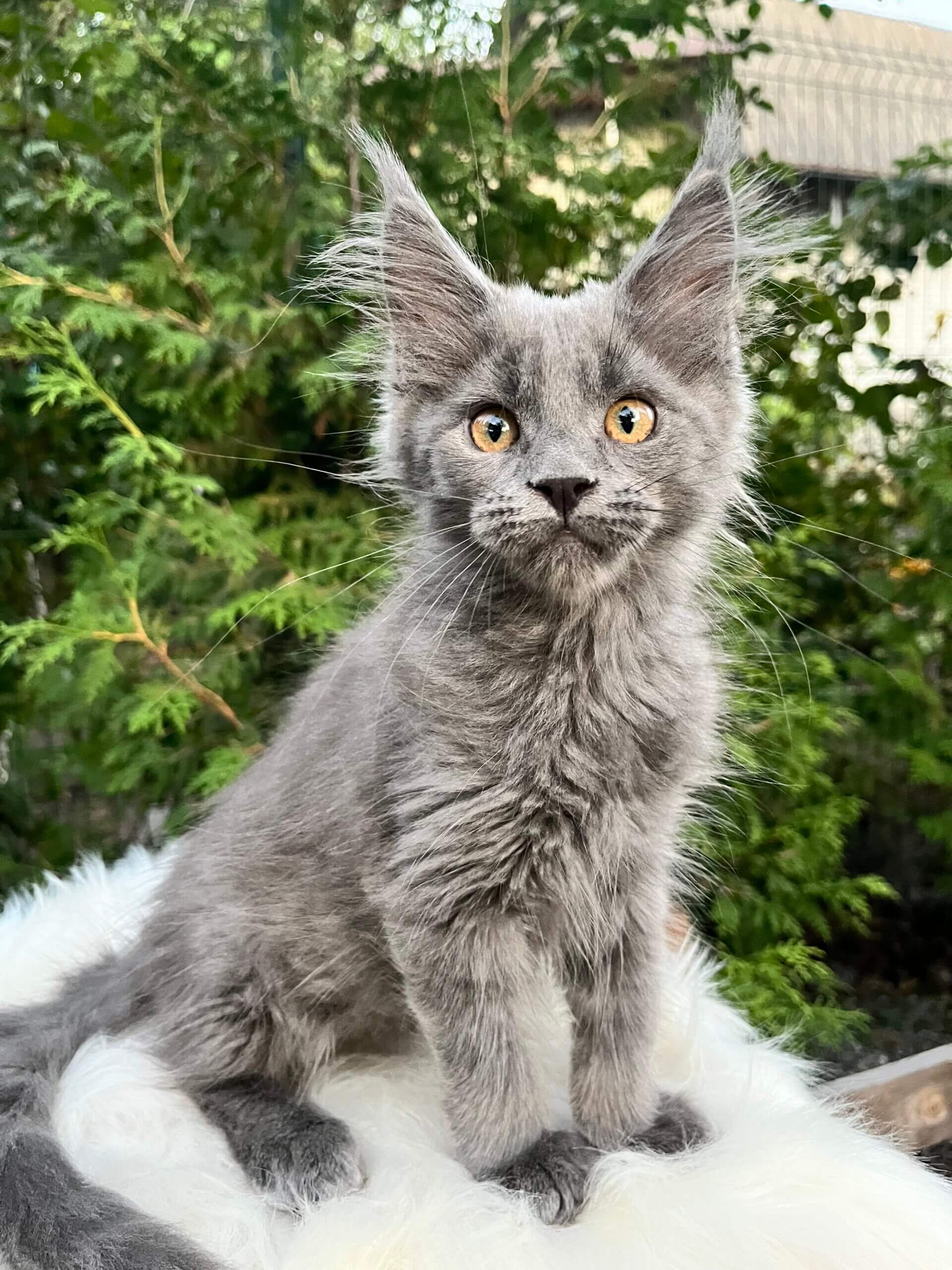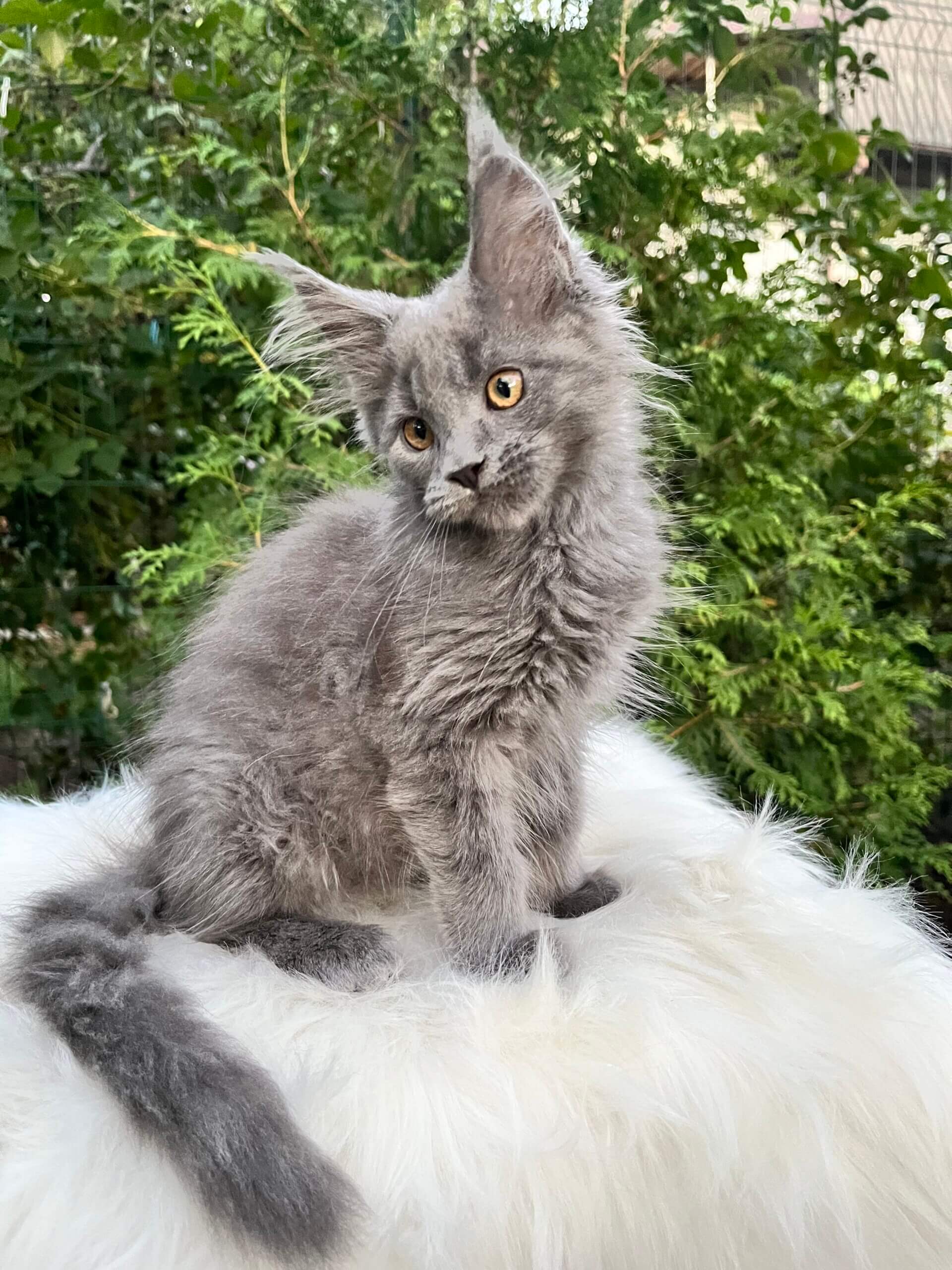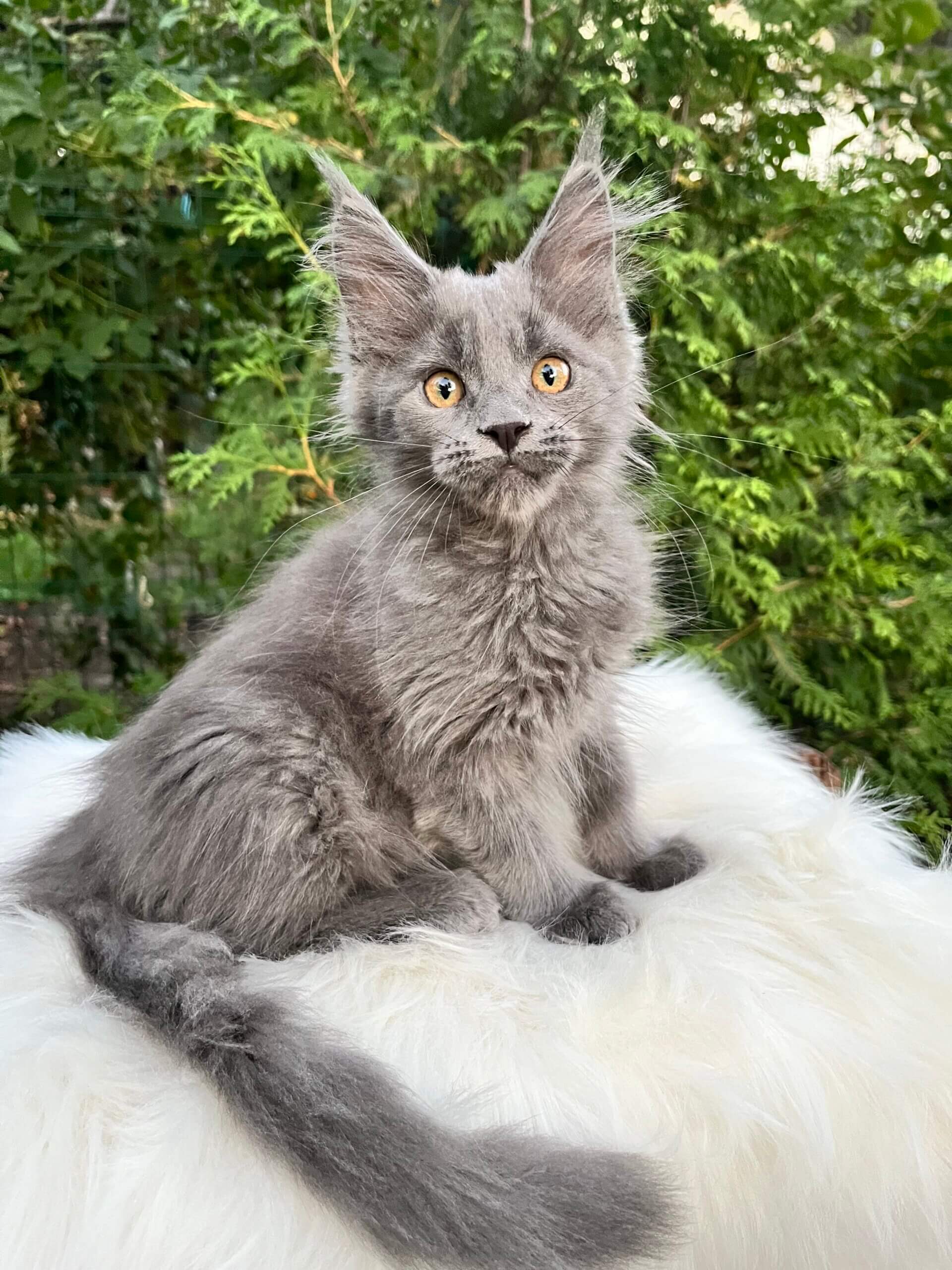 From the moment Norman wraps his plush blue fur around your fingertips and gazes up with those soulful yellow eyes, you’ll feel a gentle warmth in your heart. Born on June 16, 2025, Norman is the essence of Maine Coon majesty—and he’s already dreaming of the loving home that’s meant for him.