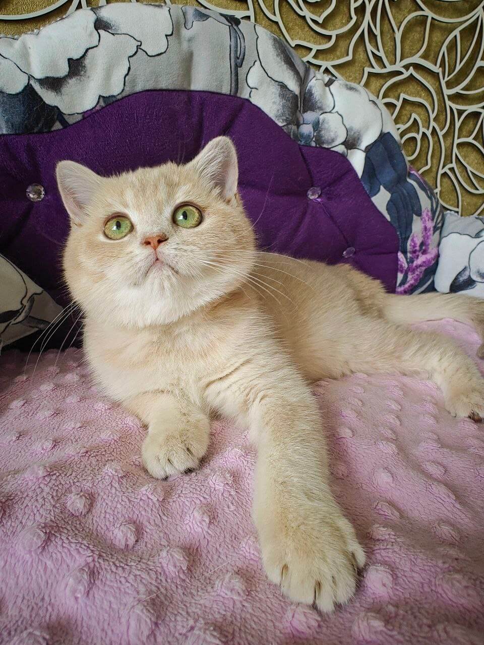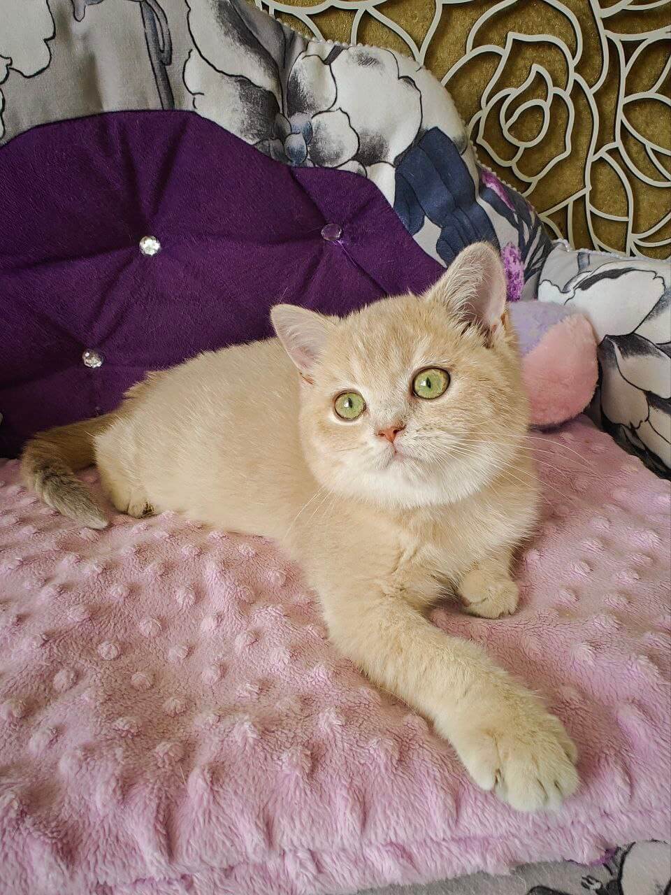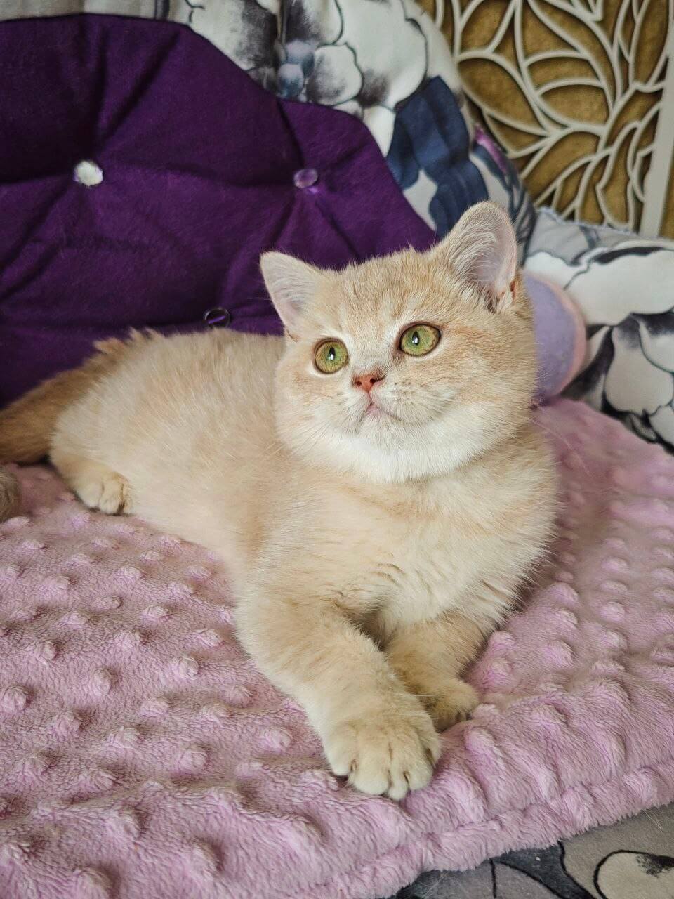 Meet Odri, a stunning female British Shorthair kitten with a show-quality pedigree and champion bloodlines. Her unique lilac golden shaded fur beautifully highlights her enchanting green eyes. Born on June 8, 2025, Odri will be ready to join her new home on October 8, 2025. She is available for reservations on our website and can be picked up at our Wood Dale, USA location or delivered to other states from Chicago.