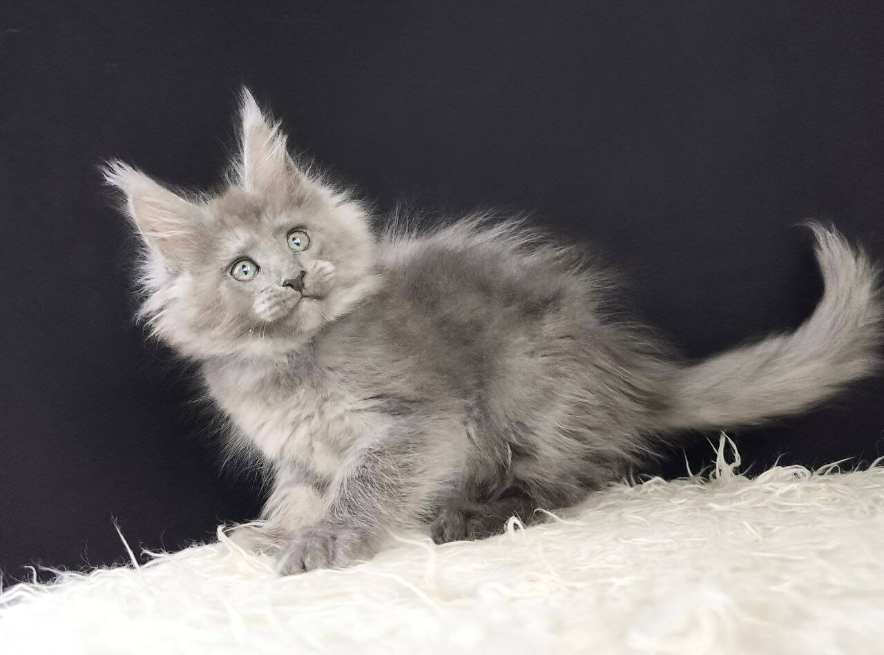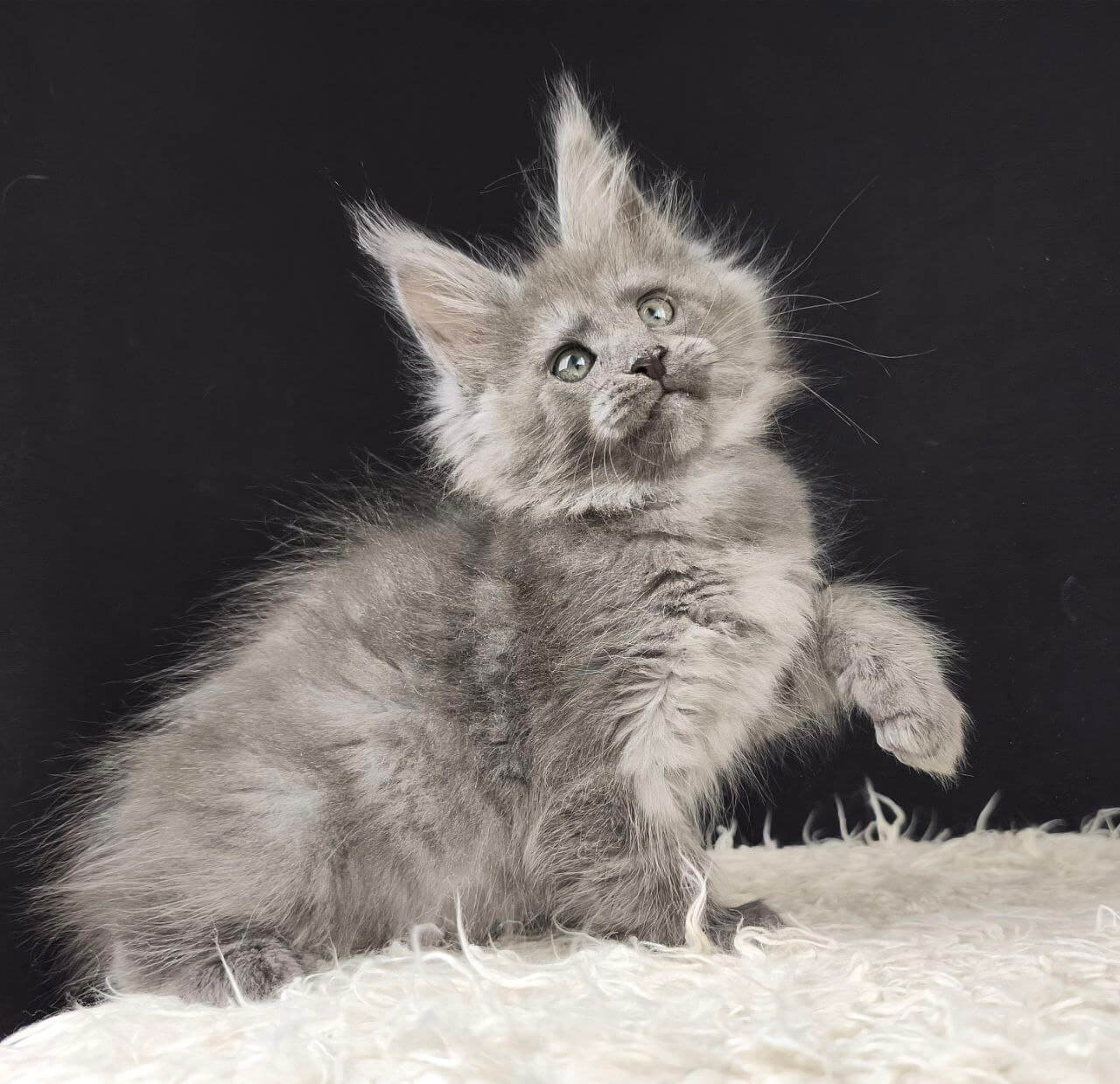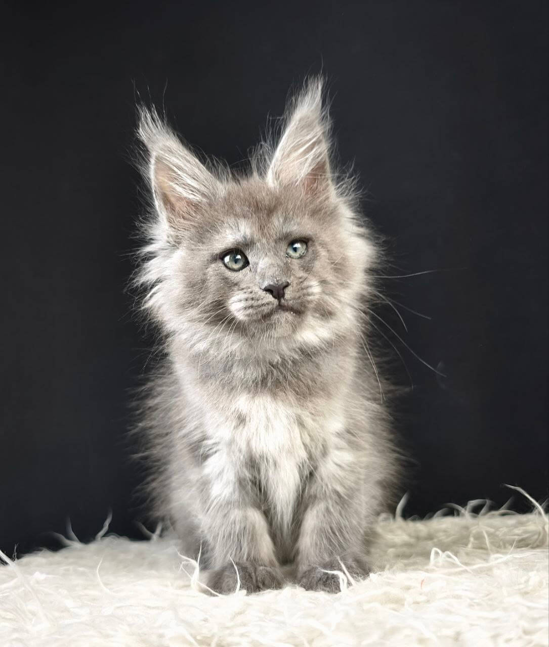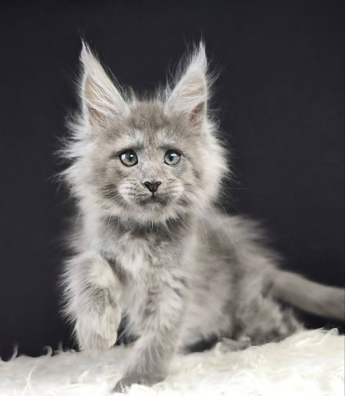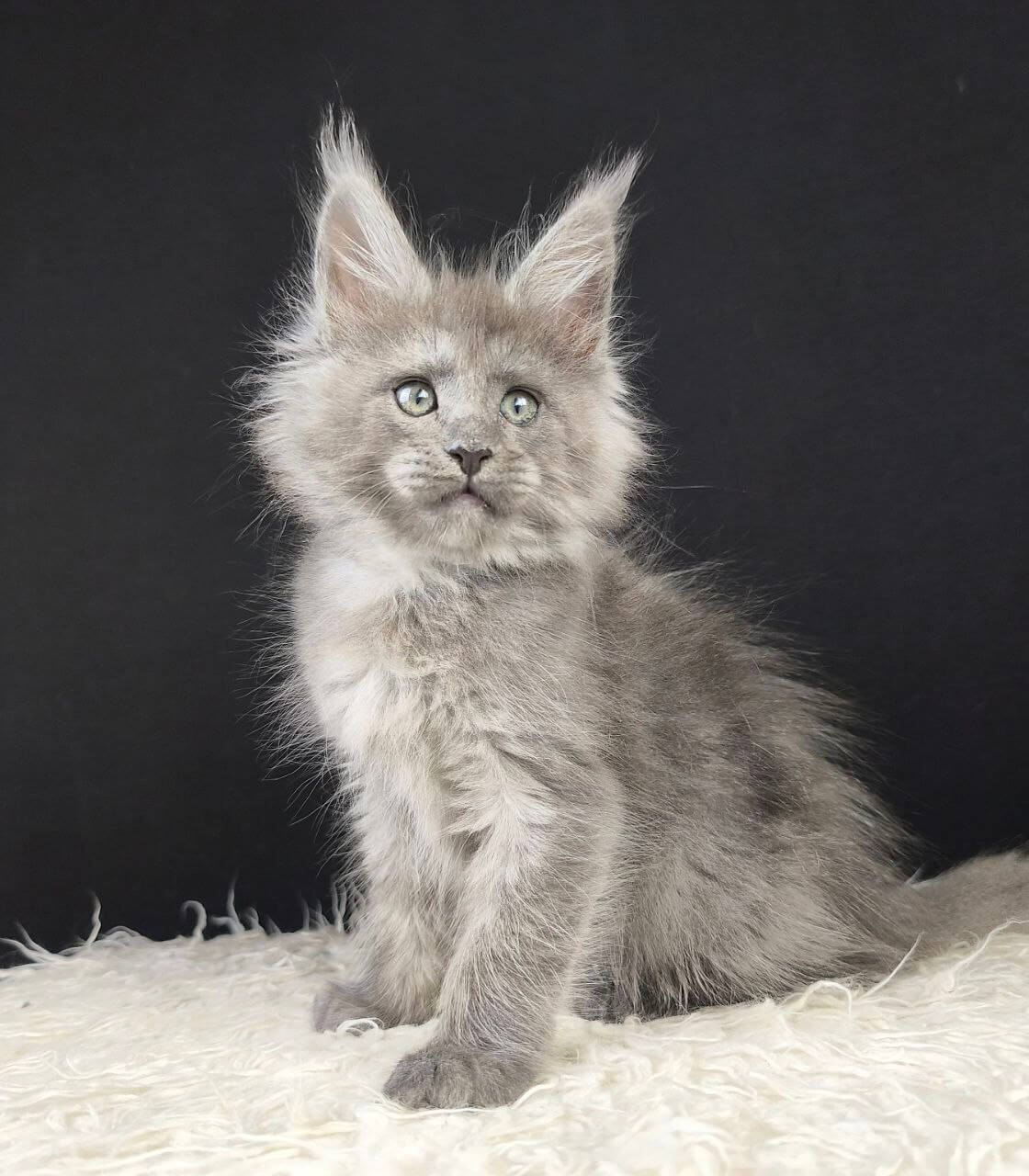 Meet Olga – a breathtaking blue silver Maine Coon princess with soulful yellow eyes and a gentle, loving spirit. From your very first cuddle, you’ll feel her warm purrs melt all your worries away—she’s the perfect companion to fill your home with comfort and joy.