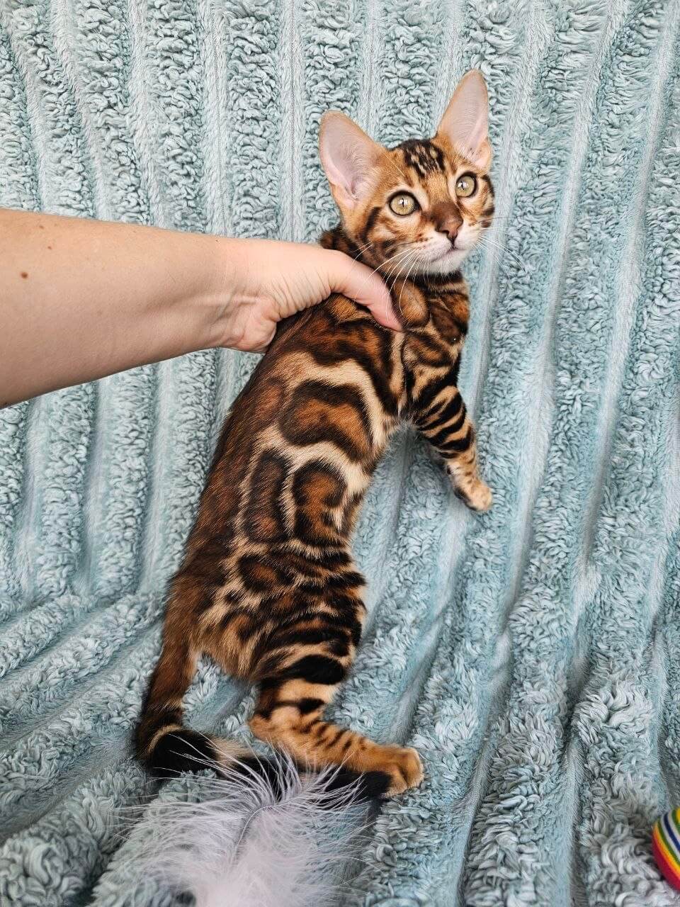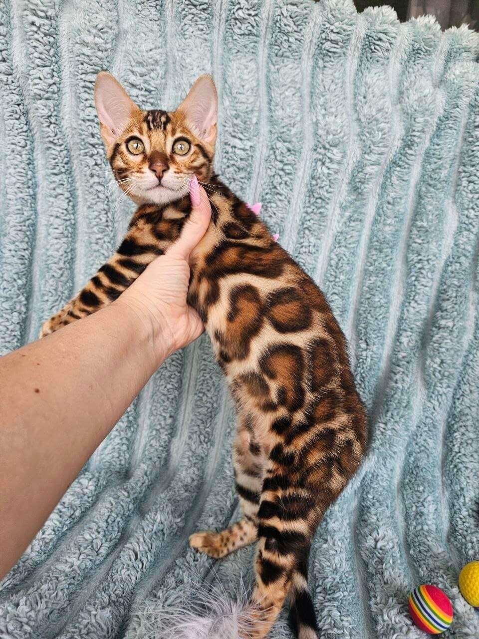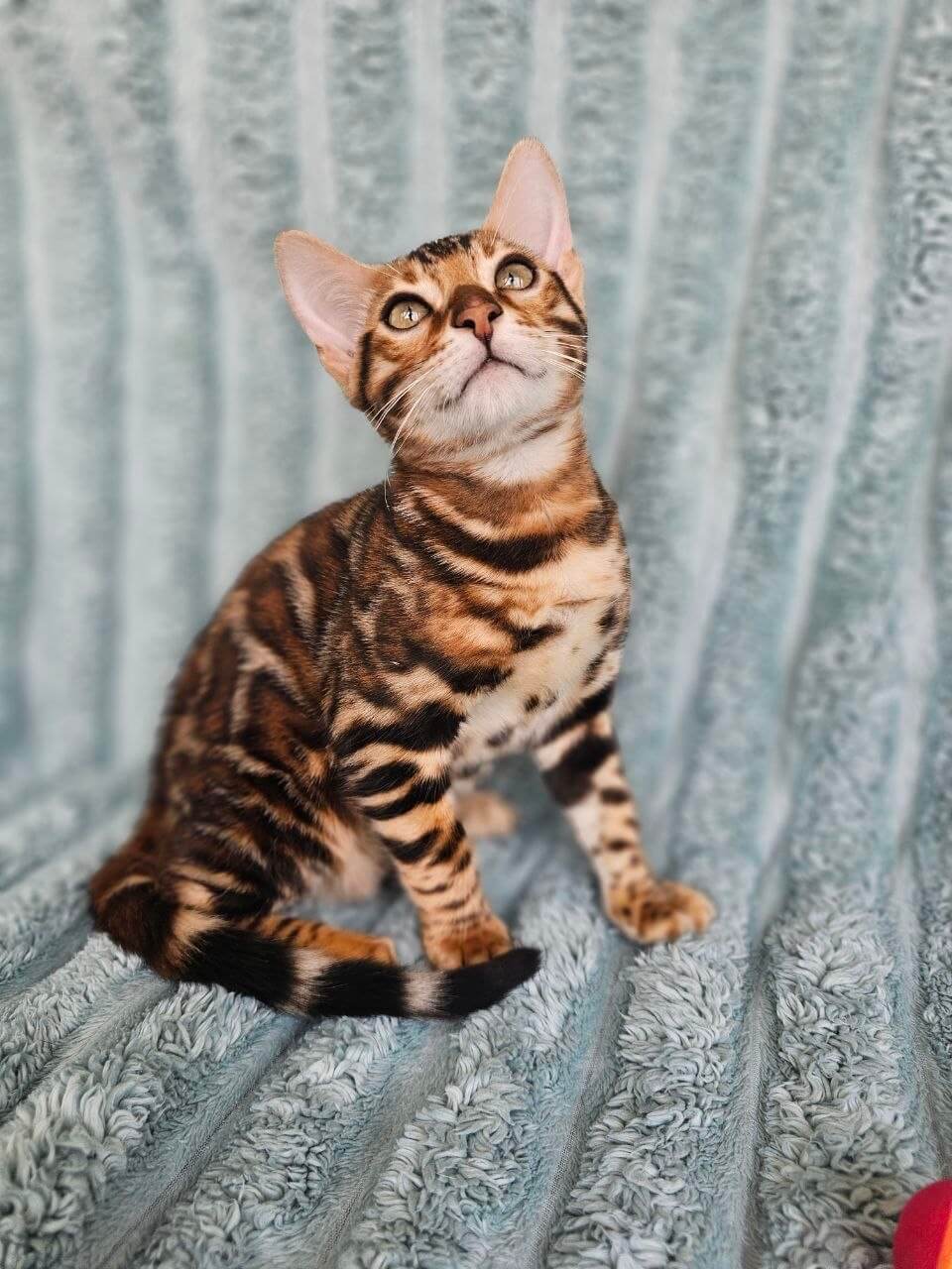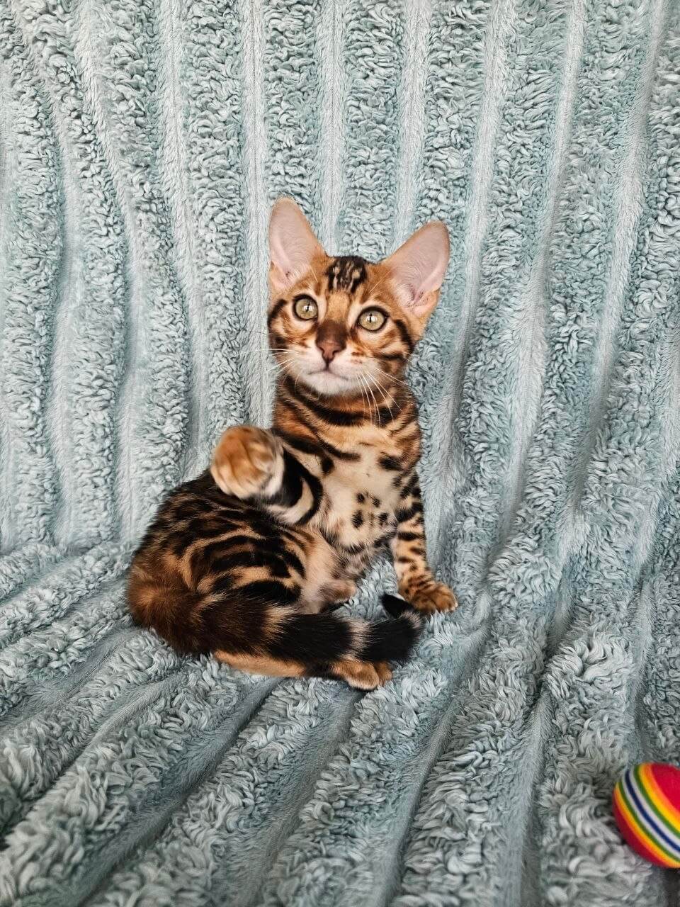 Oliver’s playful spirit shines in every graceful leap and curious peek, but it’s his warm, steady presence that sets him apart. Whether he’s quietly purring in your lap or exploring new corners with sparkling intelligence, you’ll feel an immediate connection to this show-quality kitten. His champion bloodlines shine through in both his stunning coat and charming personality.