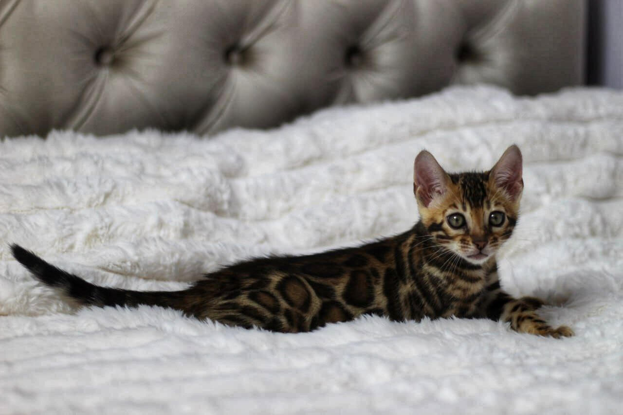 Born of champion bloodlines, Oliver’s health and loving temperament are our top priorities. He’s fully socialized, accustomed to a clean litter (wood pellets or clumping options), and comes with the trust of a registered, pedigree-conditional background. All kittens are raised with daily care, and our supportive team is here for you seven days a week, even after he joins your family.