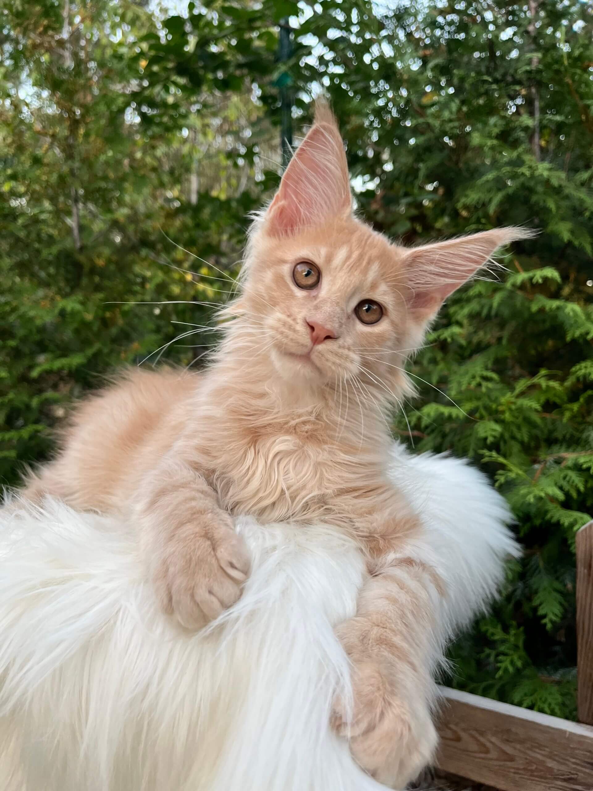 Meet Oliver, a gentle Maine Coon prince whose creamy tabby coat glows like soft golden sunlight—just waiting for your loving touch. With soulful yellow eyes that reflect pure warmth, Oliver’s affectionate spirit shines in every slow blink and gentle purr, inviting you into his cuddle-filled world.