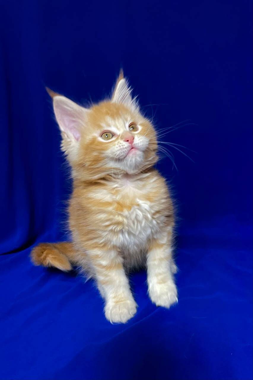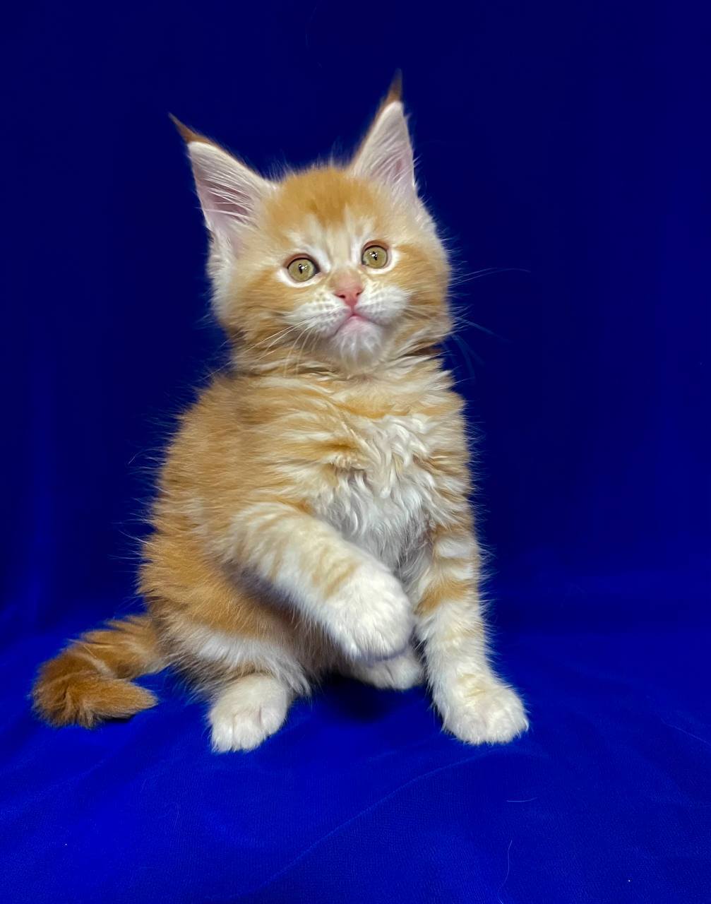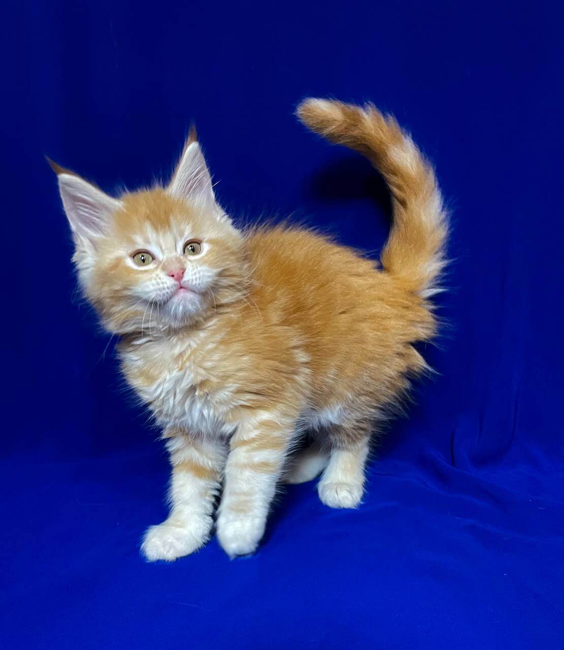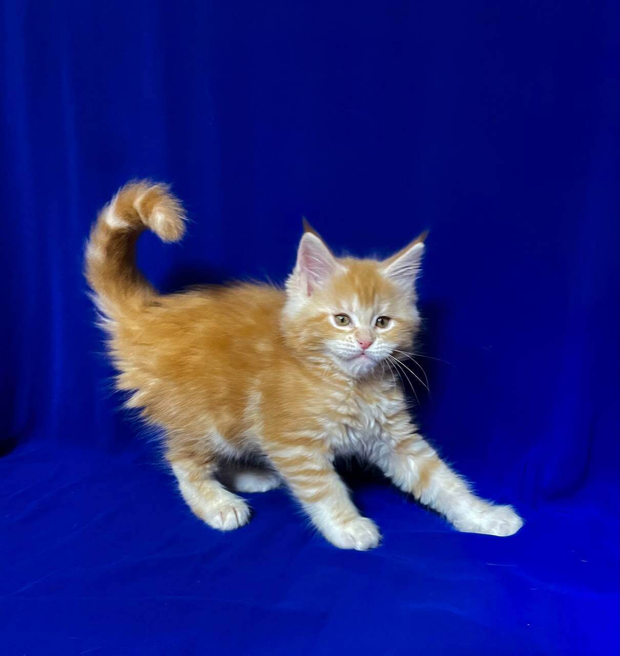 From the very first glance, Olivia touches your heart—a radiant red tabby Maine Coon kitten with sunny yellow eyes and a soft, cloud-like coat. She loves gentle strokes, cozy naps in warm laps, and greets you with purrs that melt stress away. With champion bloodlines, show-quality looks, and a playful, affectionate spirit, Olivia is as cuddly as she is striking.