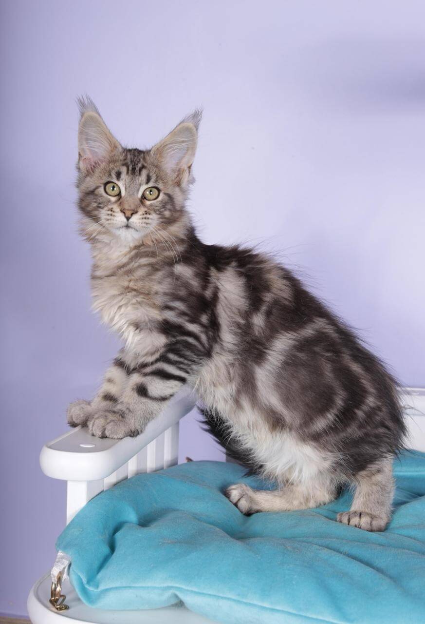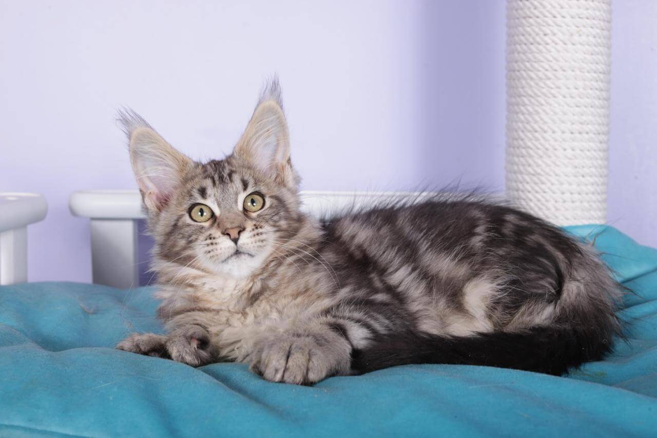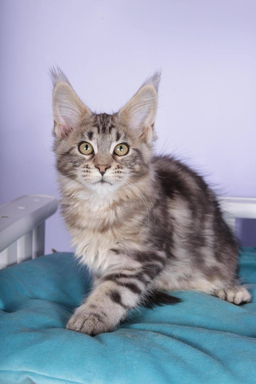This darling Maine Coon girl, born July 27, 2025, is a rare beauty: shimmering black silver tabby swirls, mesmerizing yellow eyes, and adorable poly (extra-toed) paws made for gentle kneading. Olympia isn’t just breathtaking to see—she’s a cuddle expert, already purring for affection and exploring every nook with patient, playful grace.