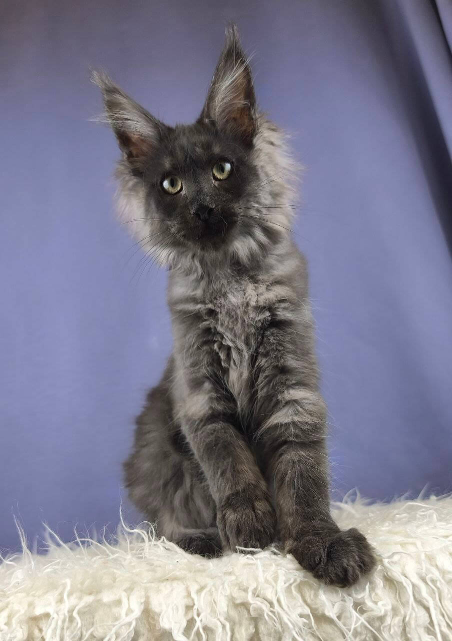 From the moment Omega looks up at you with luminous yellow eyes, you’ll feel pure tenderness flutter in your heart. This Black Silver beauty is all grace and gentle sweetness, with a plush, moonlit coat and a purr that’s soft as silk against your cheek.