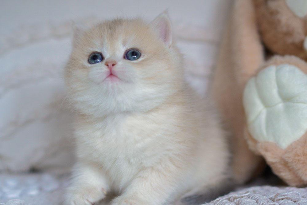 Onix is a Blue Golden Shaded British Shorthair kitten whose shimmering green eyes follow you with quiet curiosity. His plush, silken coat shifts in sunlight from champagne gold to stormy blue, and there’s a surprising heft to his compact frame when you pick him up. Every purr vibrates through you, promising calm and company.