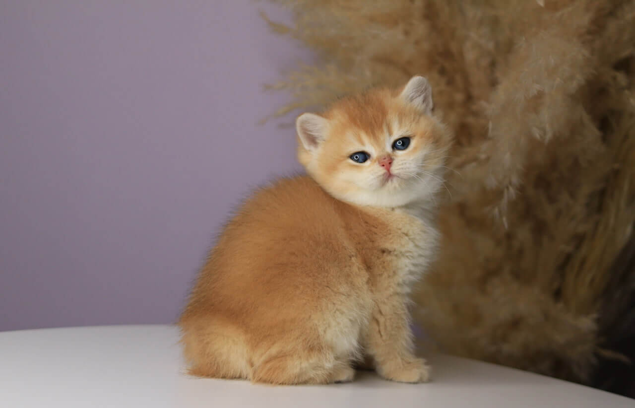 When you first meet Orhidea, the Black Golden Shell British Shorthair kitten, her opulent fur feels like the softest cashmere beneath your fingertips. Swirls of black-tipped gold shimmer on her compact body, and her luminous green eyes hold your gaze with a surprisingly soulful warmth. Orhidea’s quiet presence invites you in, soothing and mysterious all at once.