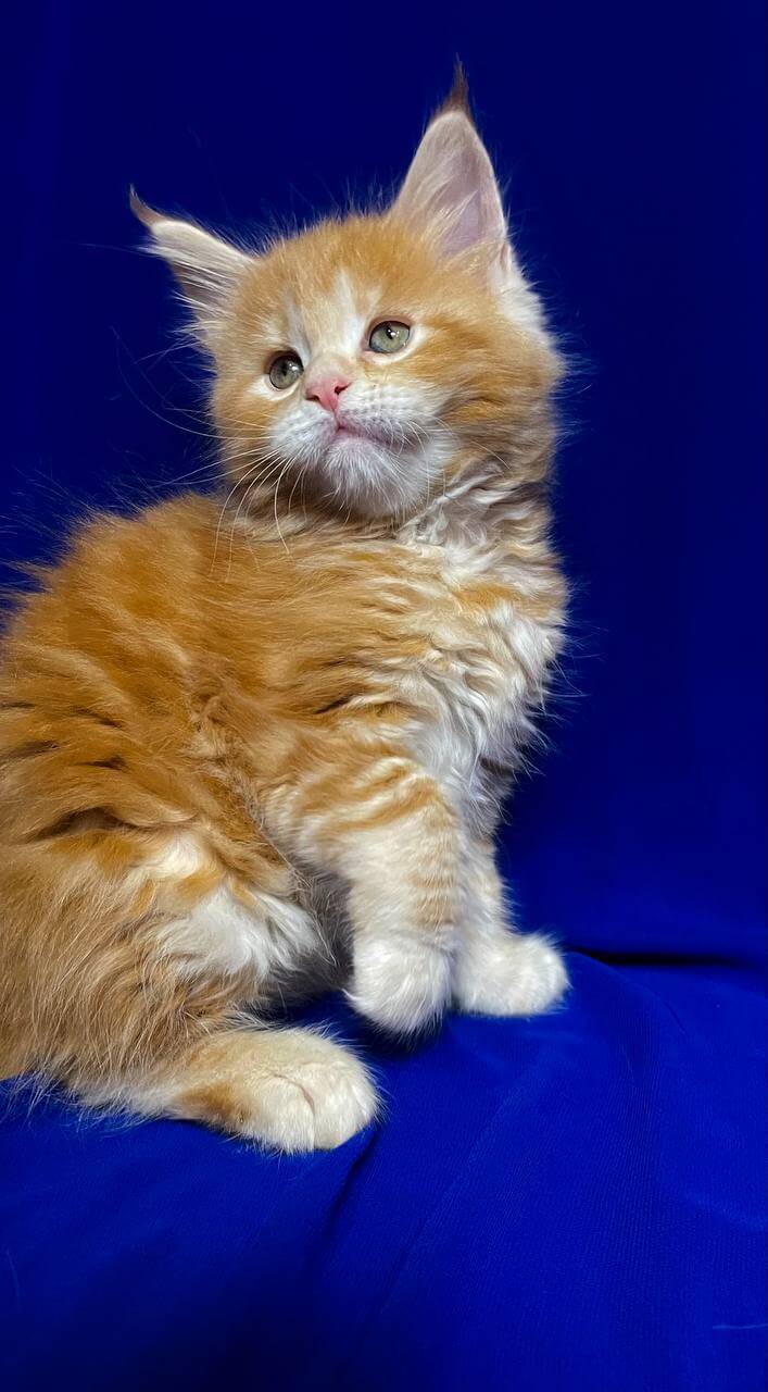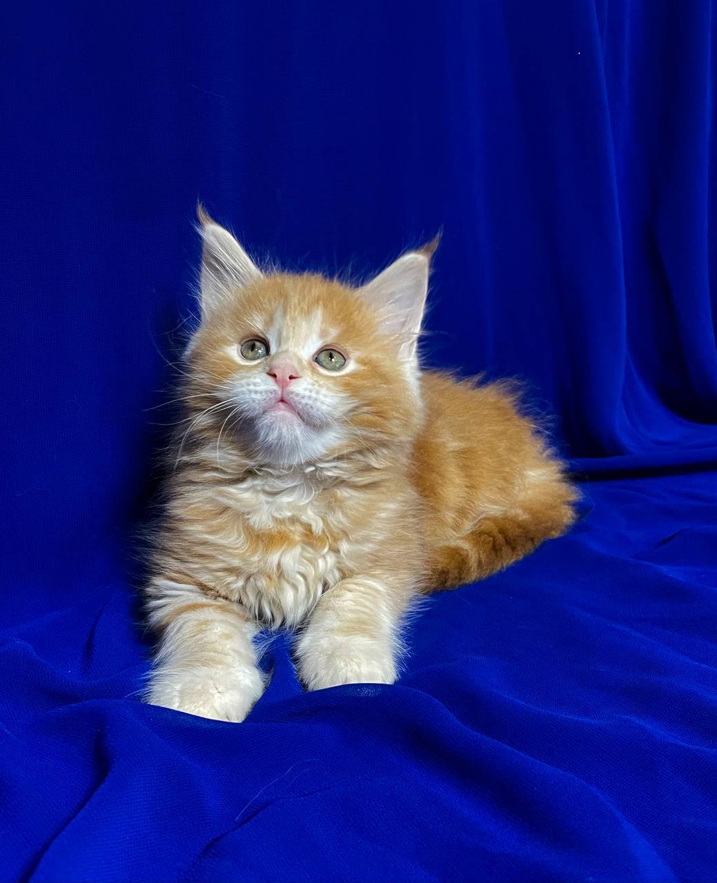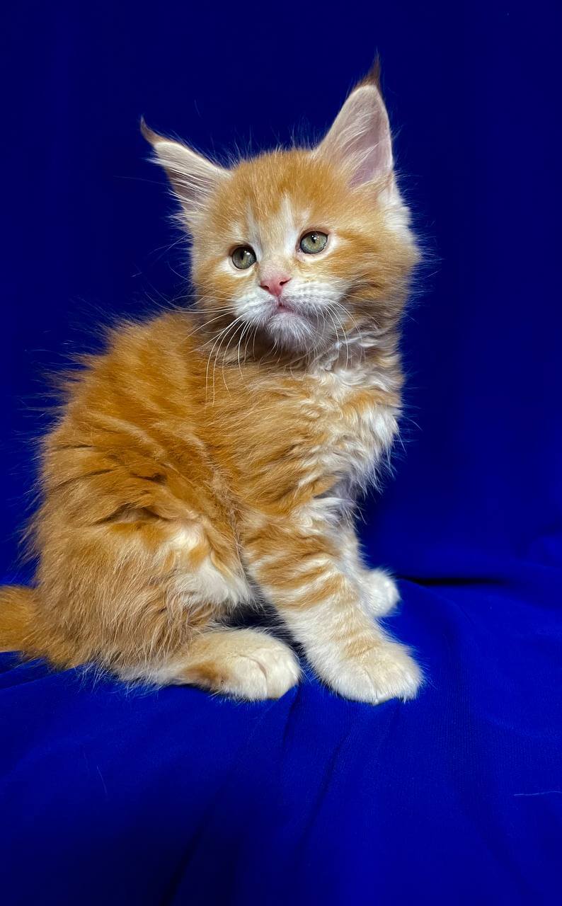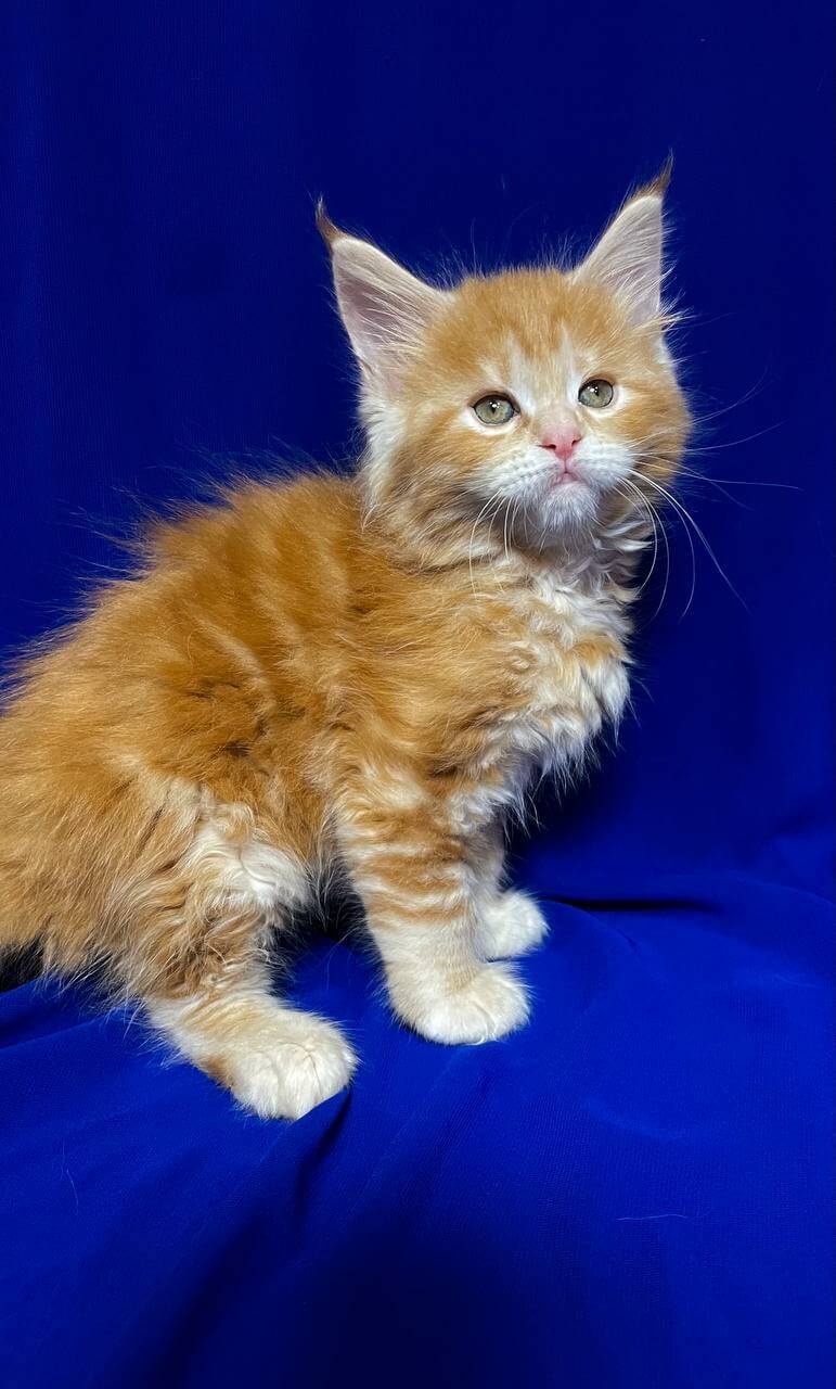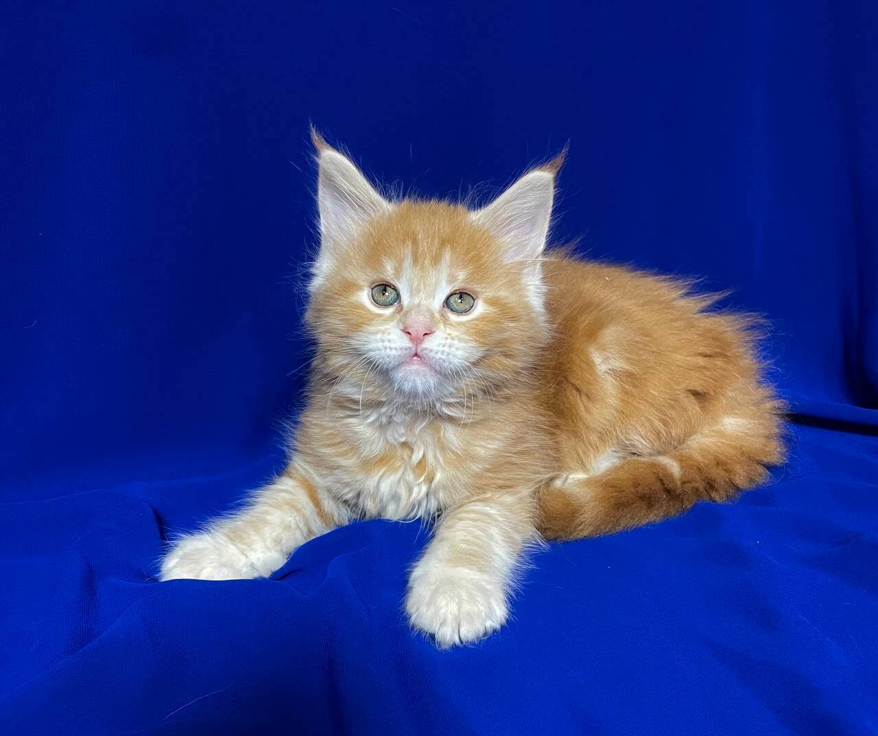 From the very first purr, Orianna will steal your heart. Imagine warm golden fur, a cascade of red tabby swirls, and wise, yellow eyes—Orianna is pure Maine Coon enchantment, ready to fill your arms and your home with love.