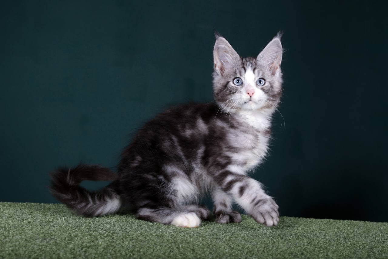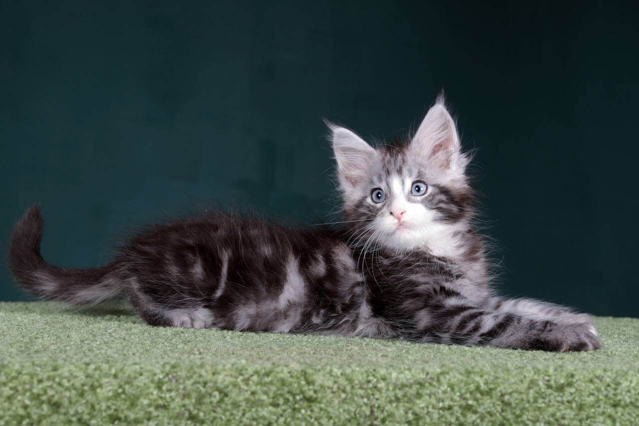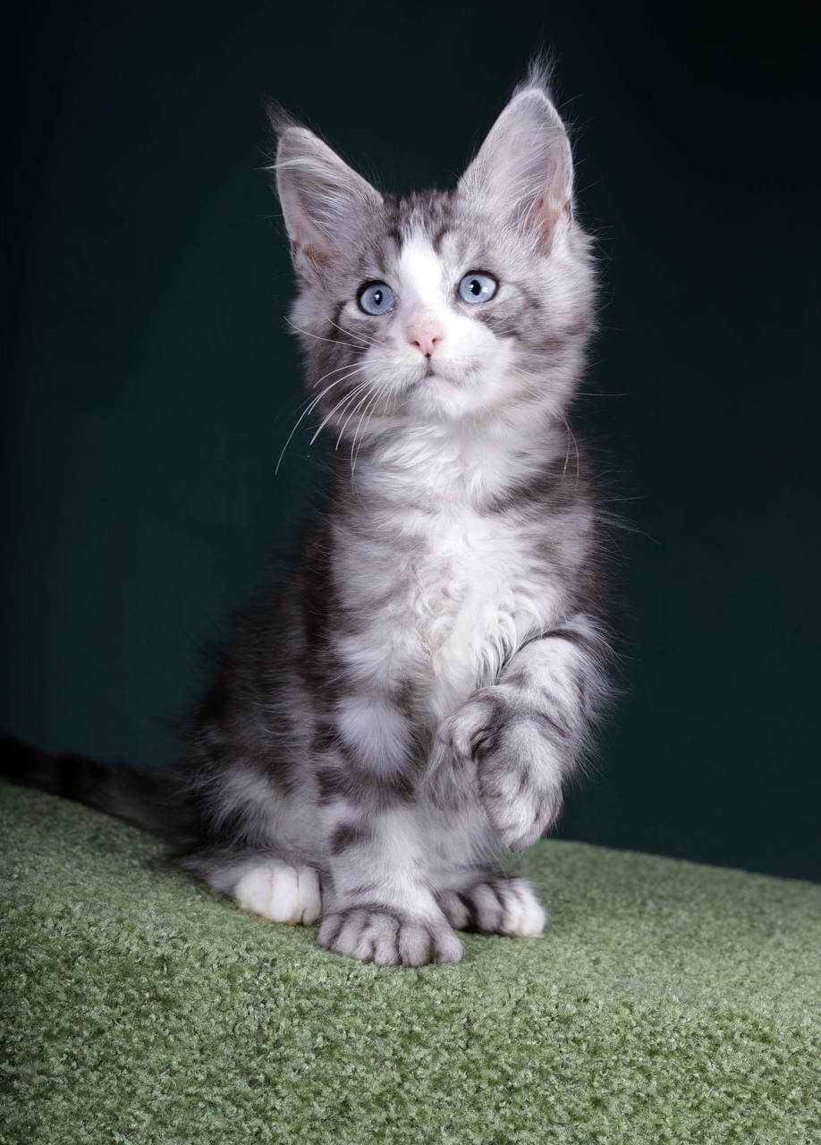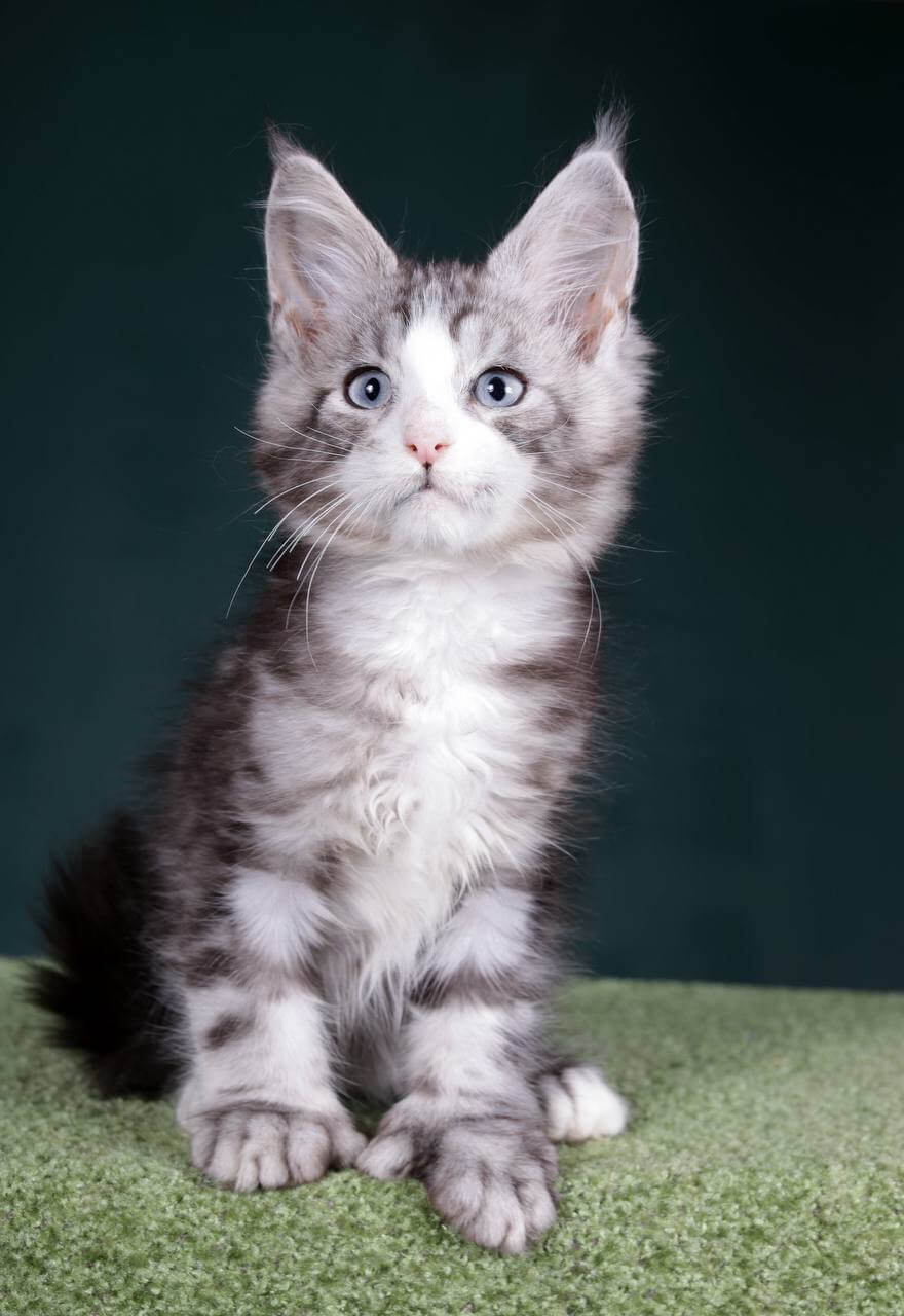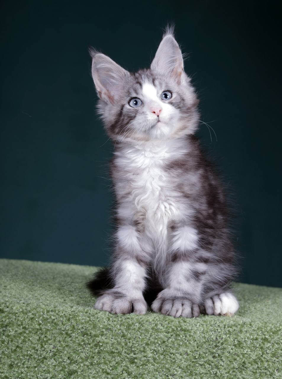 Meet Osman, a stunning male Maine Coon kitten with show-quality potential. This handsome little guy boasts a striking black silver tabby blotched coat and mesmerizing blue eyes. Born on July 27, 2025, Osman comes from champion bloodlines and is registered, ready to charm his way into your heart. He’ll be ready to leave the breeder’s home on November 27, 2025, just in time to become your holiday companion.