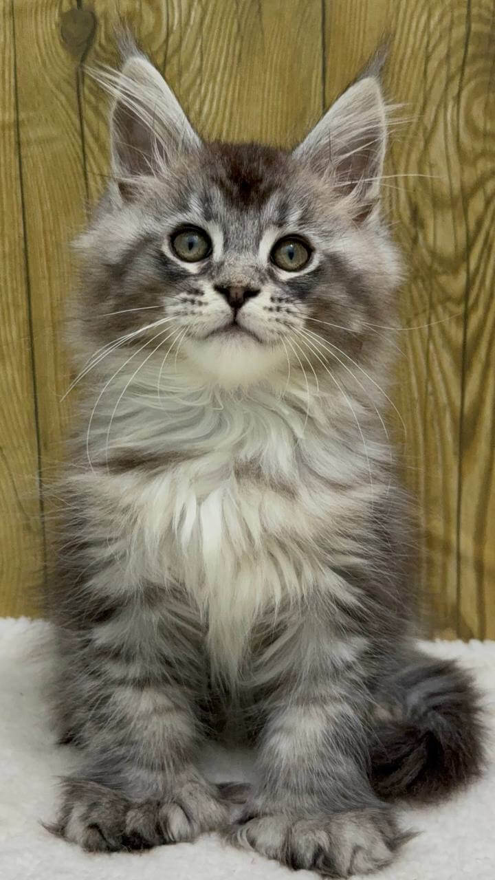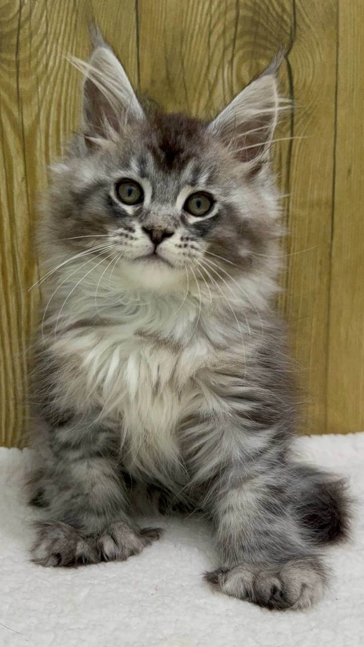 Meet Oven—a magical Maine Coon kitten whose silver-black stripes shimmer with every purr and playful step. From the moment you hold him in your arms, his warm, gentle presence and sun-bright yellow eyes fill your heart with a sense of home and happiness.