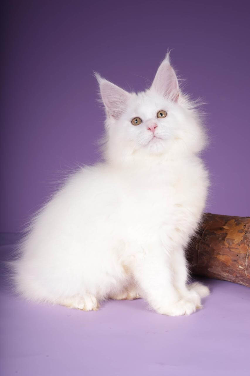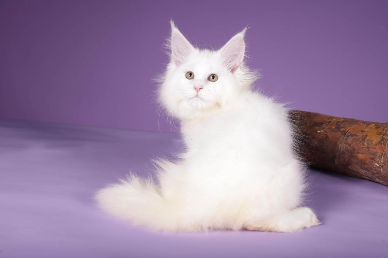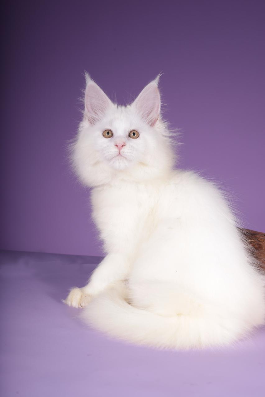 Paloma is a rare beauty with champion Maine Coon bloodlines, but it’s her kind, easygoing spirit that truly sets her apart. Curious, gentle, and endlessly affectionate, this show-quality girl adores cozy snuggles and will happily curl up in your arms for hours, purring her sweet melody just for you. Her plush coat is pure white velvet, perfect for countless soft cuddles.
