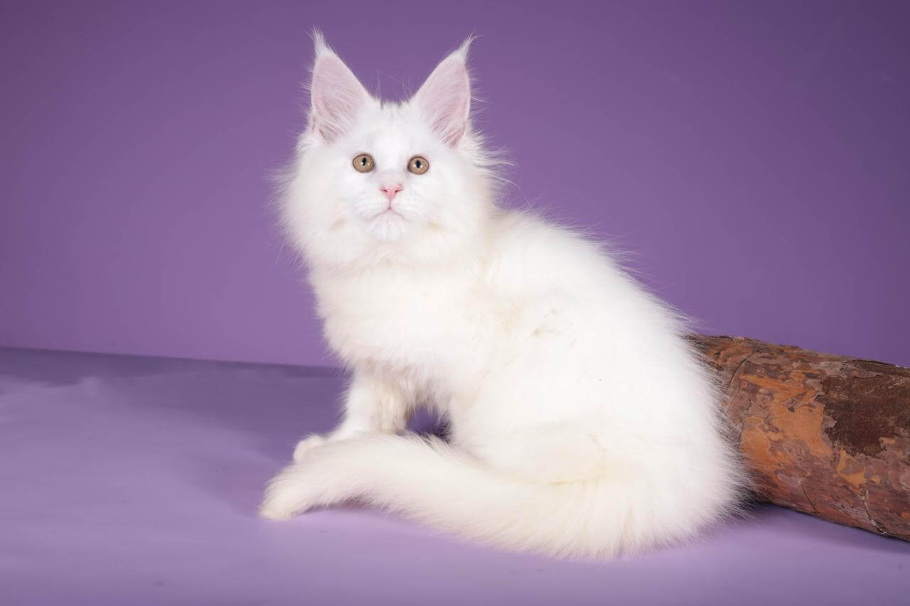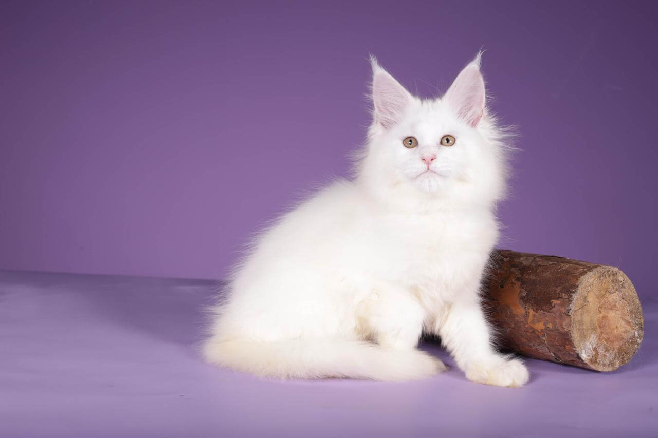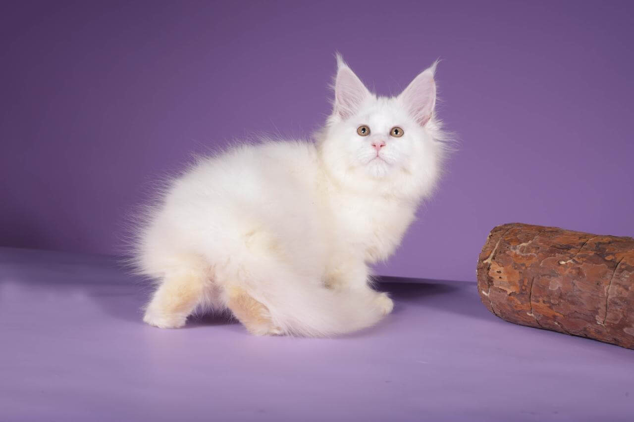 Paloma is a rare beauty with champion Maine Coon bloodlines, but it’s her kind, easygoing spirit that truly sets her apart. Curious, gentle, and endlessly affectionate, this show-quality girl adores cozy snuggles and will happily curl up in your arms for hours, purring her sweet melody just for you. Her plush coat is pure white velvet, perfect for countless soft cuddles.