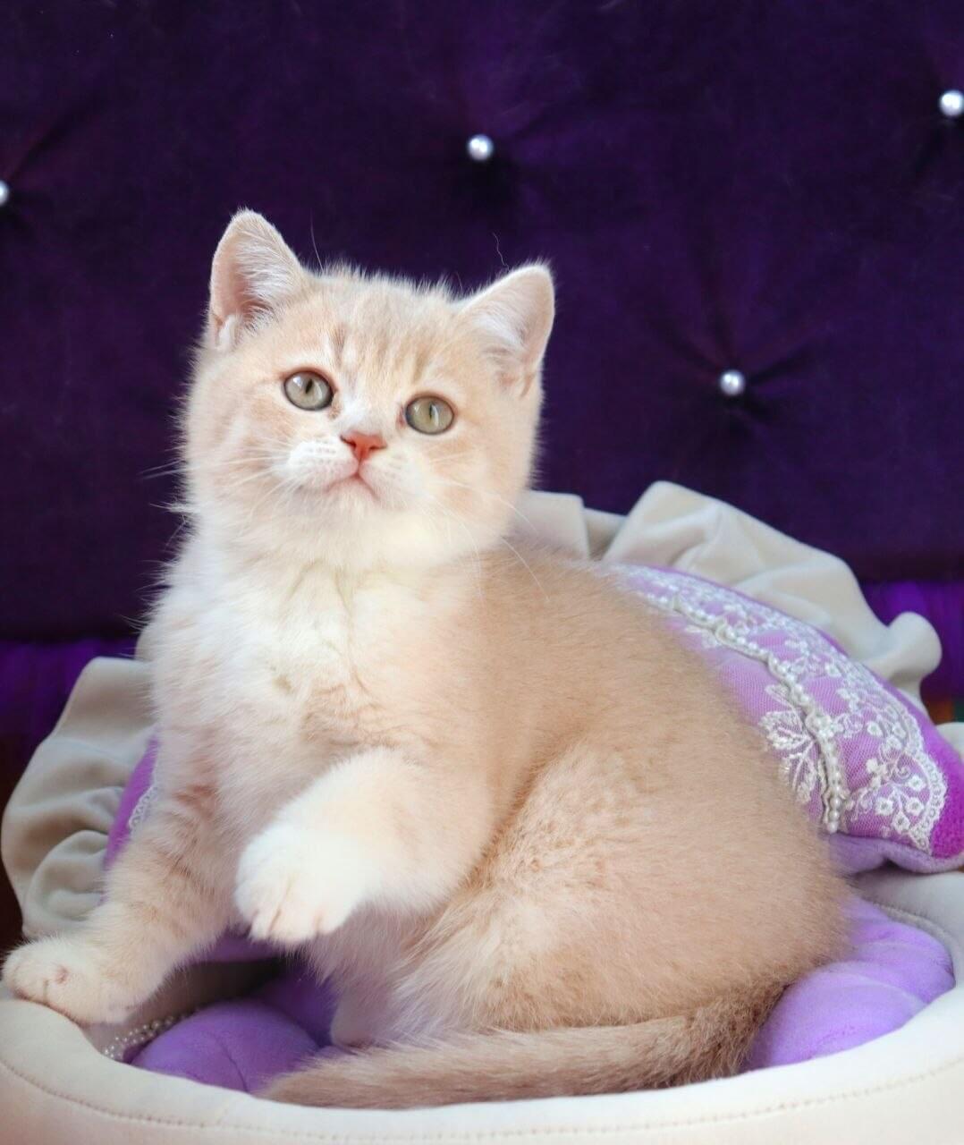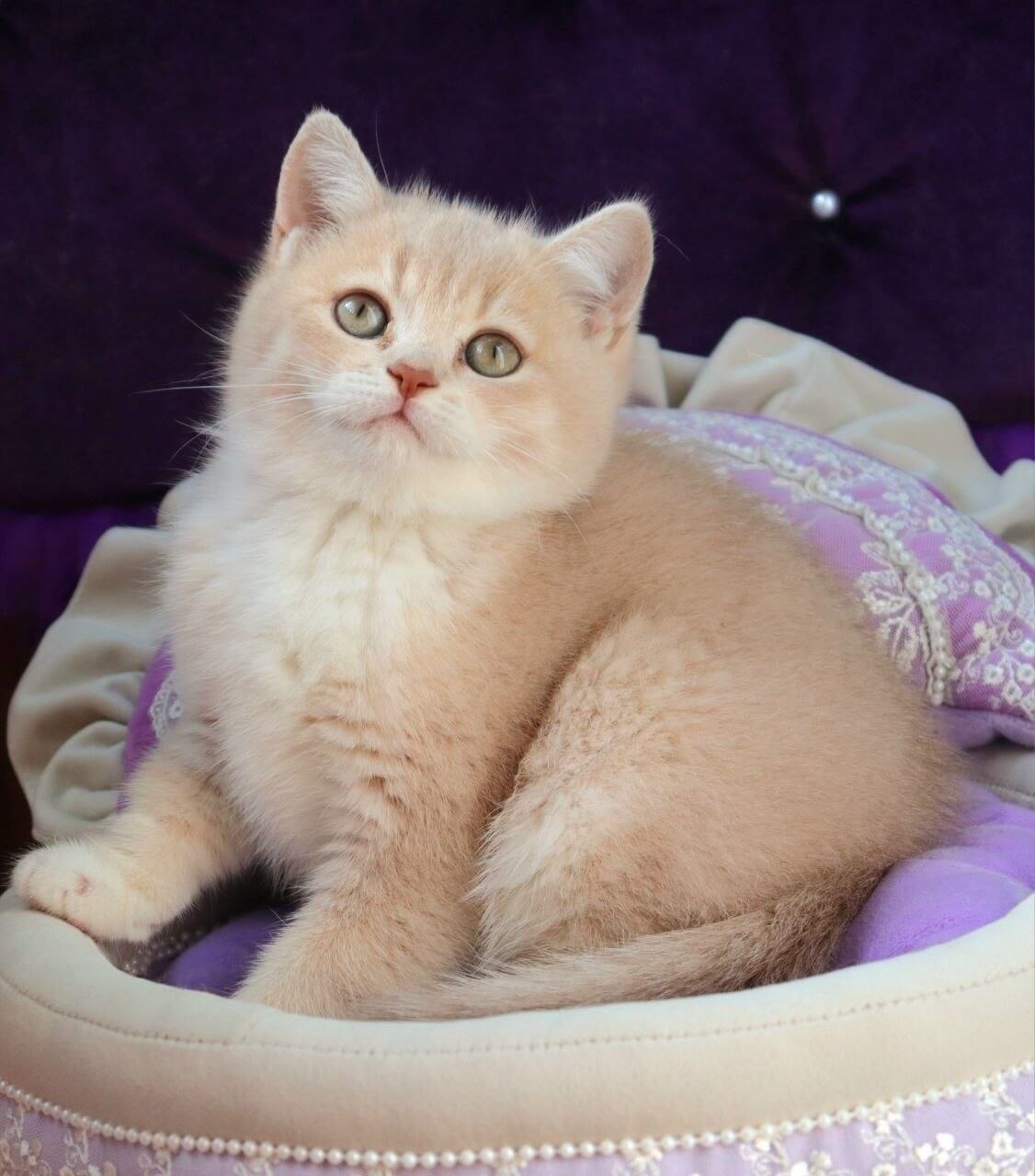 Run your hand along Pamella’s fawn British Shorthair kitten coat and you’ll feel the gentle, plush softness that defines rare pedigree fur. Her coloring is a delicate blend of creamy warm taupe, set off beautifully by those alert, cool green eyes that meet your gaze with soulful curiosity. Pamella’s calm presence will grace your home from the very first day.