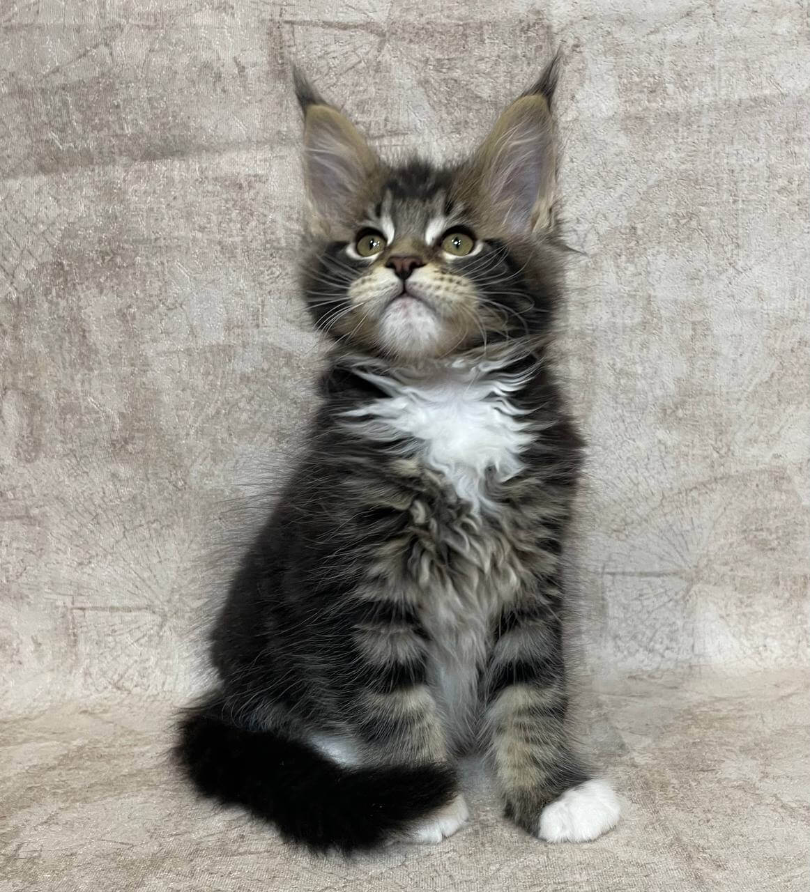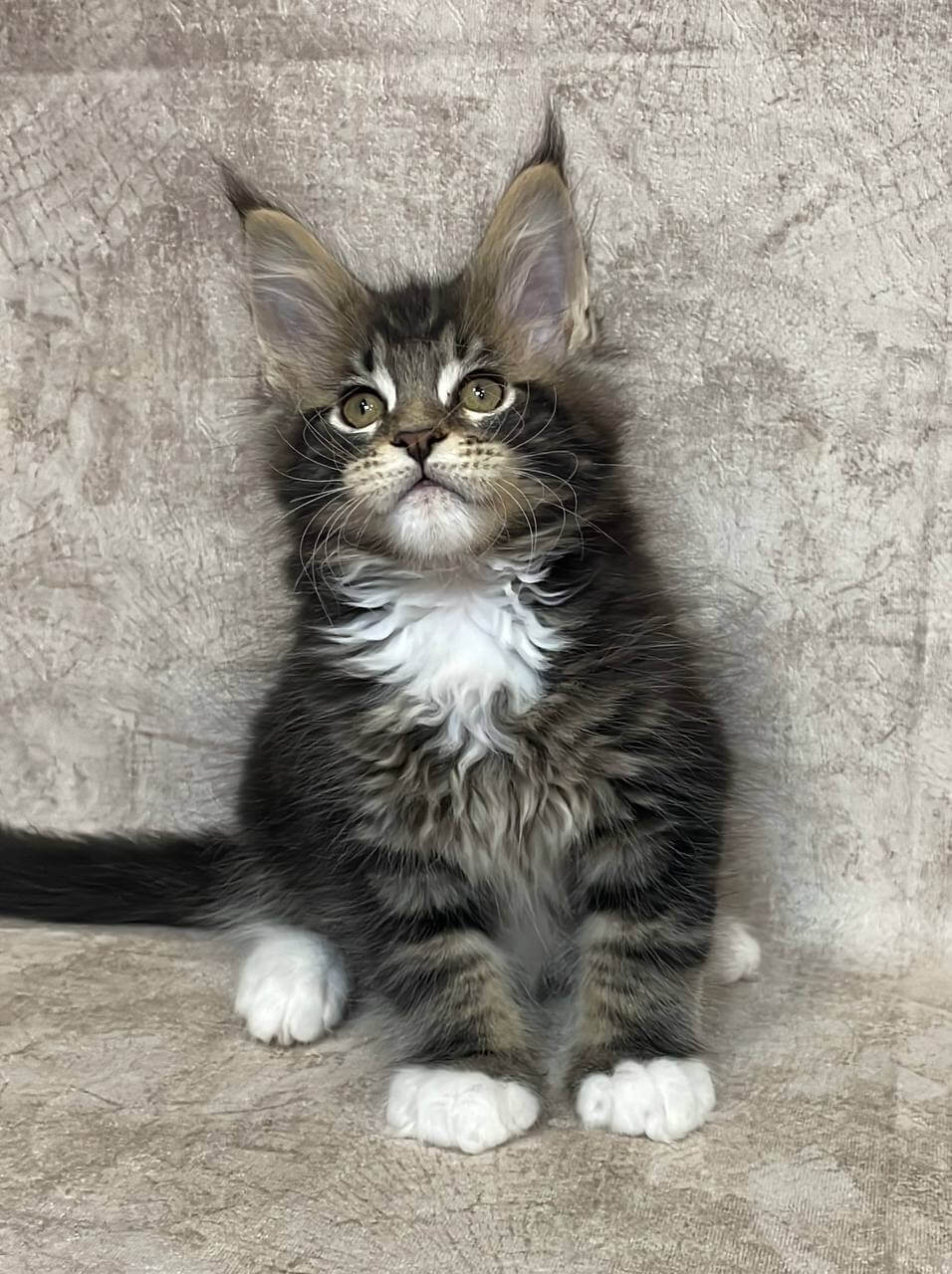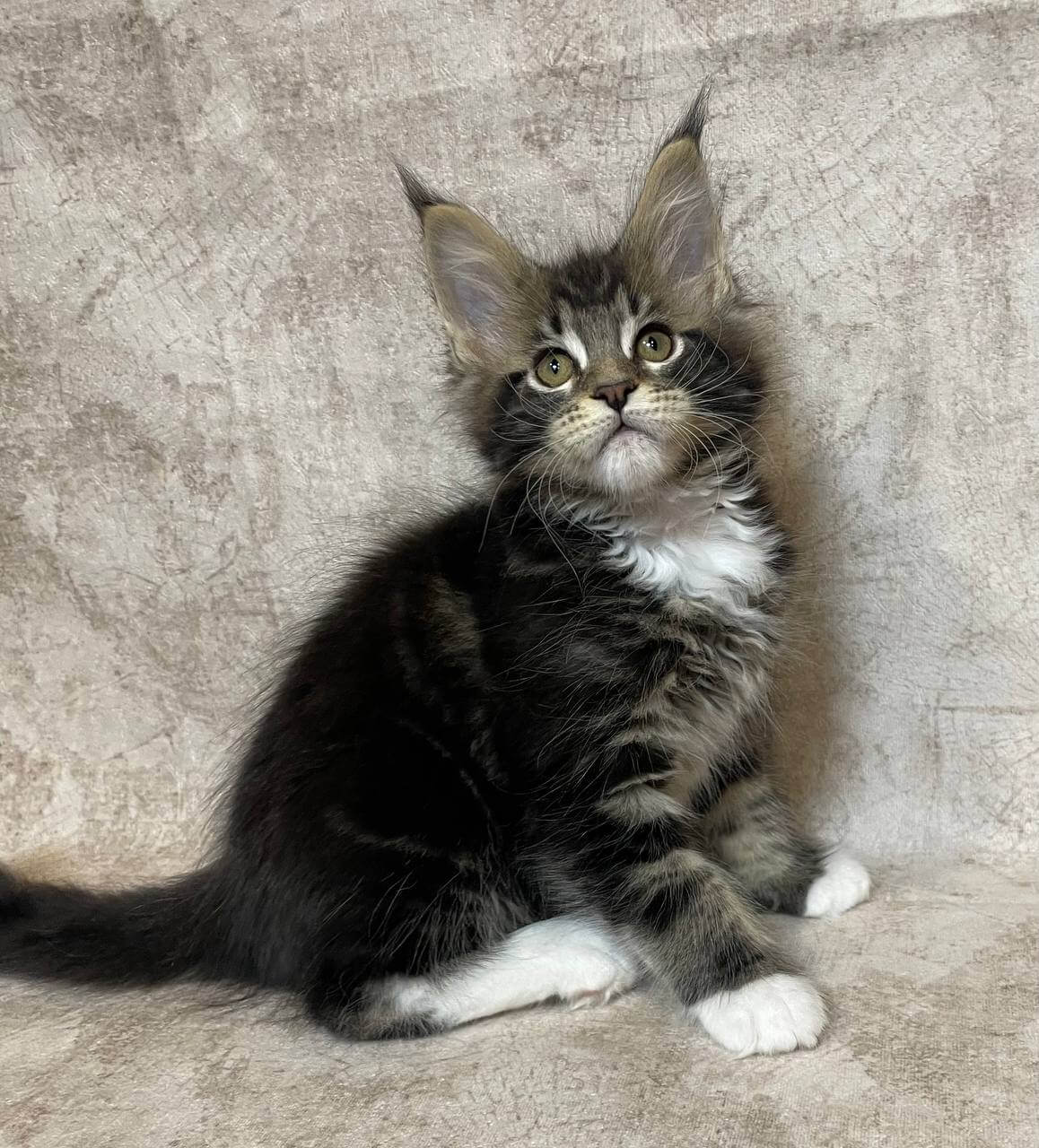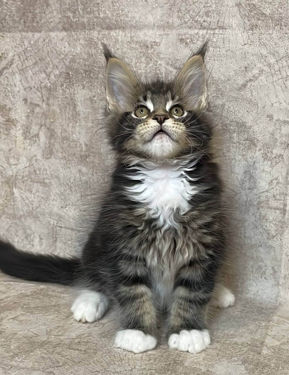 Meet Patrick, the kitten your heart has been waiting for. From the first moment, his plush black tabby fur with snowy white accents and luminous yellow eyes will invite you to reach out—just to feel his gentle warmth nestled in your hands.