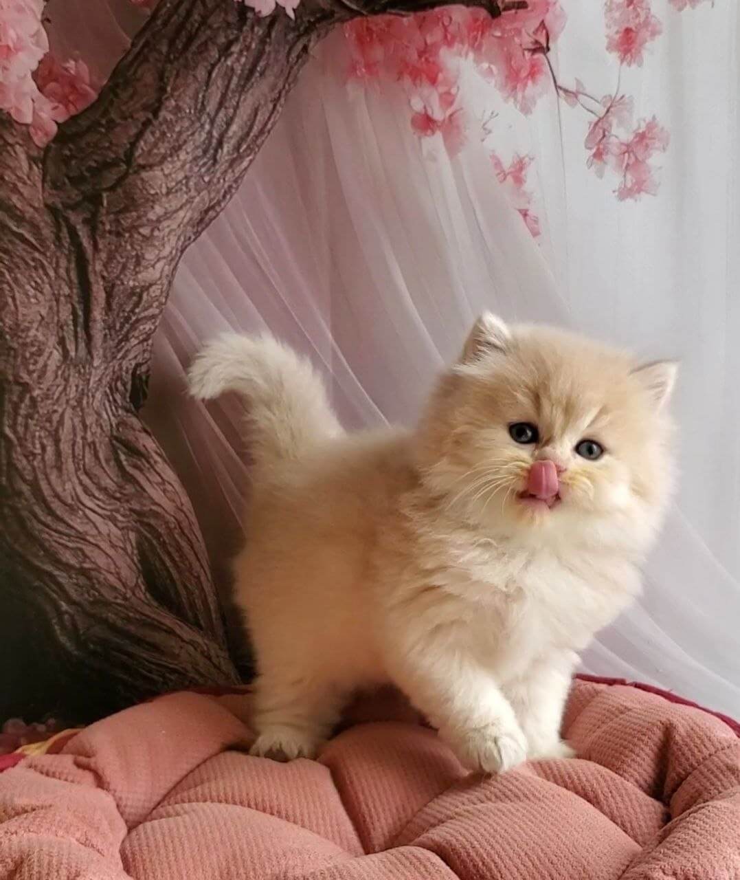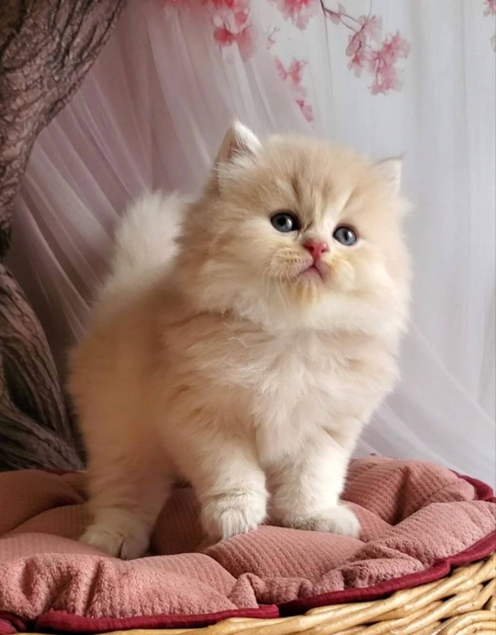 British Longhair kittens are famously dignified but not distant—Peach delights in brushing his feathery tail shyly against your ankles as you come home and curls in a velvet ball at the foot of your bed each night. He relishes quiet time on your lap, but don’t be surprised to find him batting at shadows, inventing games with delightful poise and patience. Peach bonds deeply, responding to your voice with unwavering devotion.