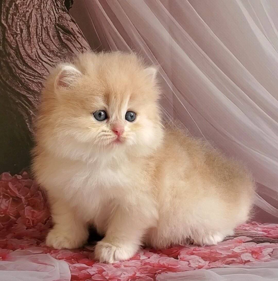 Pearl is a Blue Golden Shell British Longhair kitten whose luxurious, cloud-soft coat shimmers with rare cool gold and pale blue undertones. When she looks up at you, her bright green eyes shine with an almost emerald warmth, inviting you into quiet moments together. Her velvet paw pads and gentle purr turn every pet into a tender, calming ritual.