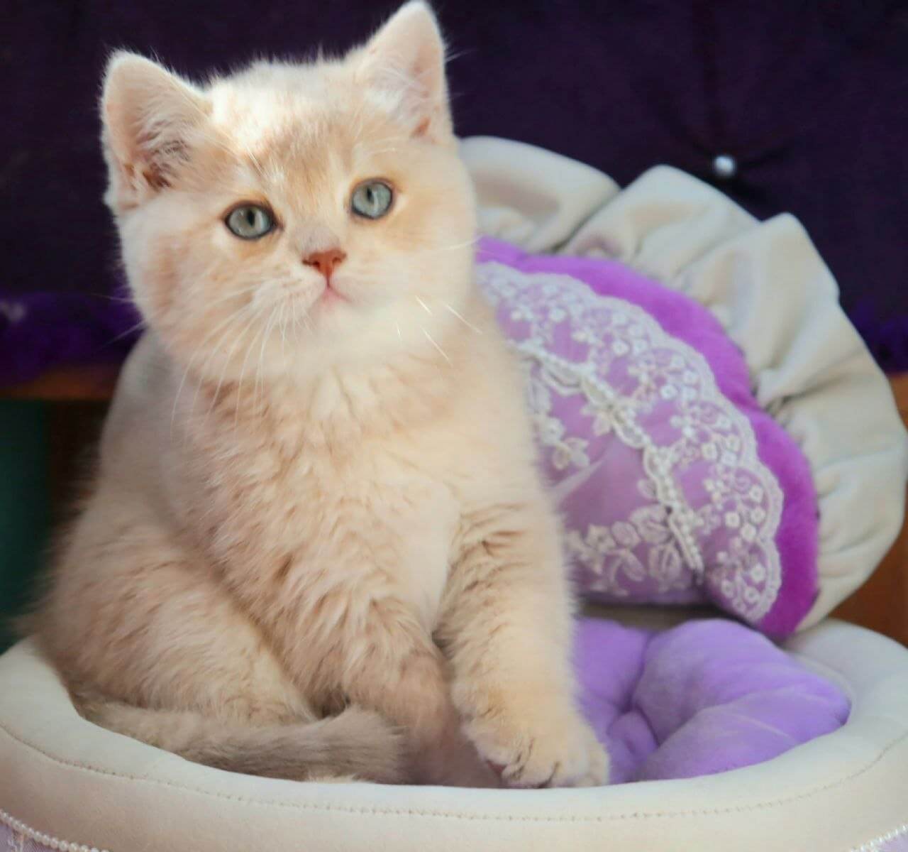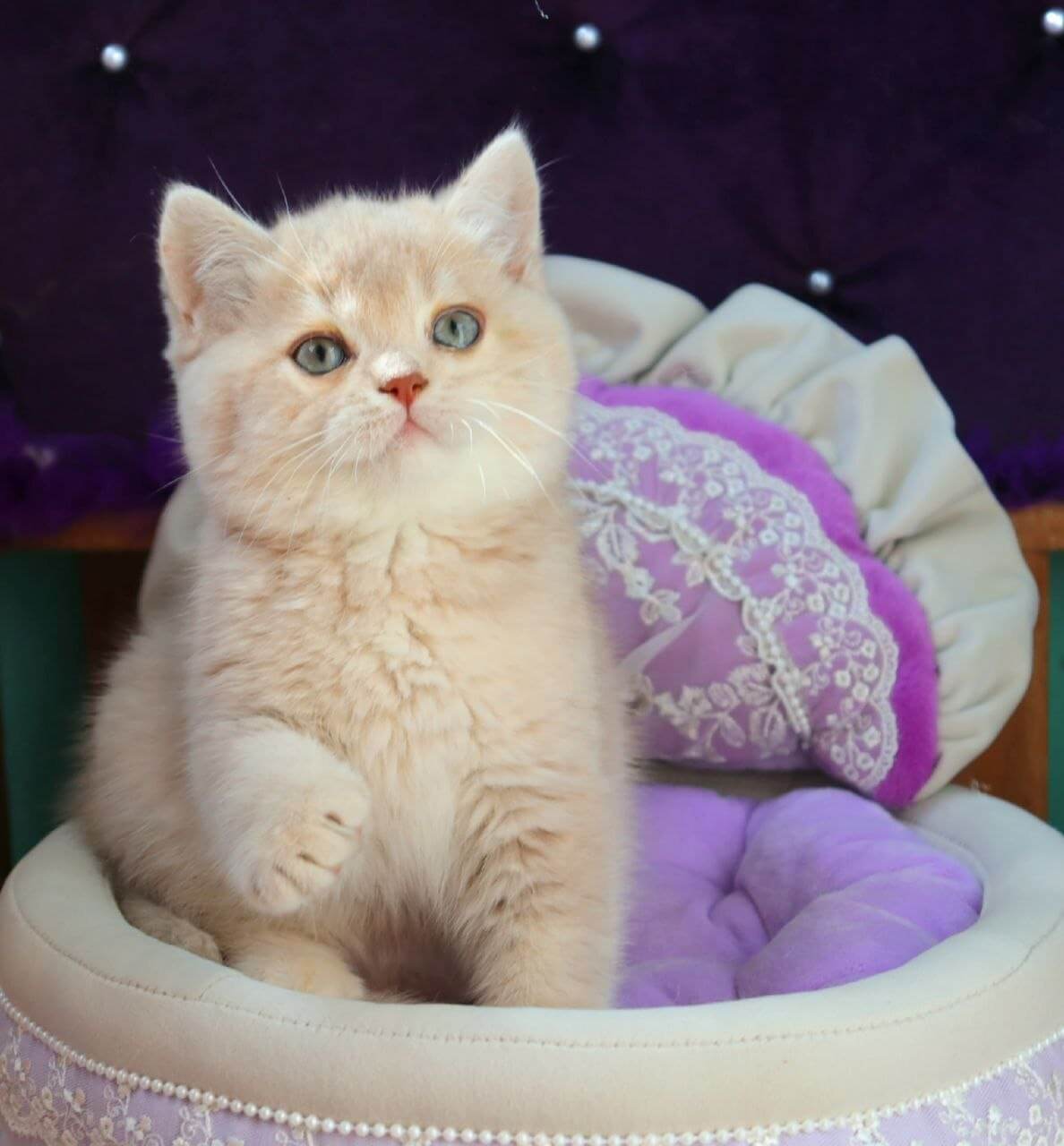 Meet Pion, a Lilac Golden Shaded British Shorthair kitten whose silky plush coat shimmers with warm golden undertones, inviting your hand for slow, gentle strokes. His hypnotic green eyes reflect flecks of gold in the sunlight, drawing you closer each time he gazes up with that steady British Shorthair calm. You’ll sense his gentle weight in your arms, purring softly as he nestles into your chest.
