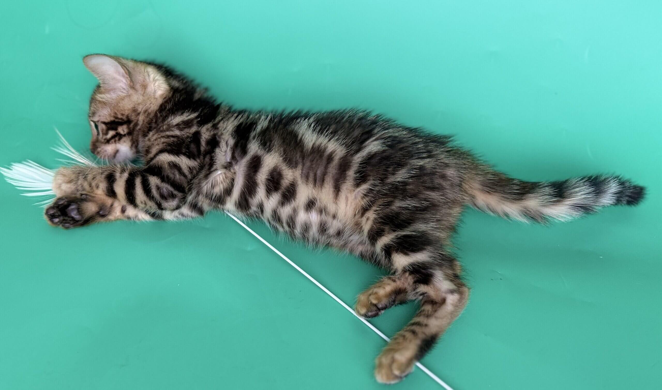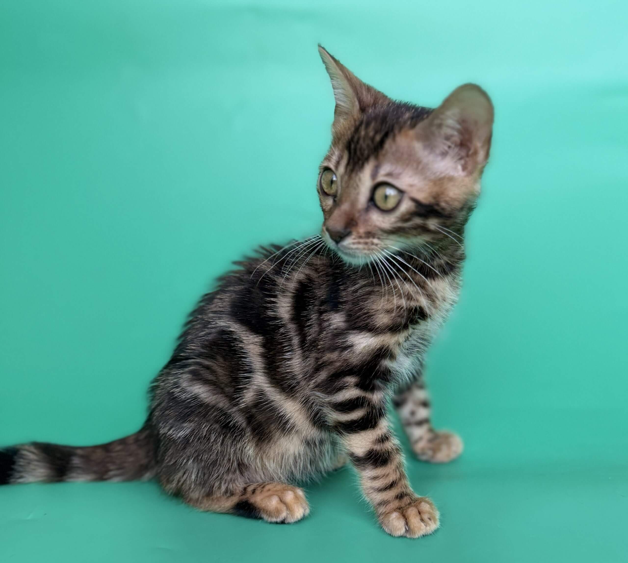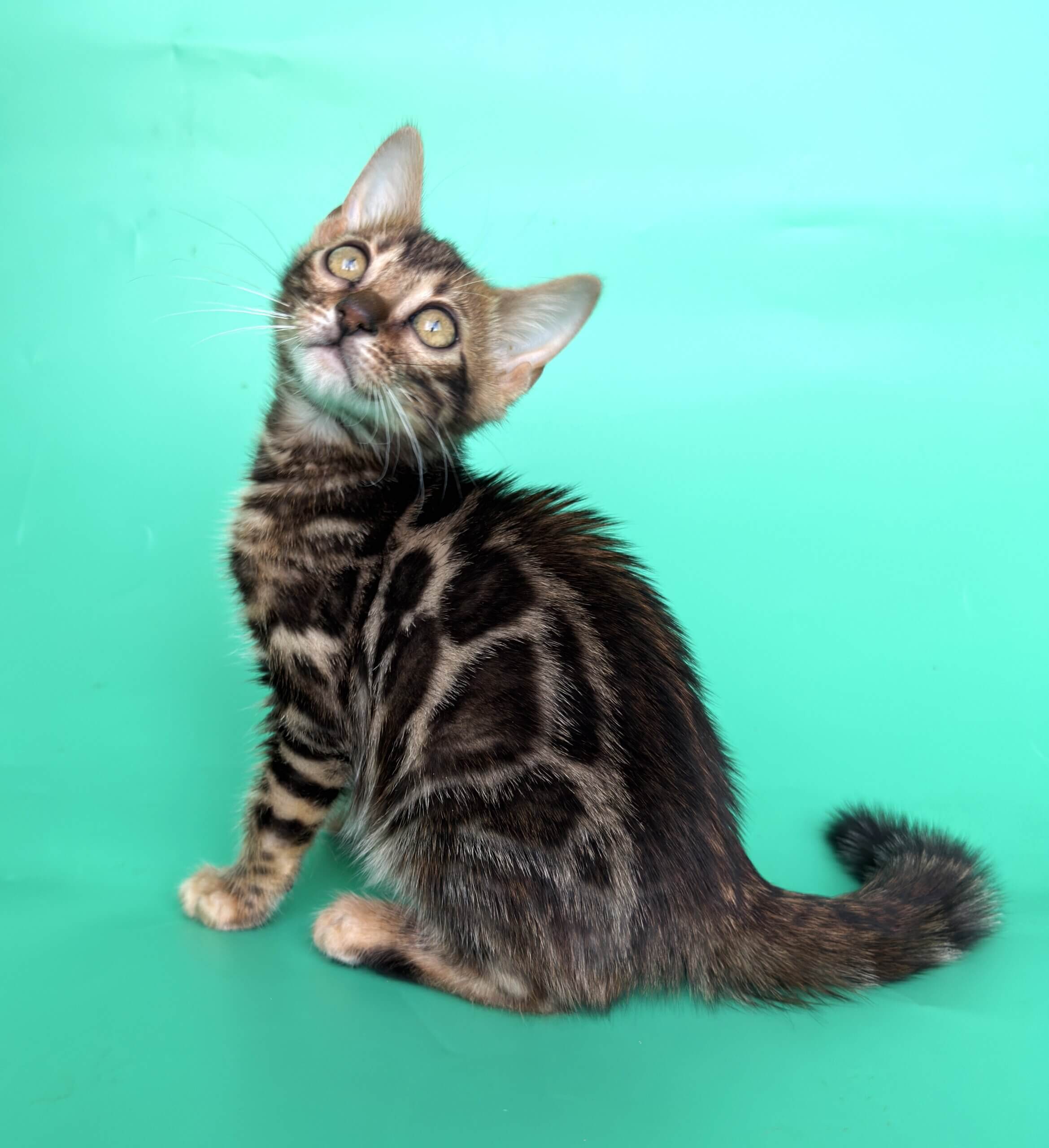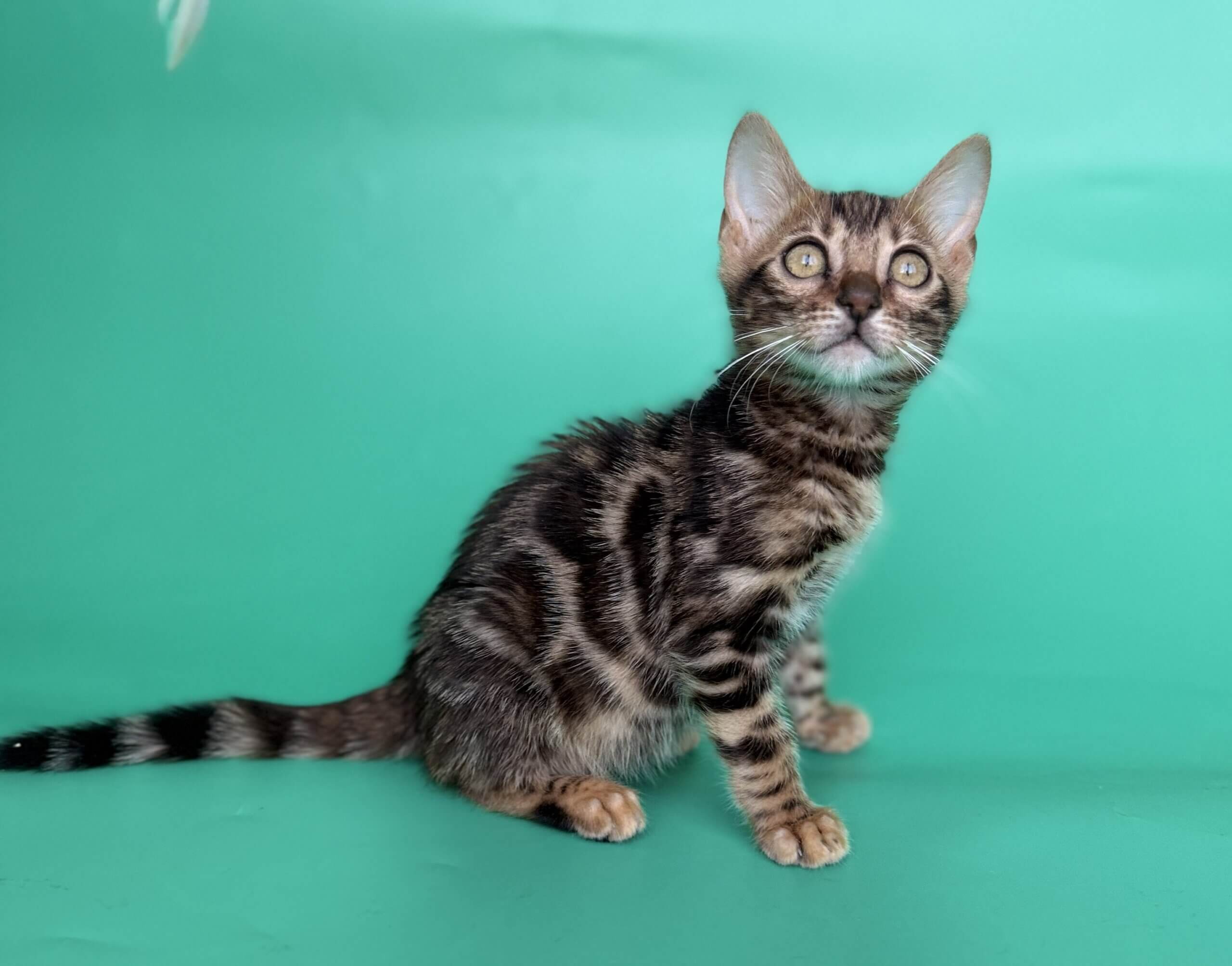 Pixel is pure affection in motion—curious, confident, and always playful, he enchants with his strikingly wild markings and sweet, expressive gaze. Whether it’s curling beside you for a quiet nap or seeking out adventure around the house, Pixel’s loving spirit will fill your home with joy.