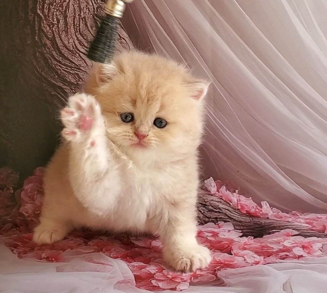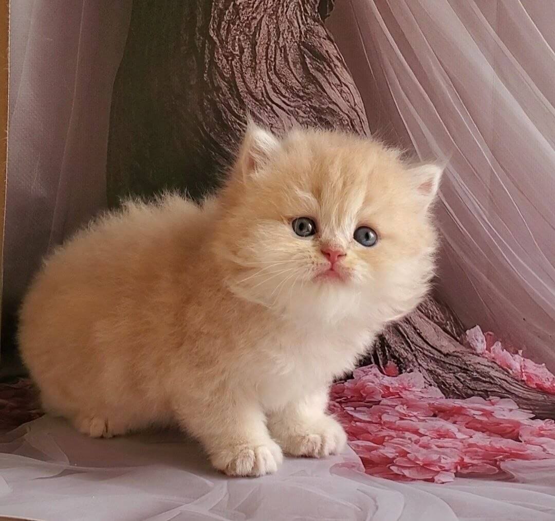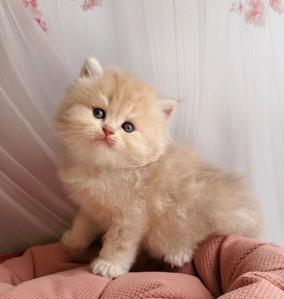 Let Plush, a Blue Golden Shell British Longhair kitten, mesmerize you with his plush, silken fur and sparkling green eyes that seem to glow with gentle mischief. The golden dusting along his soft blue coat begs to be stroked, and the delicate weight of his body melts in your arms as he begins to purr.