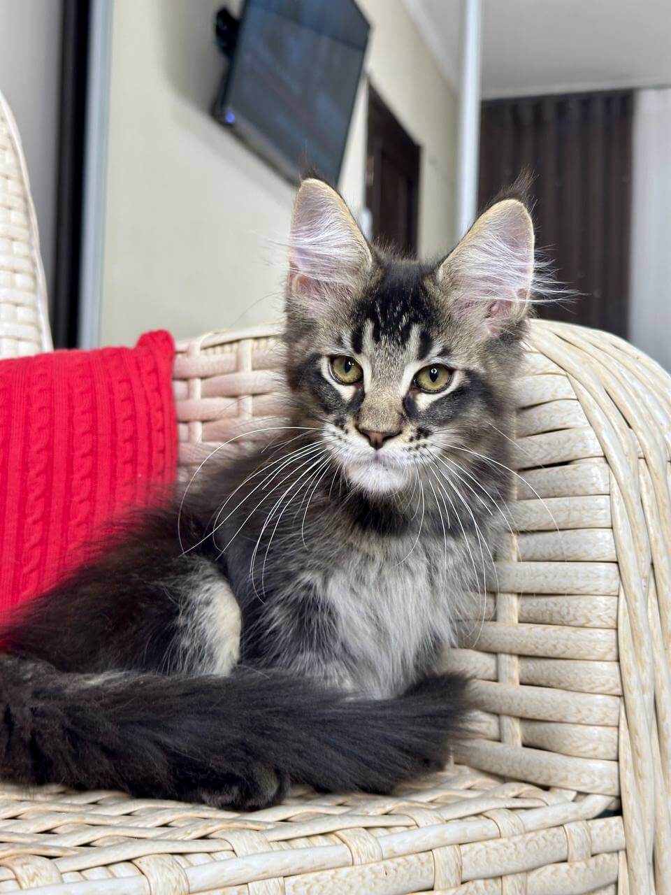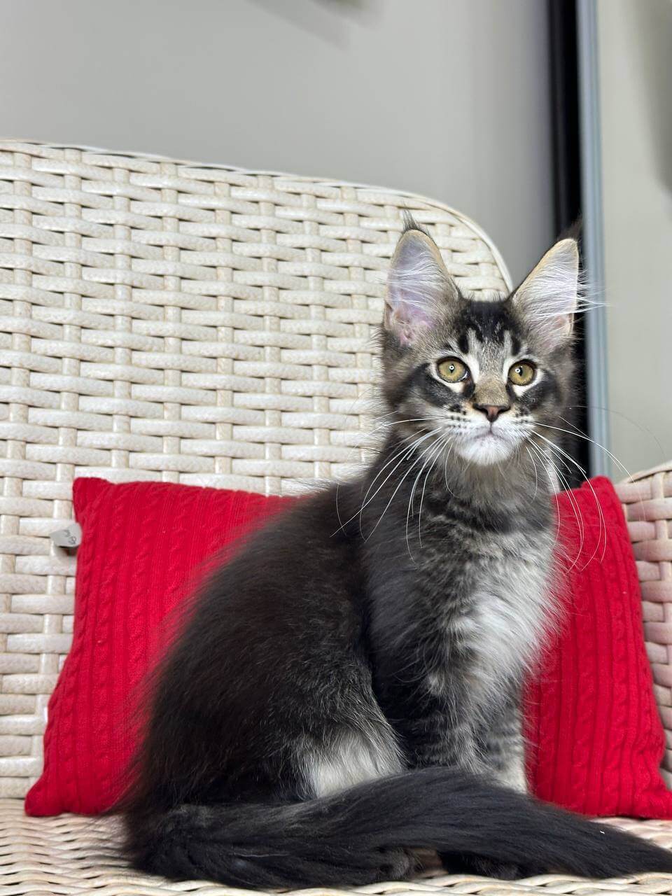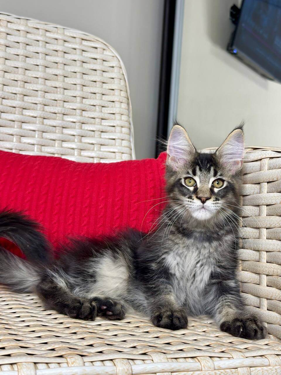 Meet Poseidon—a whiskered wonder with a heart as grand as his name, ready to flood your days with purrs and gentle head bumps. From the moment he fixes his golden-yellow gaze upon you, you’ll feel a warmth that only a Maine Coon like him can bring—a gentle, loyal companion with a soft, plush ticked tabby coat just waiting to be stroked.