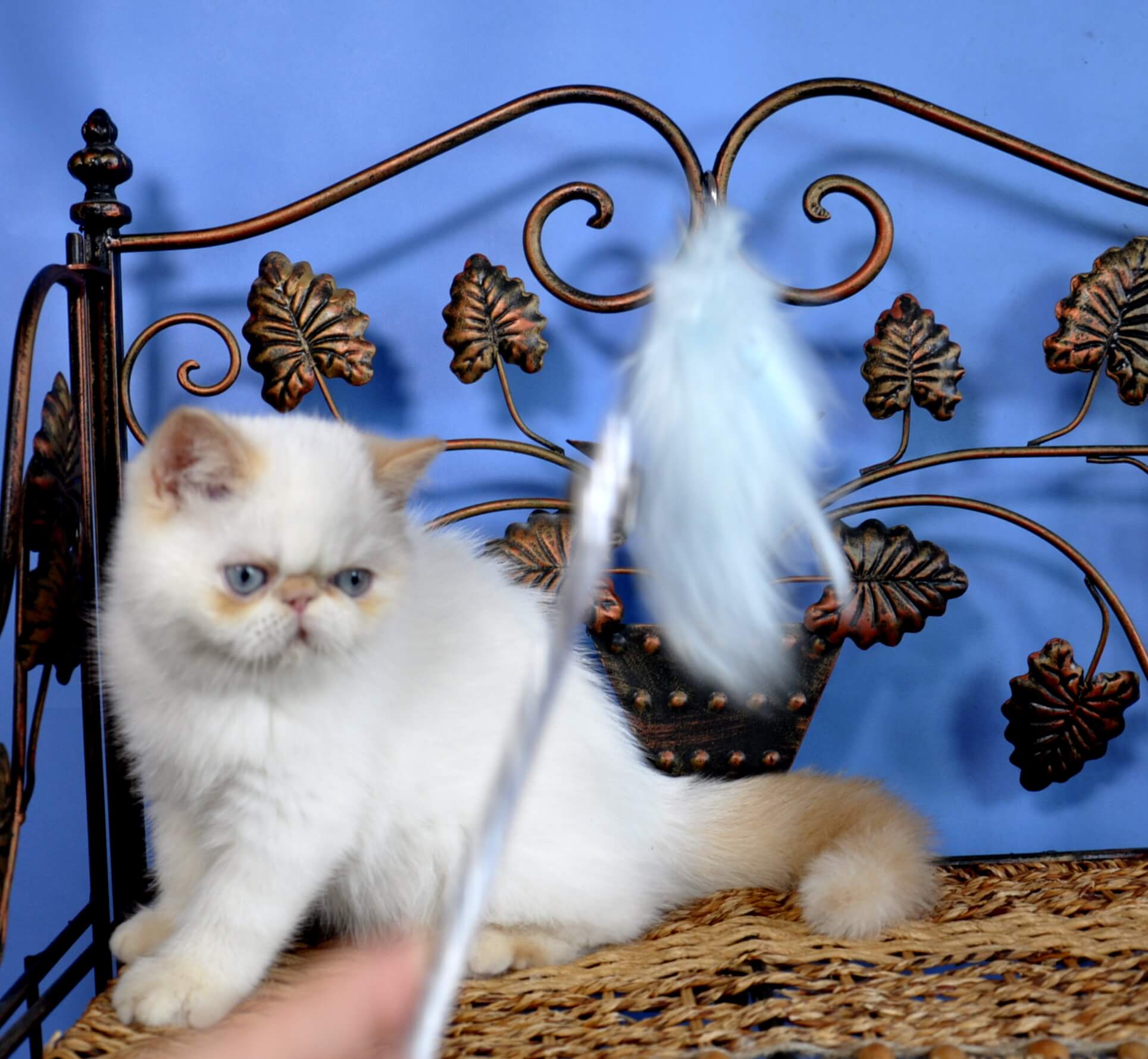 Meet Potap, a red point Exotic boy with mesmerizing blue eyes and a heart as gentle as his plush, teddy-soft fur. Born July 20th, 2025, Potap is the dream companion—warm, affectionate, and ready to fill your home with gentle purrs and endless snuggles.