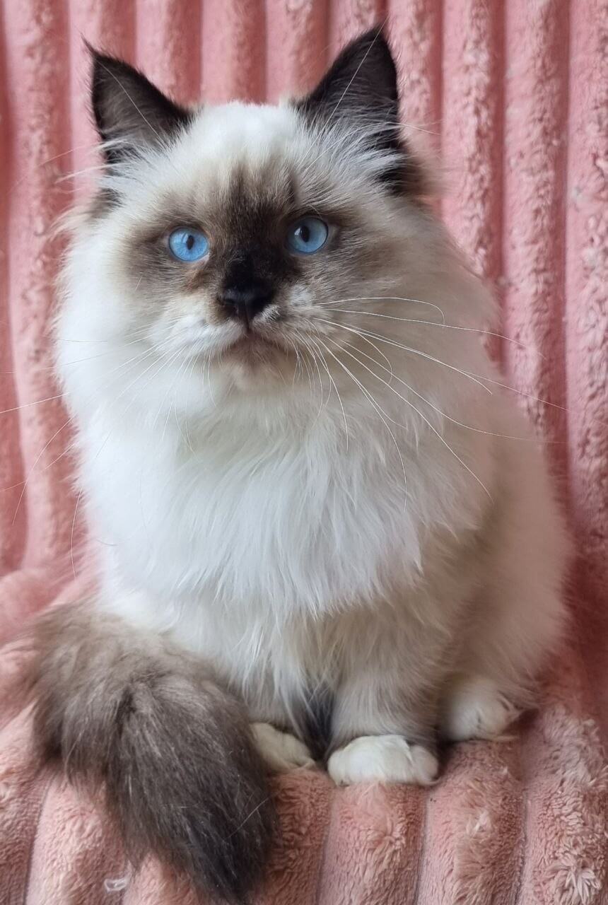 Meet Potap, a heart-stealer with a gentle spirit and irresistible blue eyes, ready to fill your days with love and soft purrs. This Siberian boy, in his beautiful seal point coat with snowy white accents, is made for snuggles—his plush fur begs for a gentle touch, and his warm, comforting presence will melt away your worries.